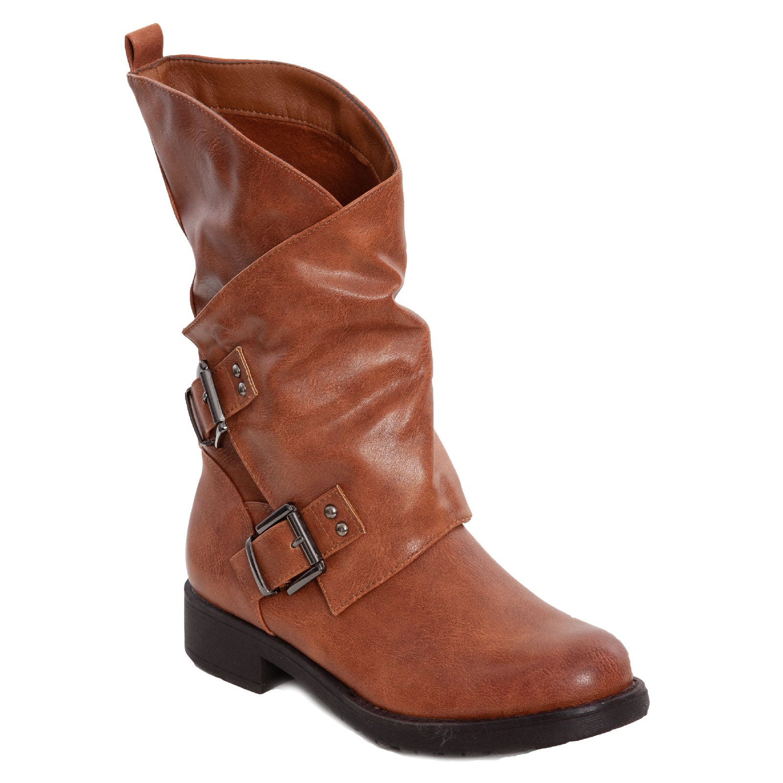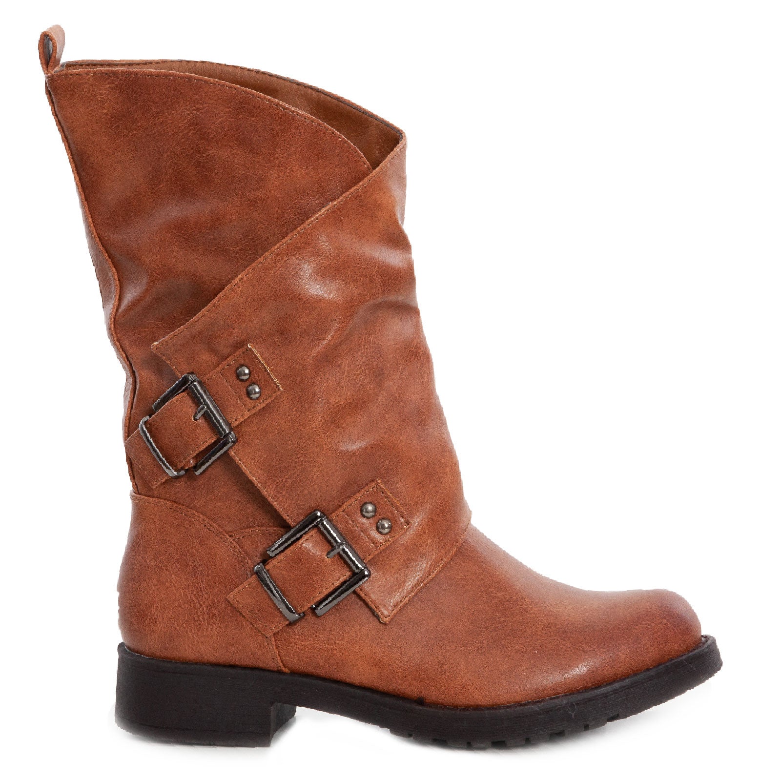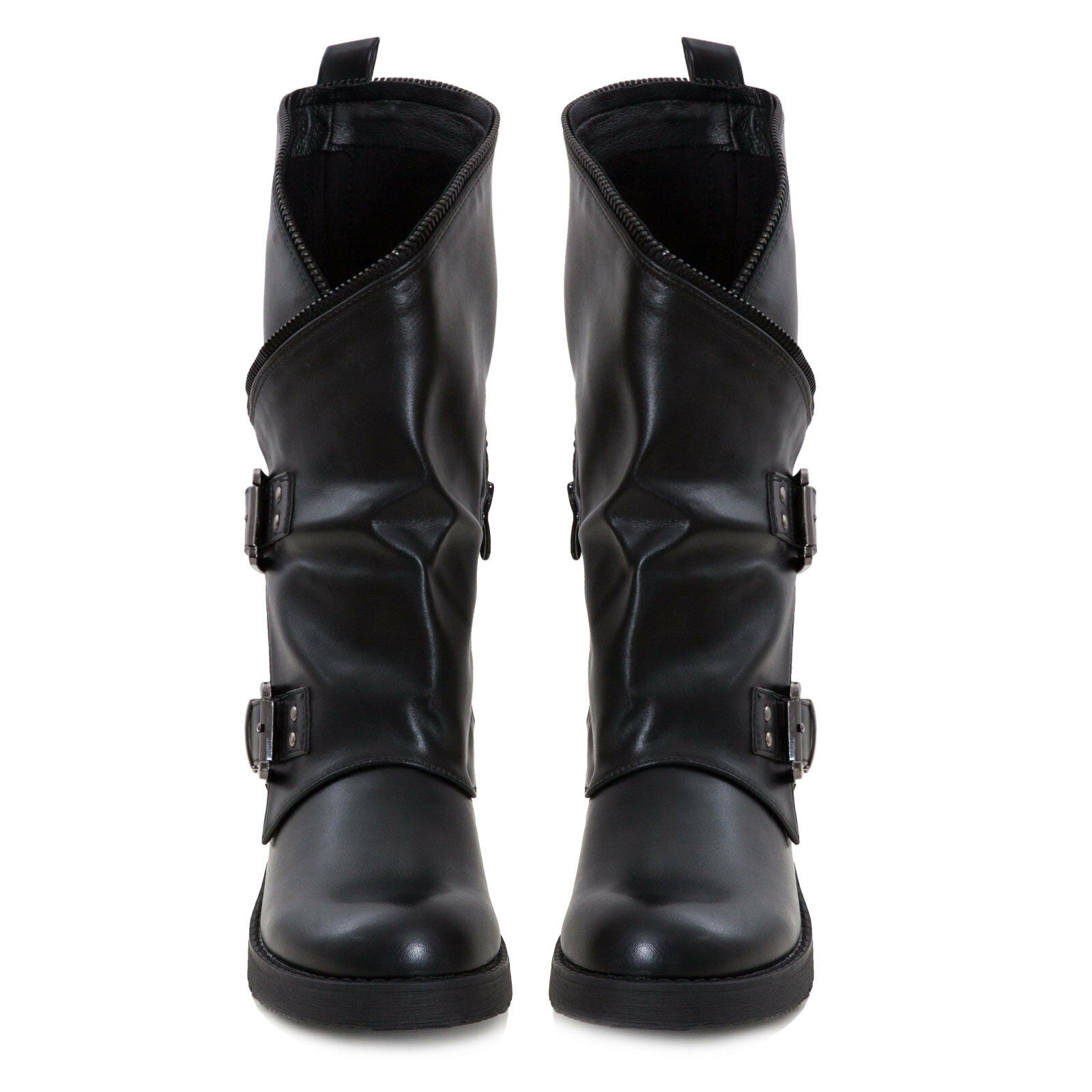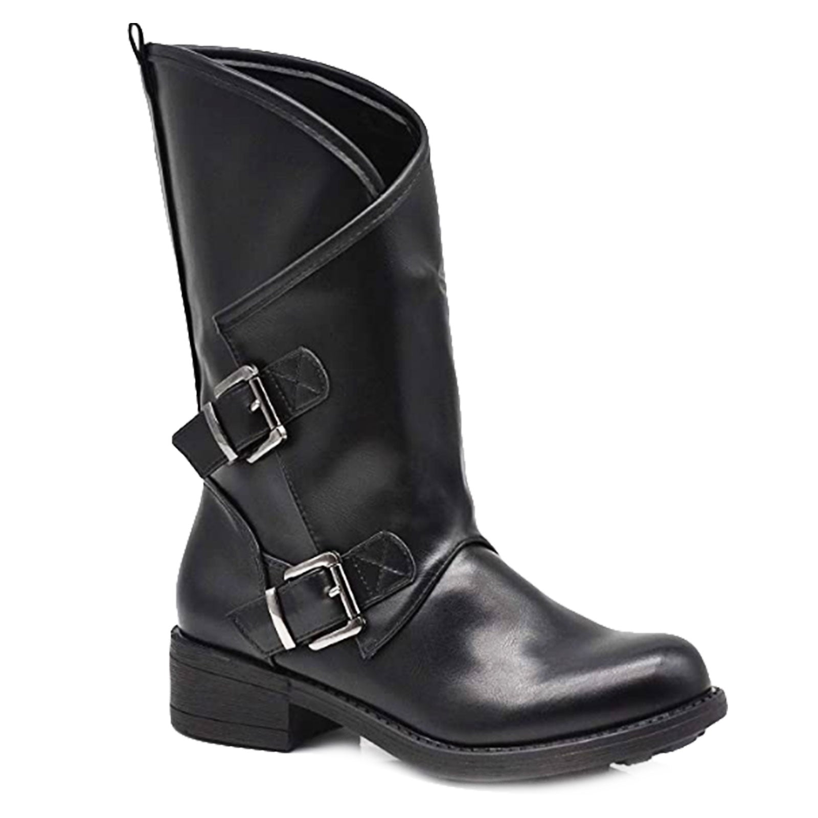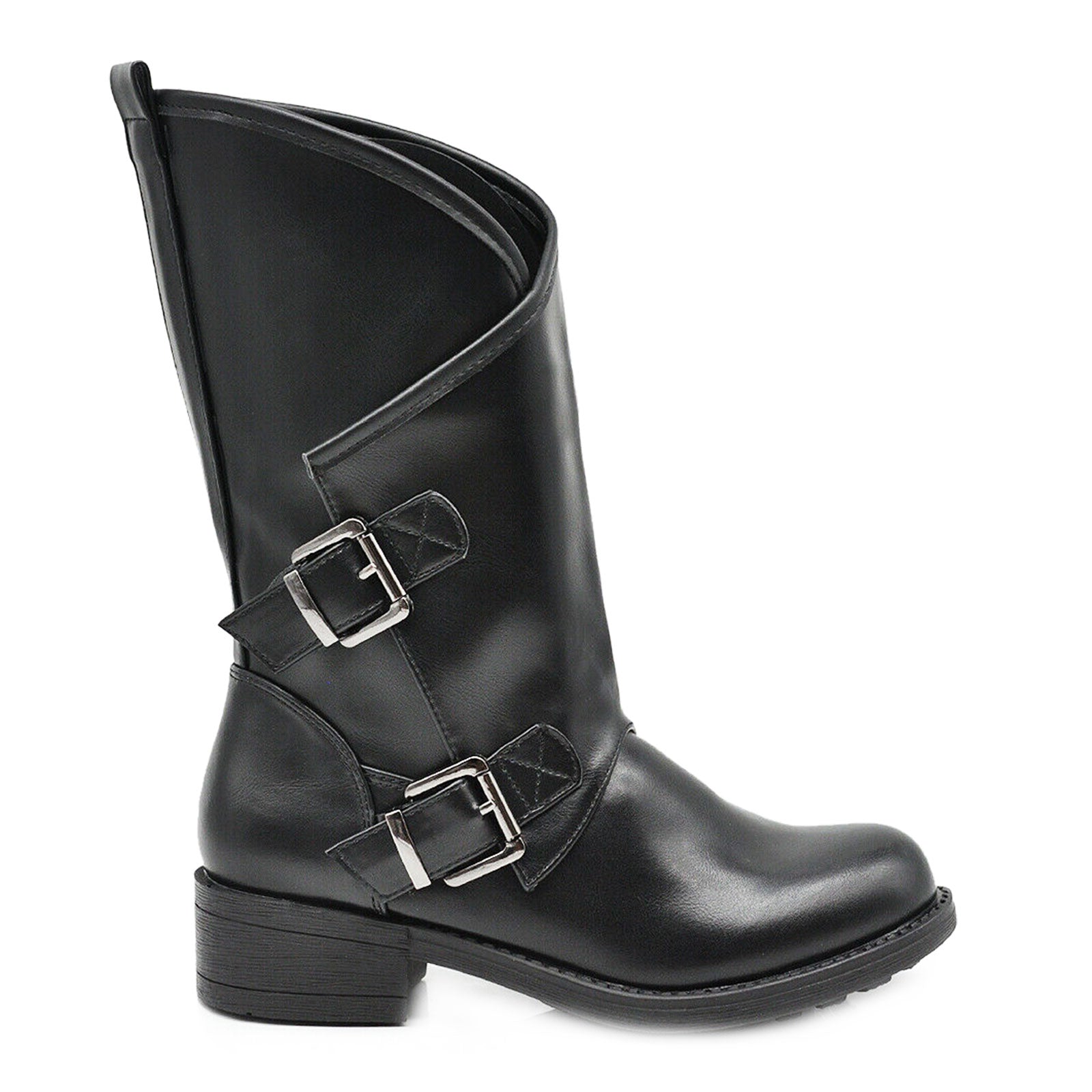 Stivali donna bassi biker con fibbie