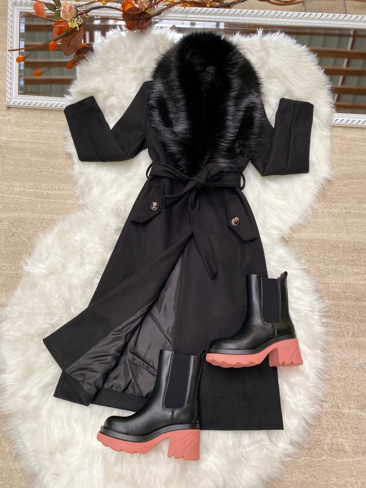 Cappotto lungo peloso foderato