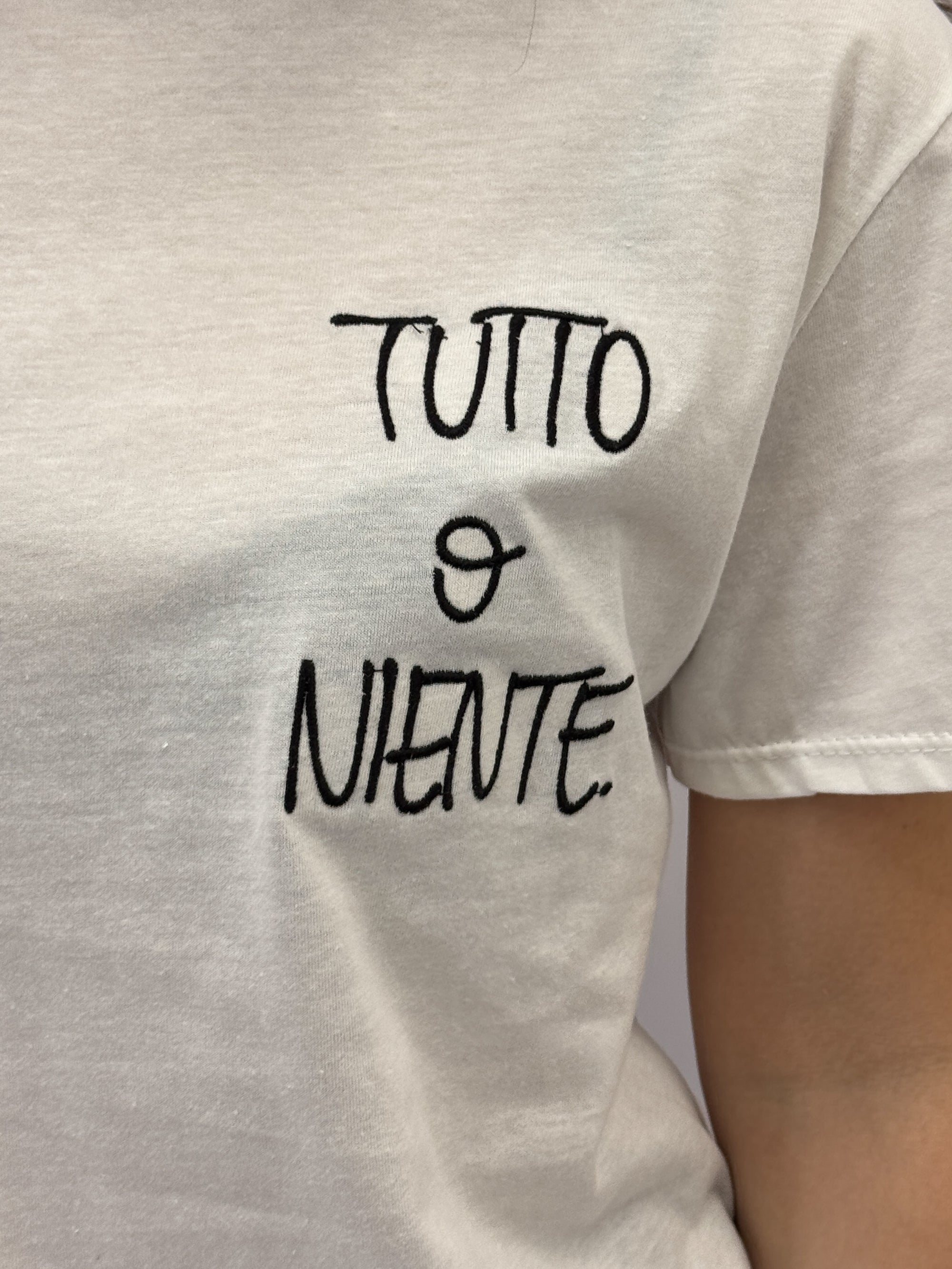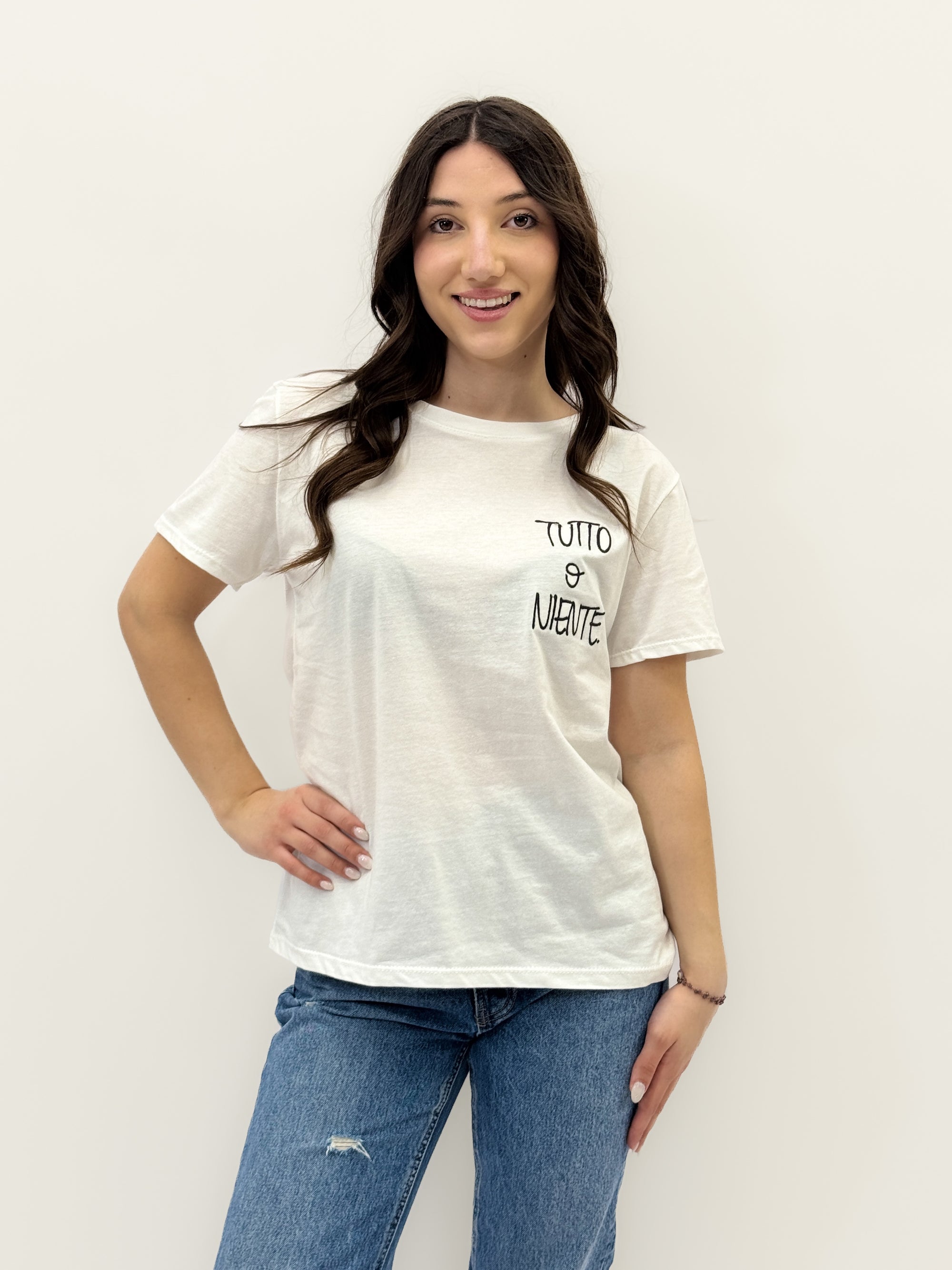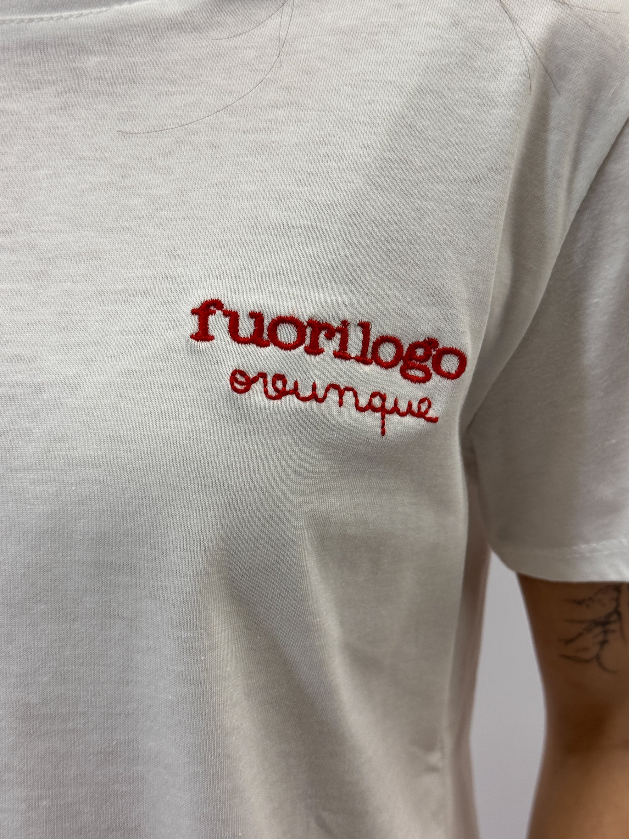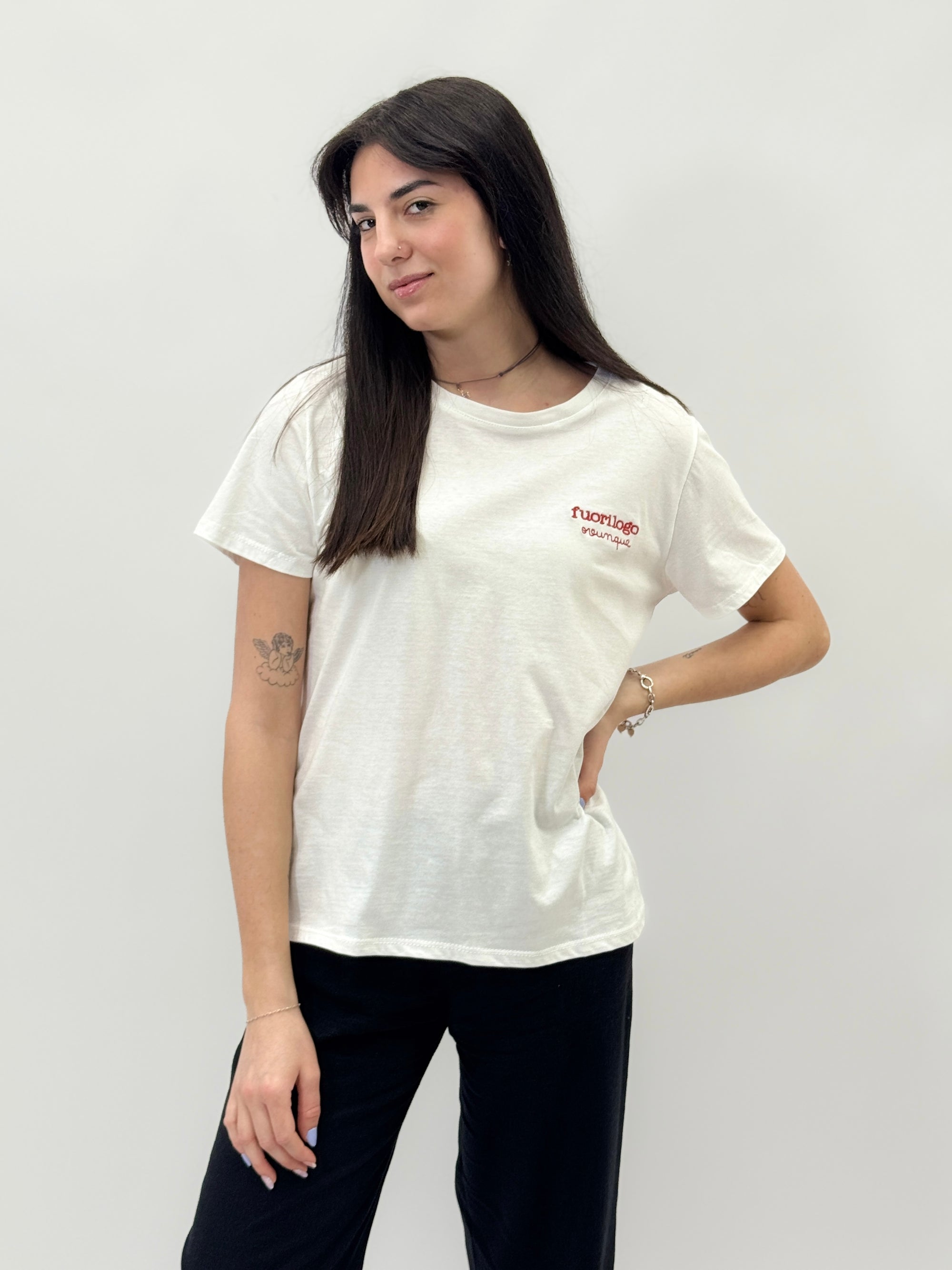 T-shirt in cotone con scritta "fuoriluogo ovunque"