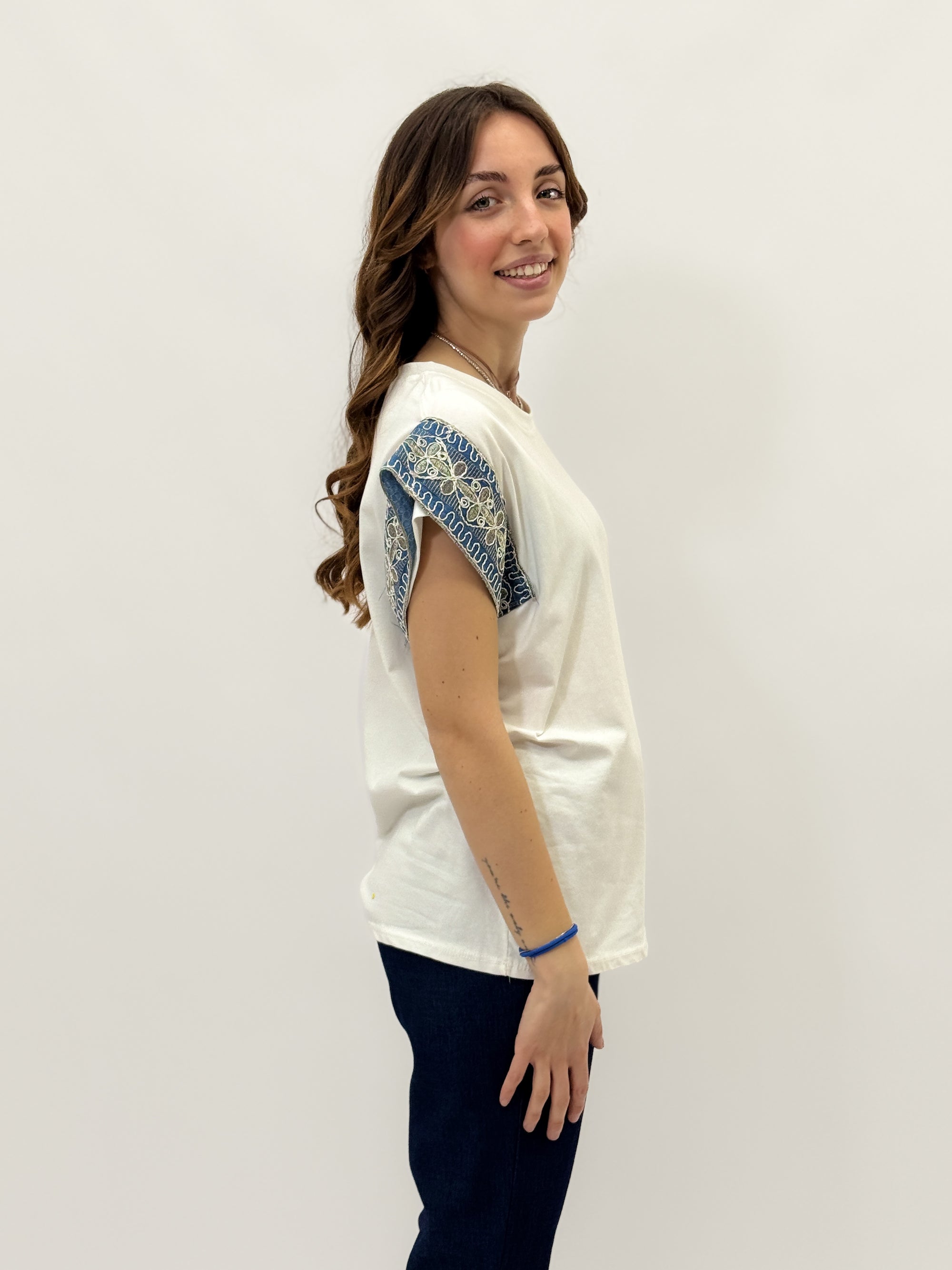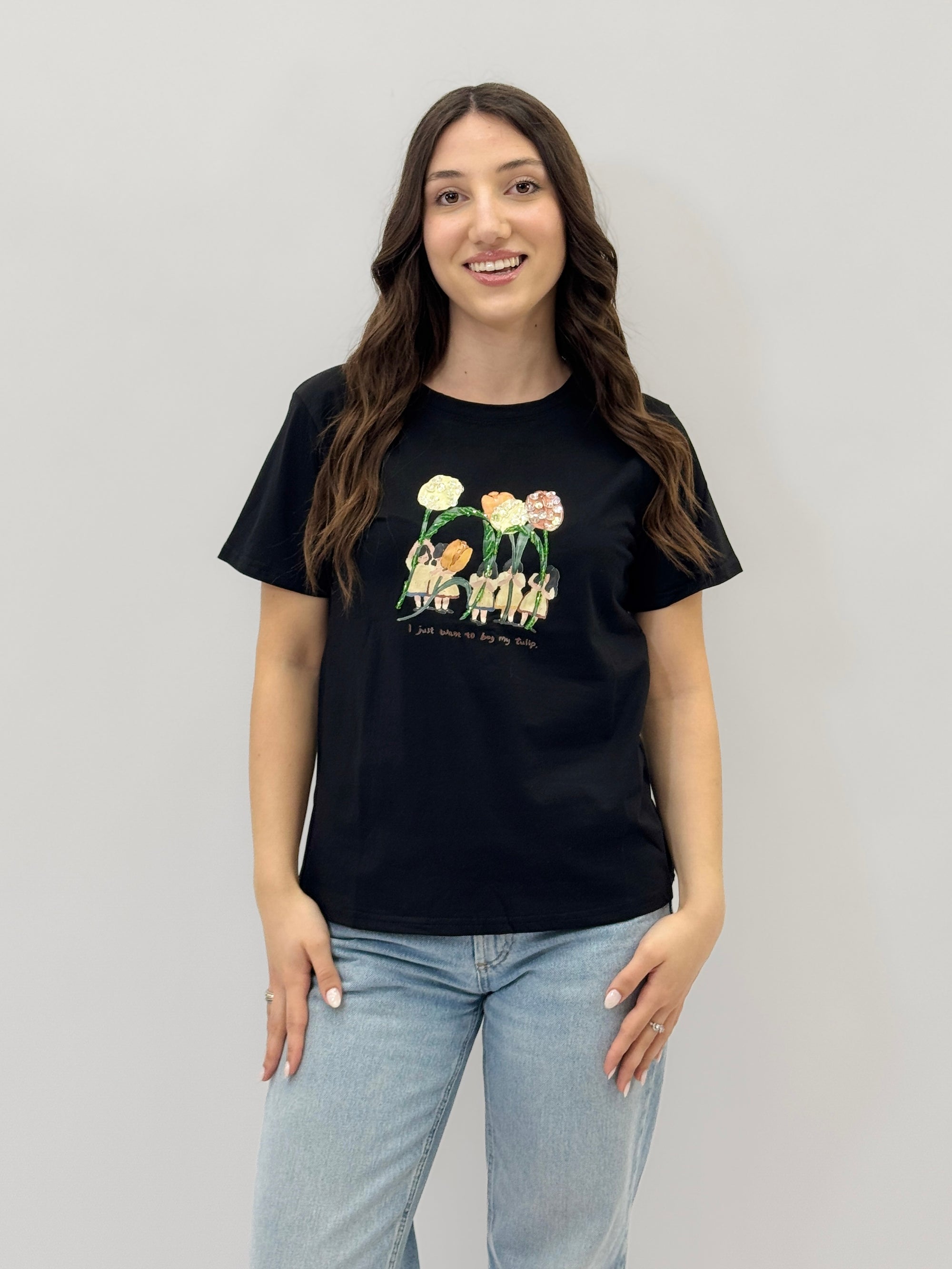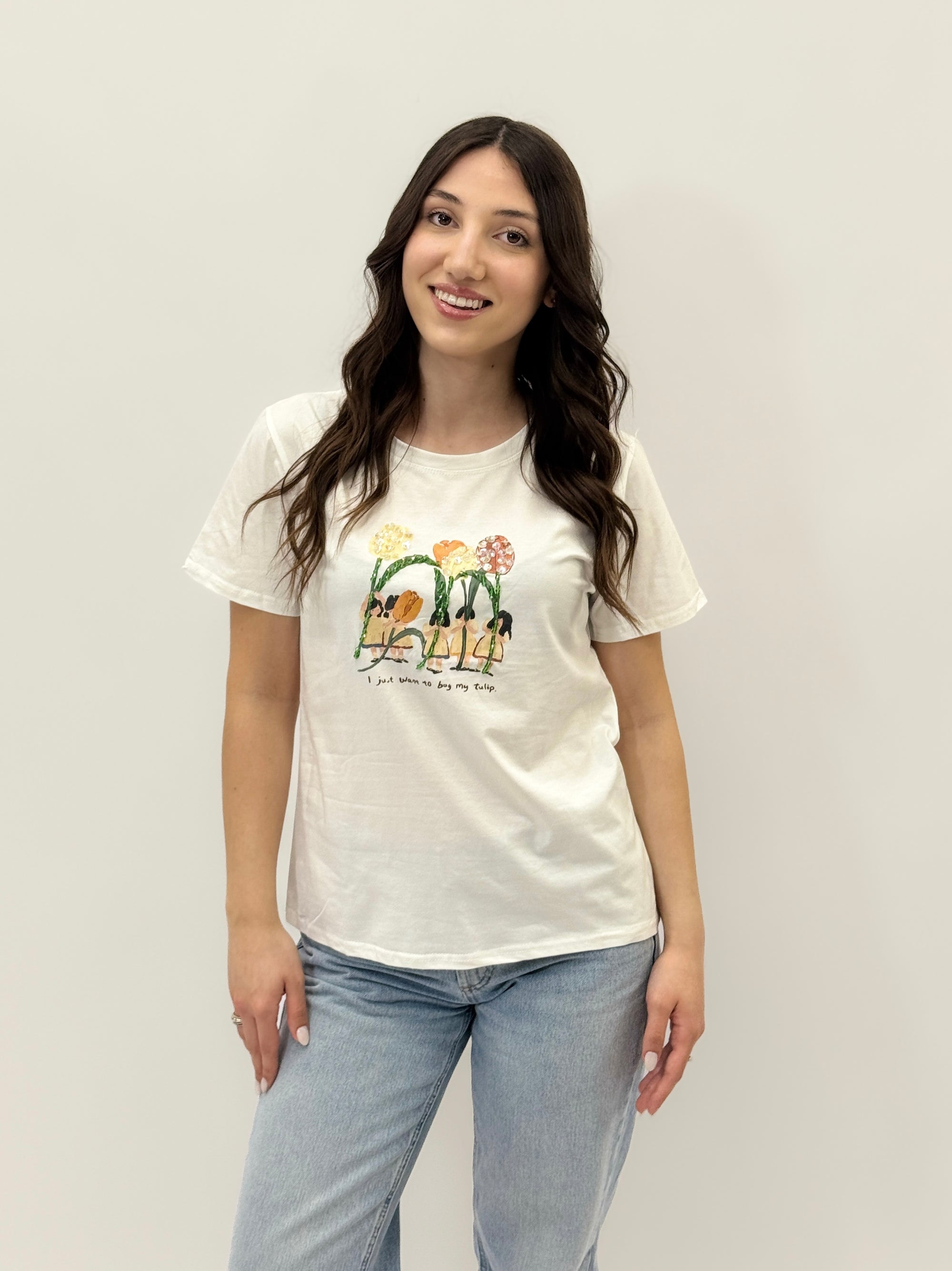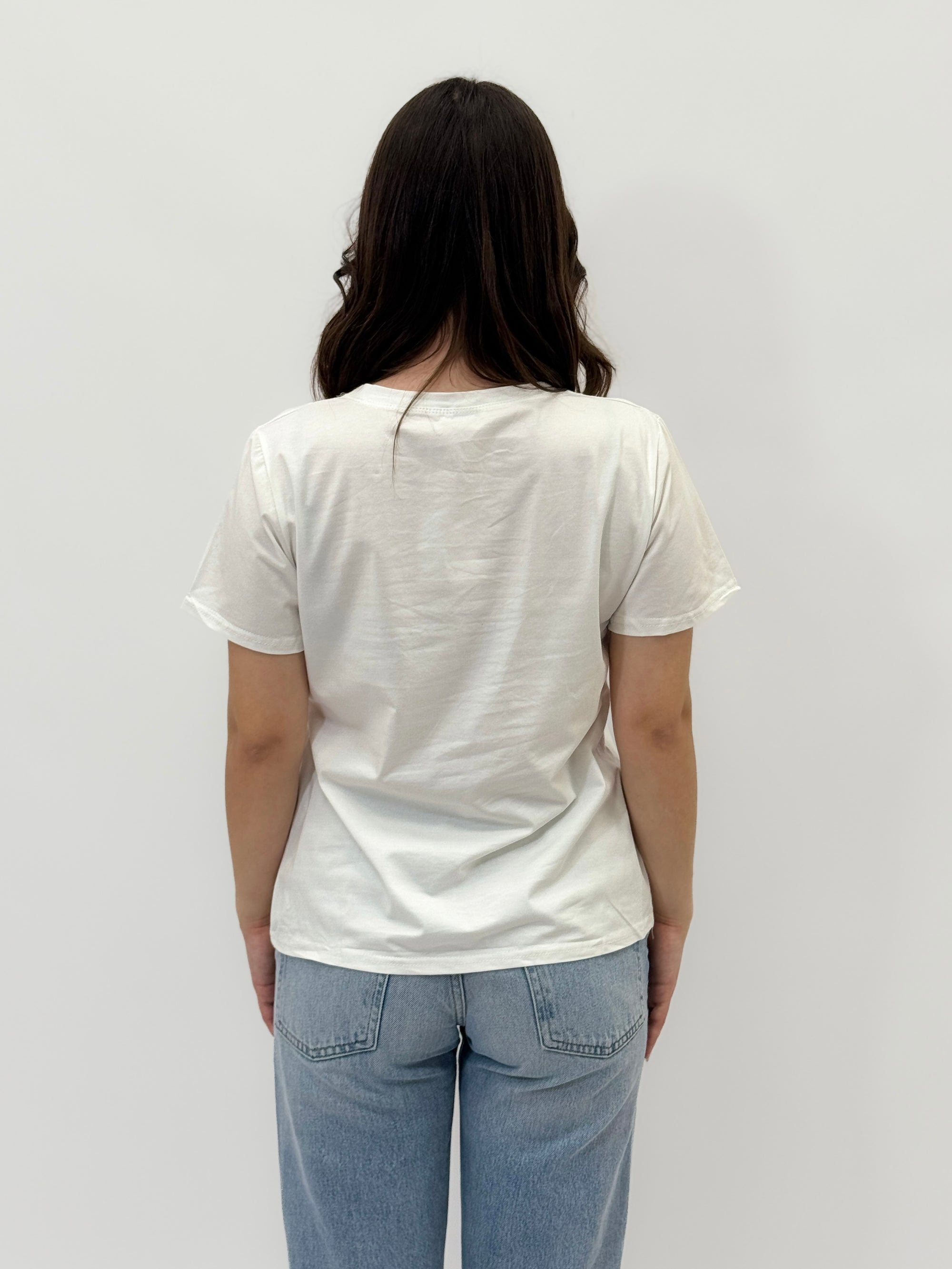 T-shirt in cotone con scritta "fuoriluogo ovunque"