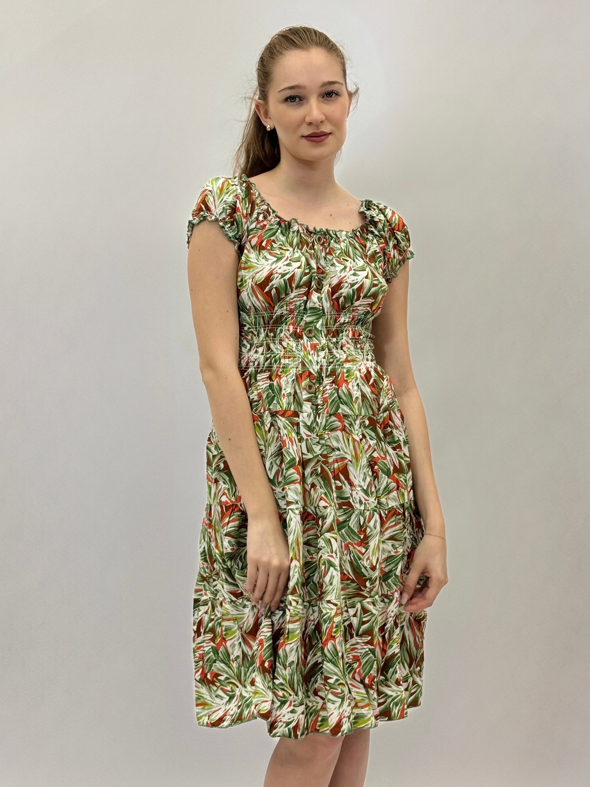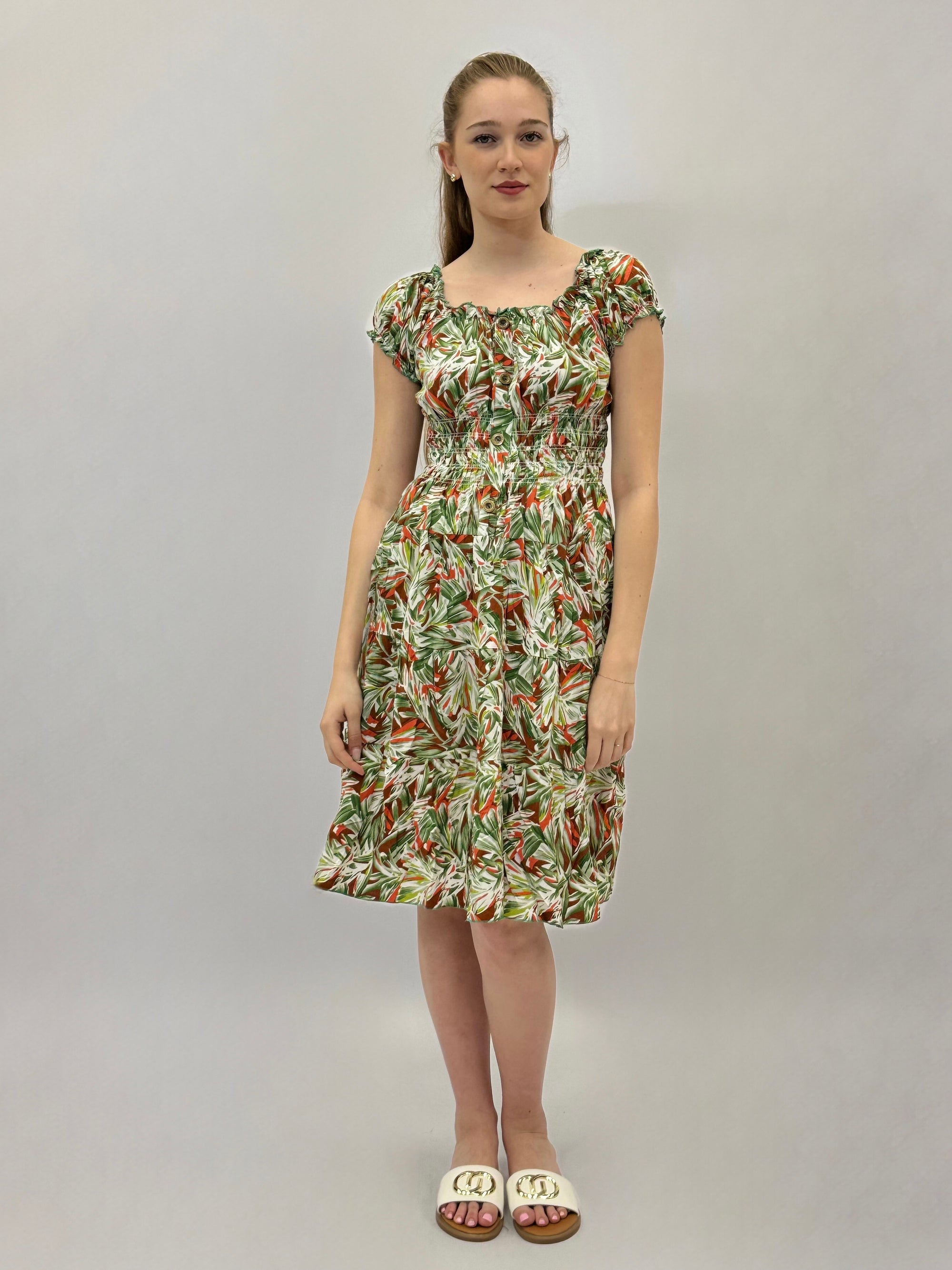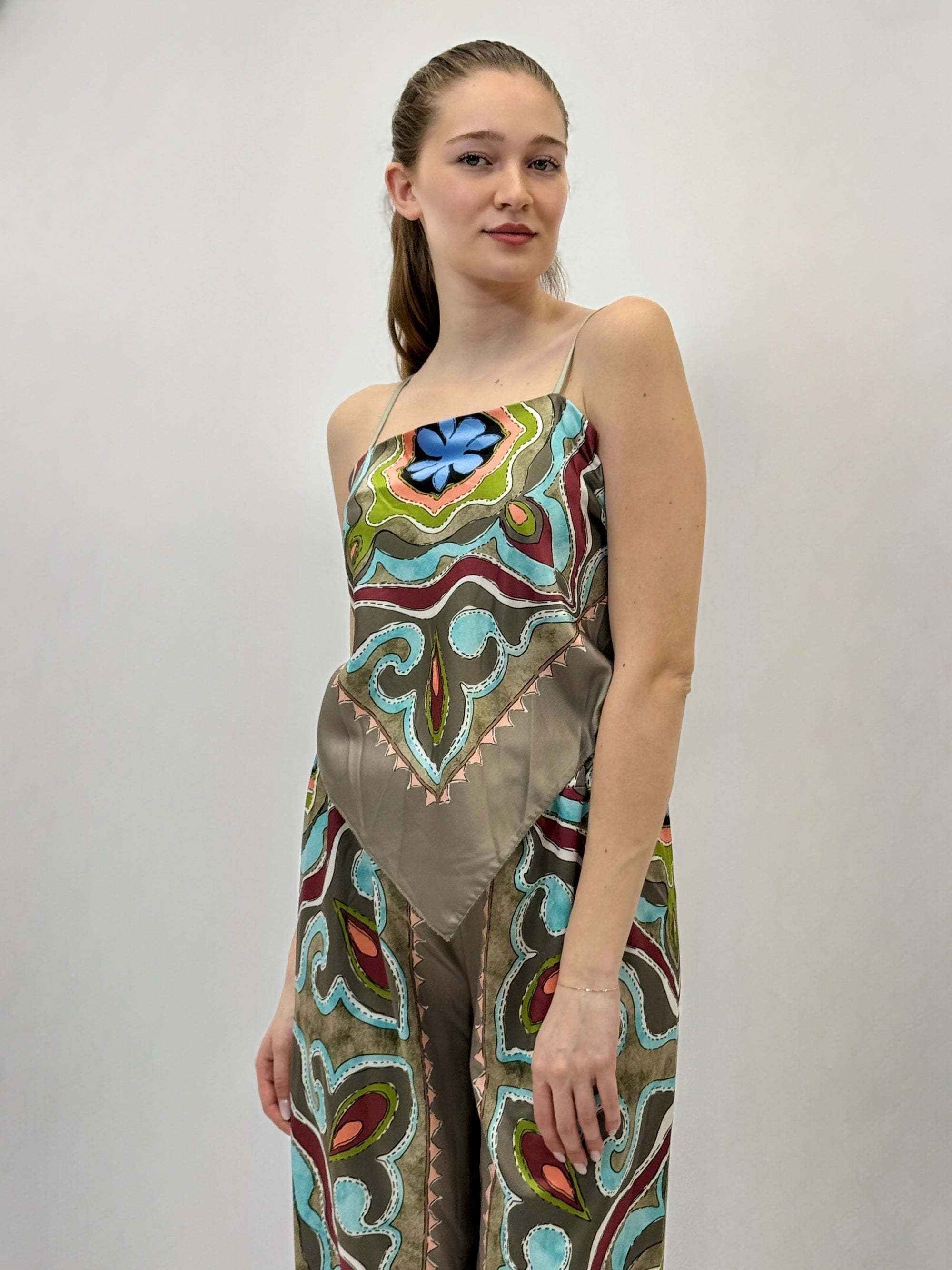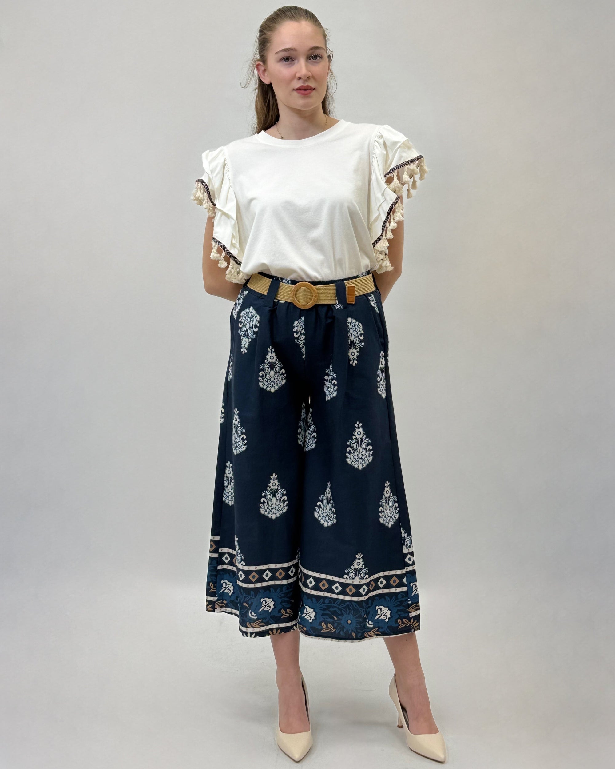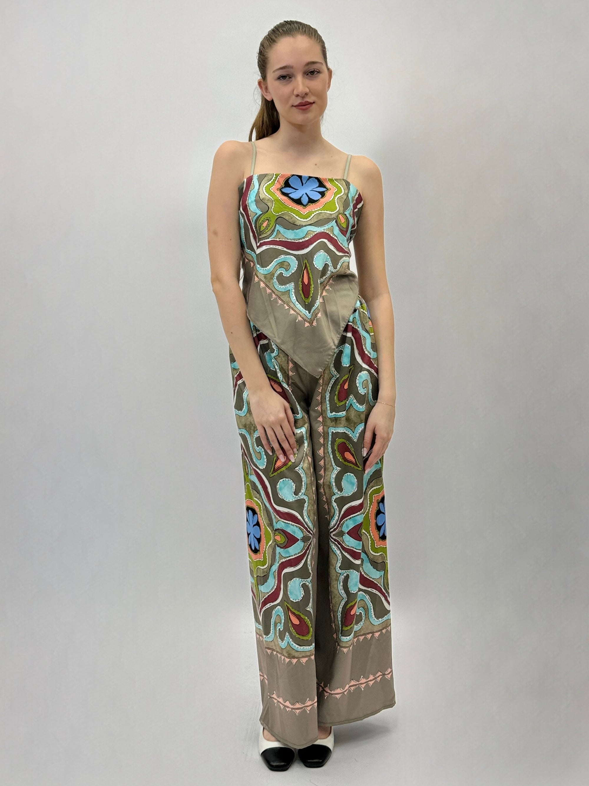 Abito lungo in pizzo sangallo con maniche a tre quarti e cintura