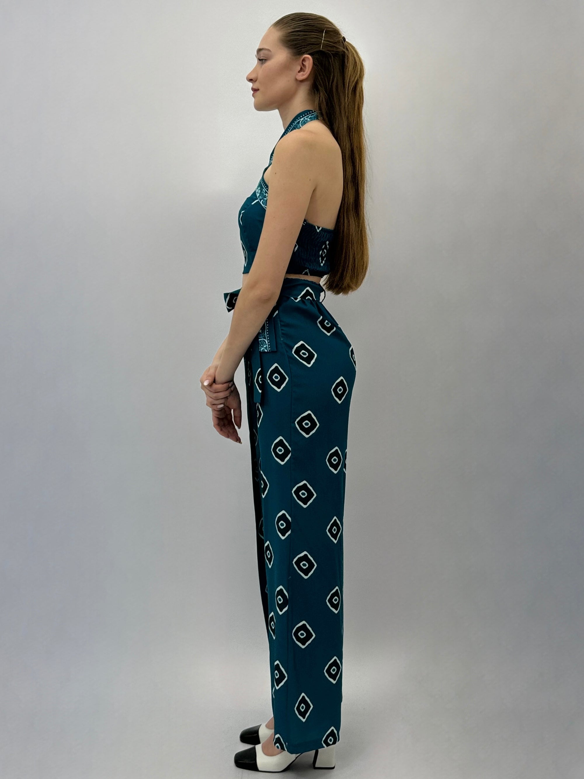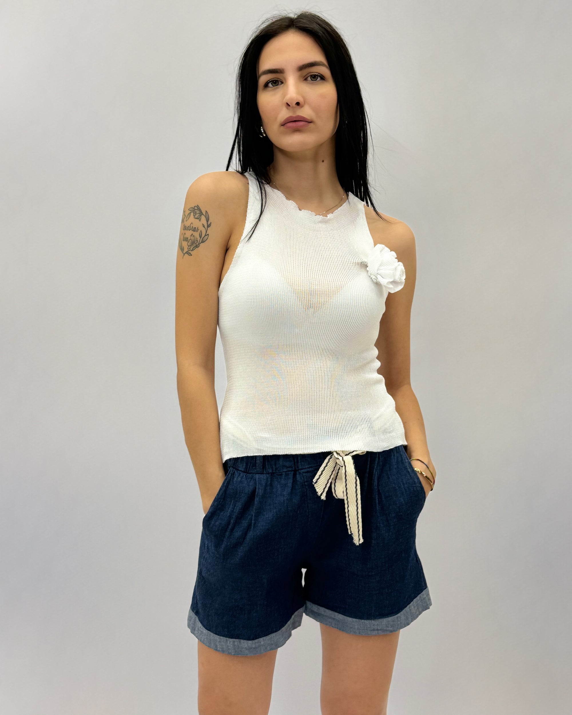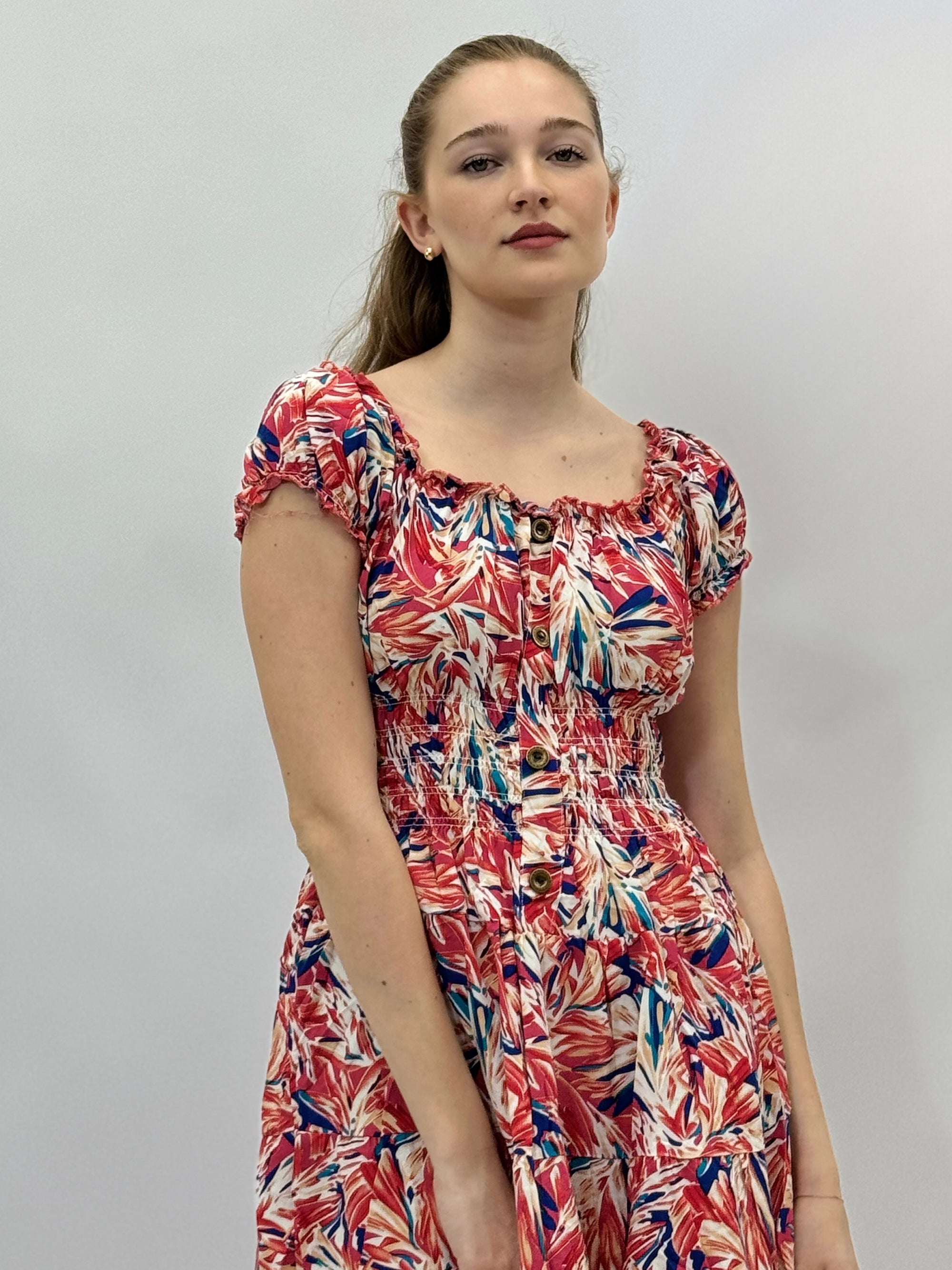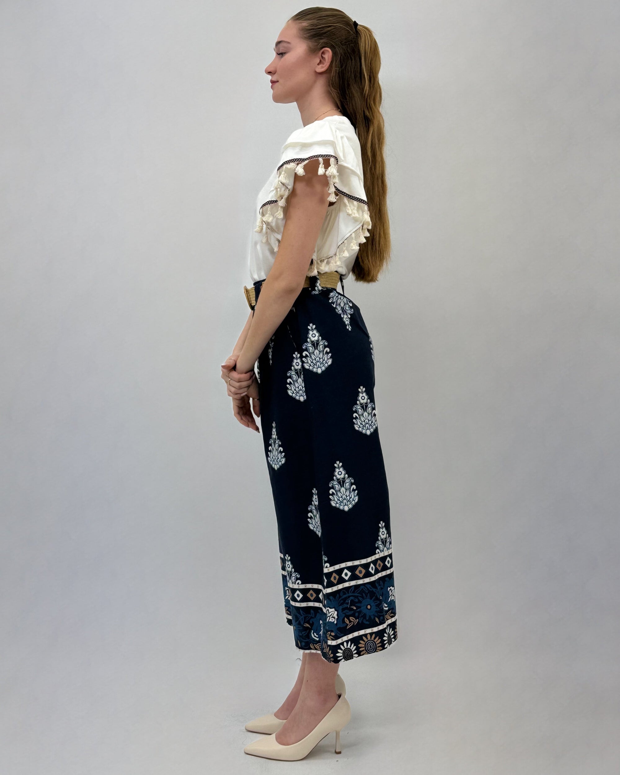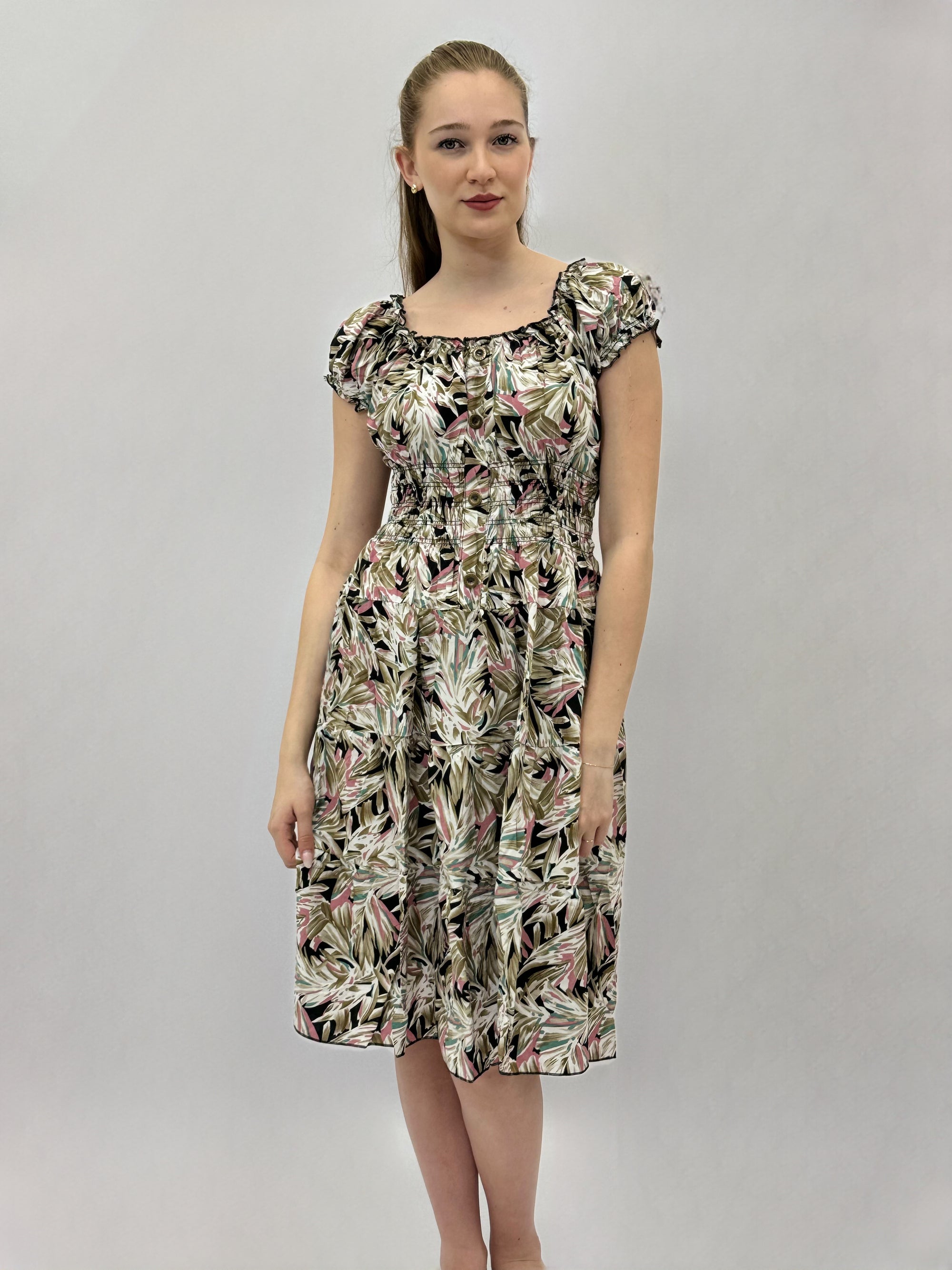 Abito lungo in pizzo sangallo con maniche a tre quarti e cintura