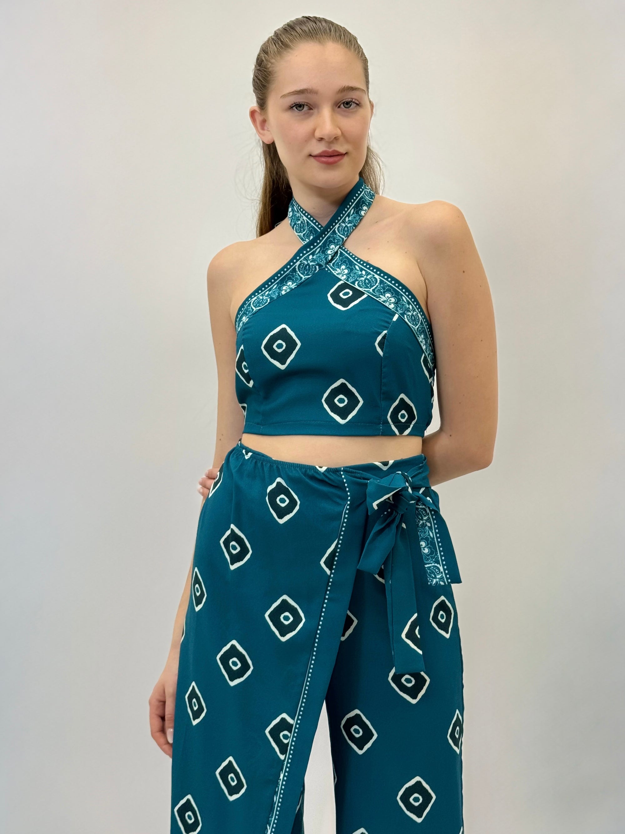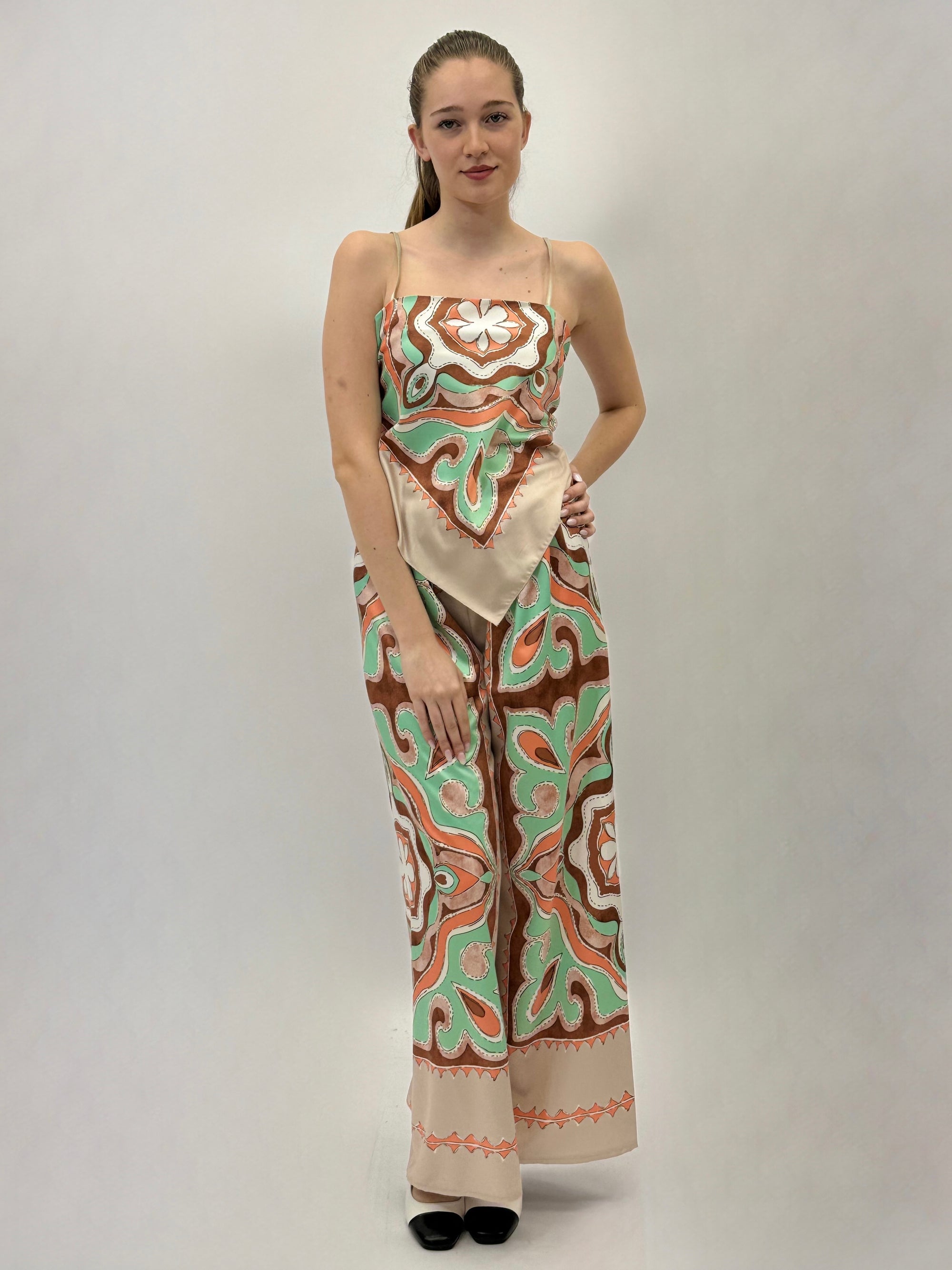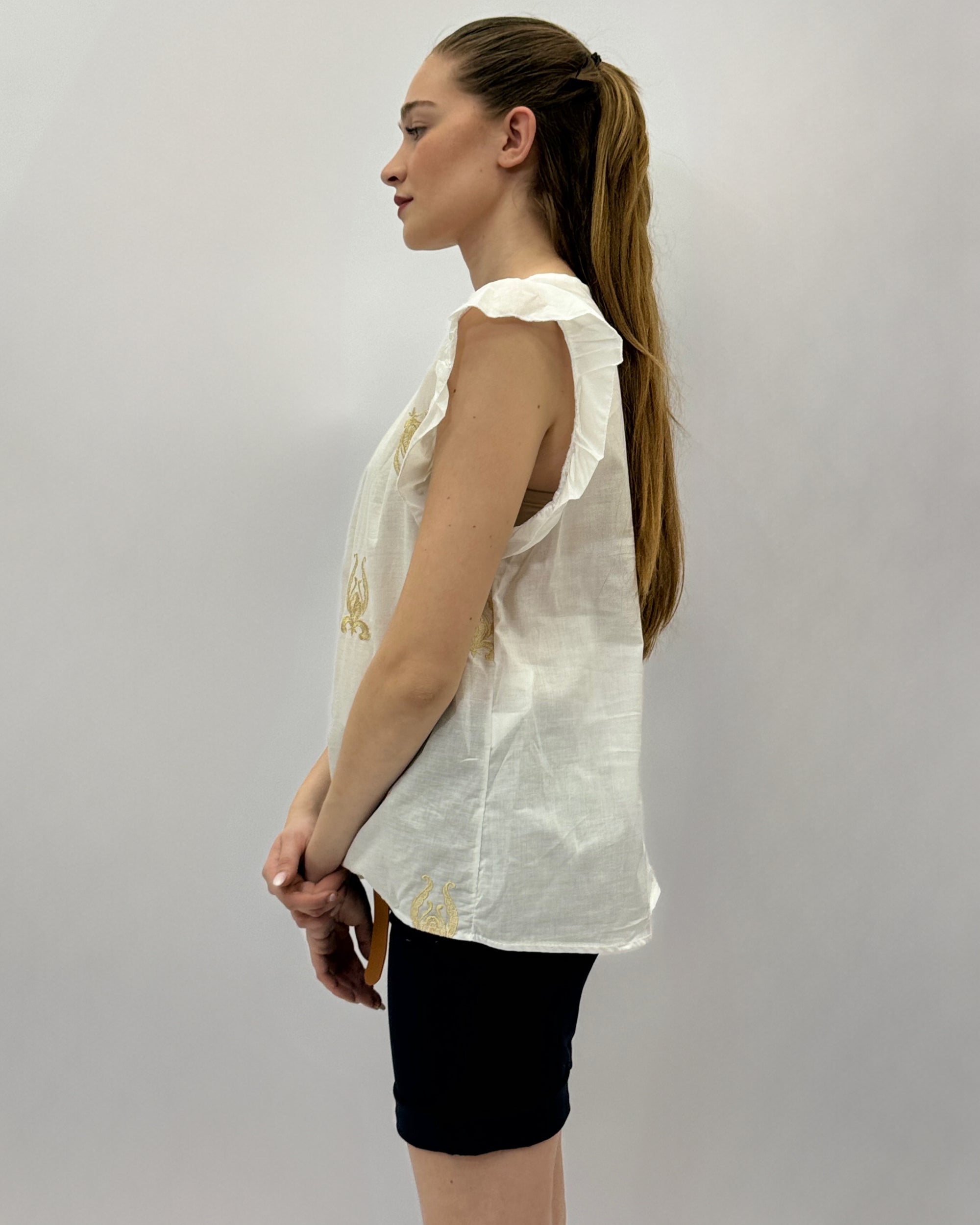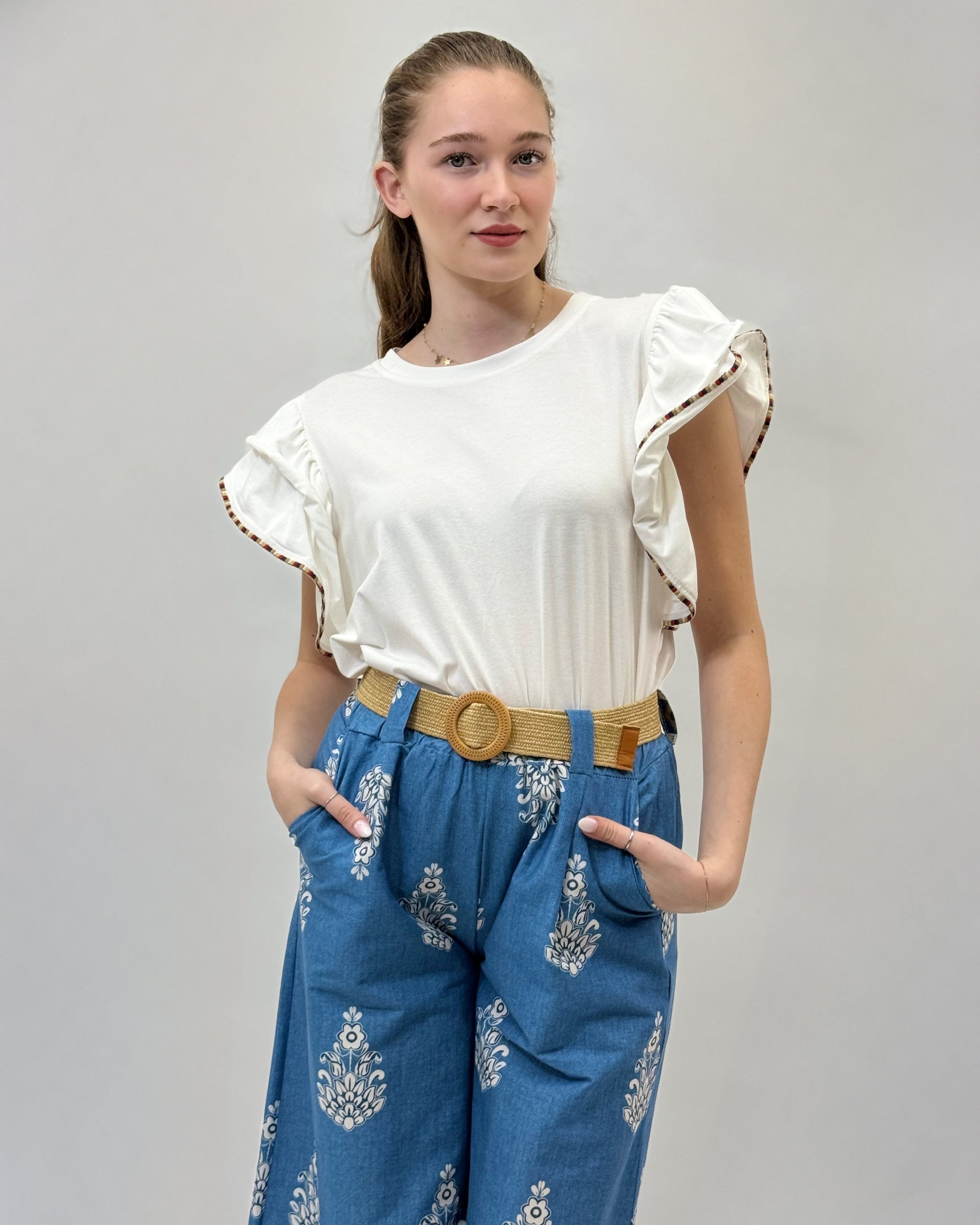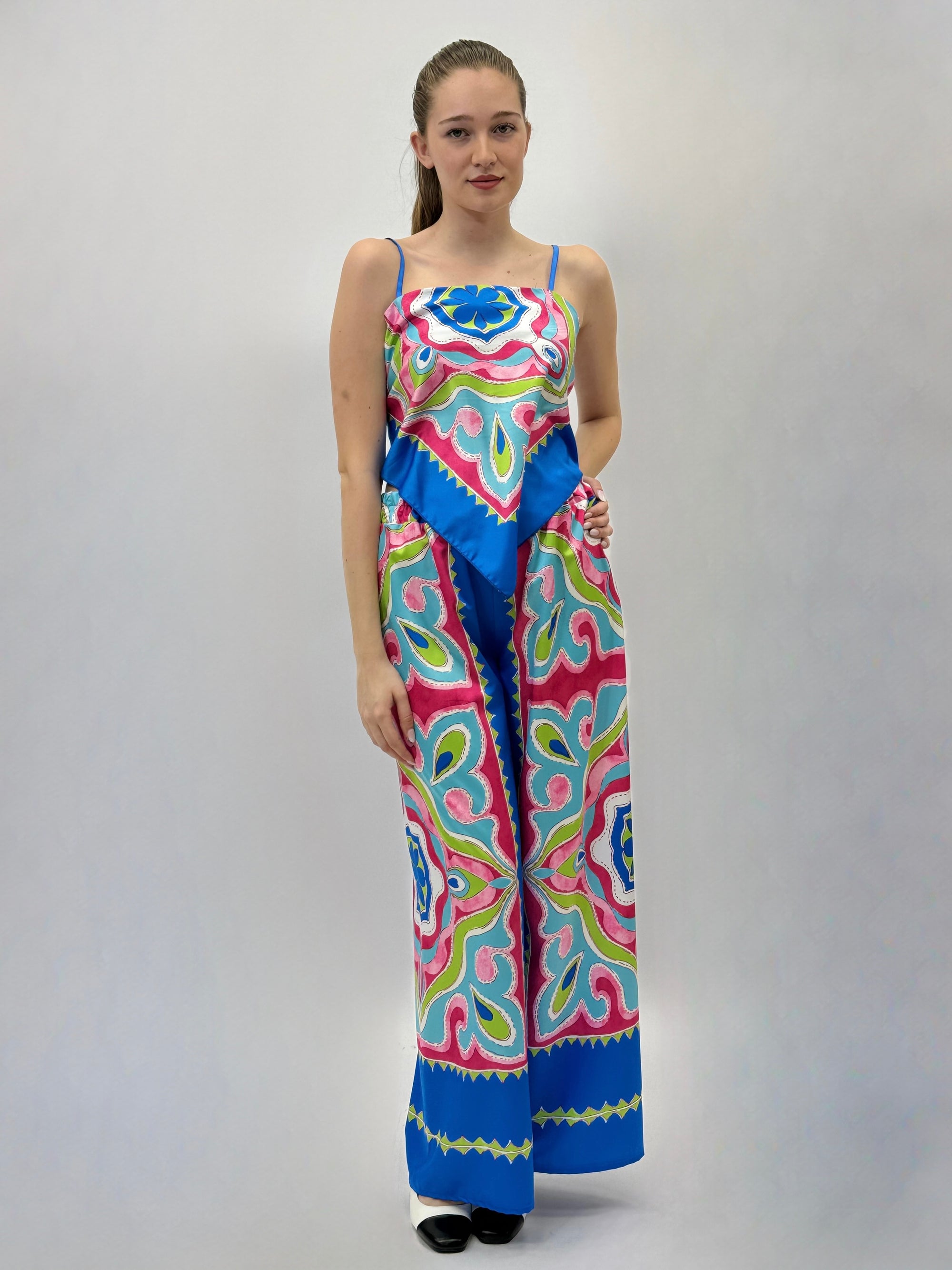 Abito lungo in pizzo sangallo con maniche a tre quarti e cintura