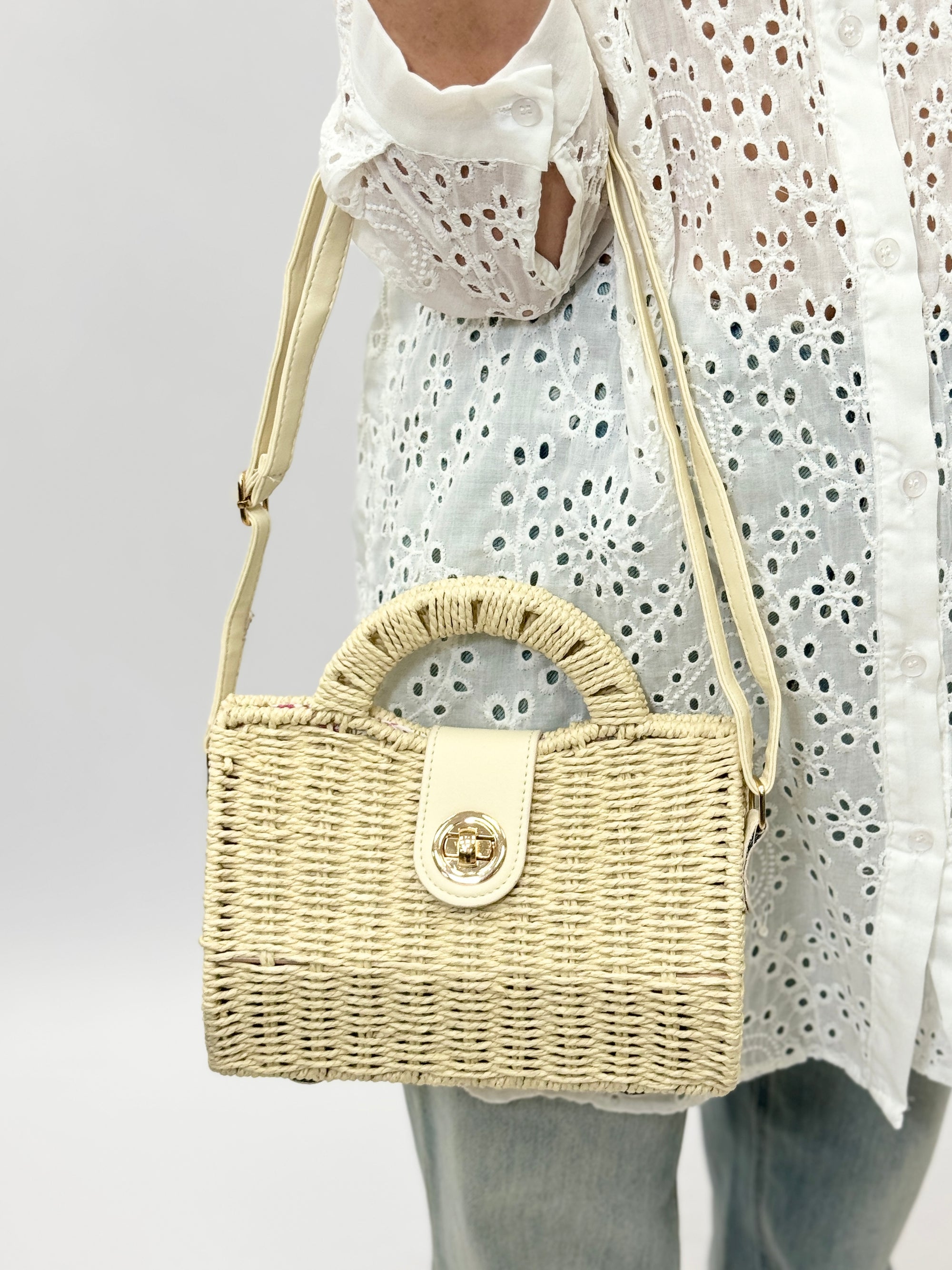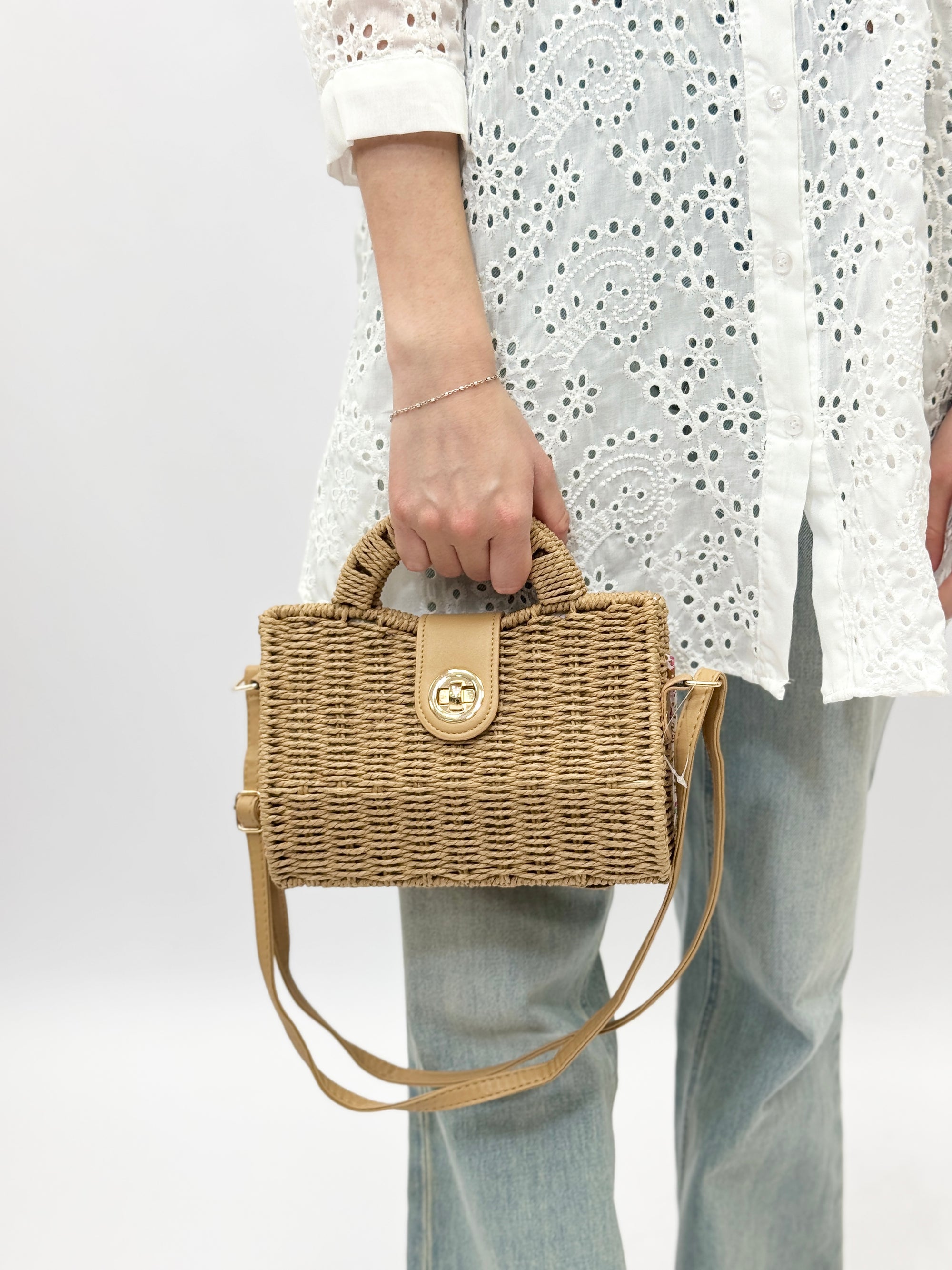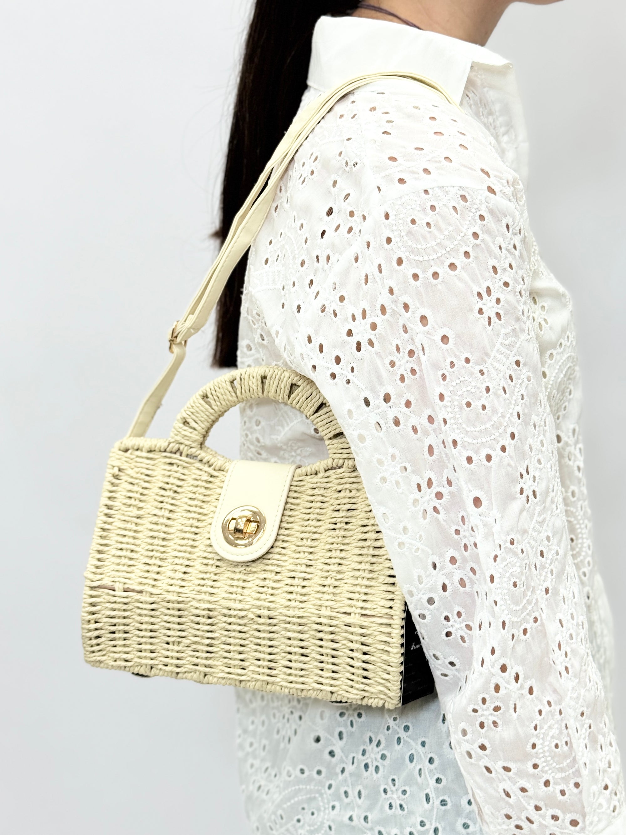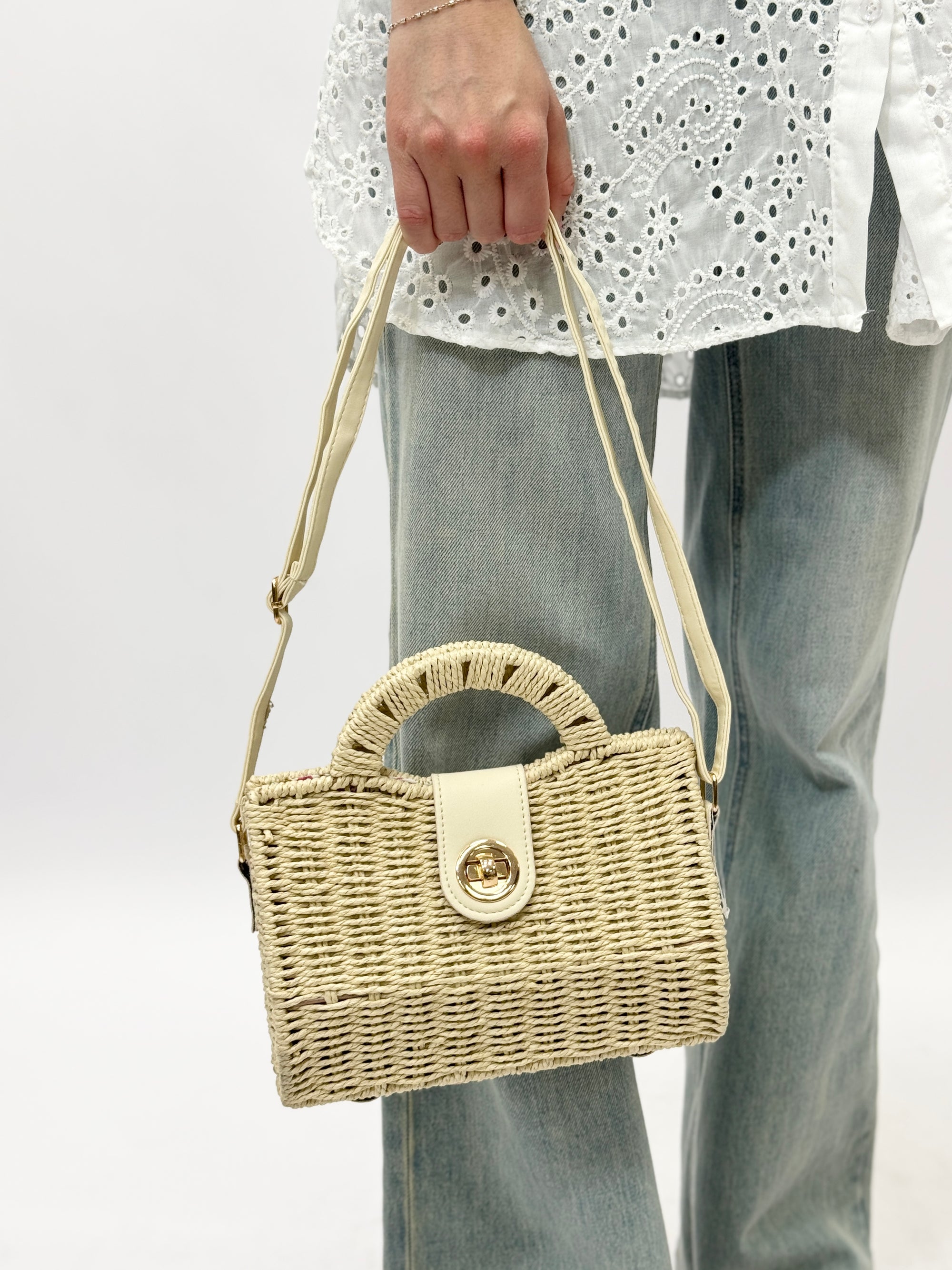 Borsa in paglia con manico rigido