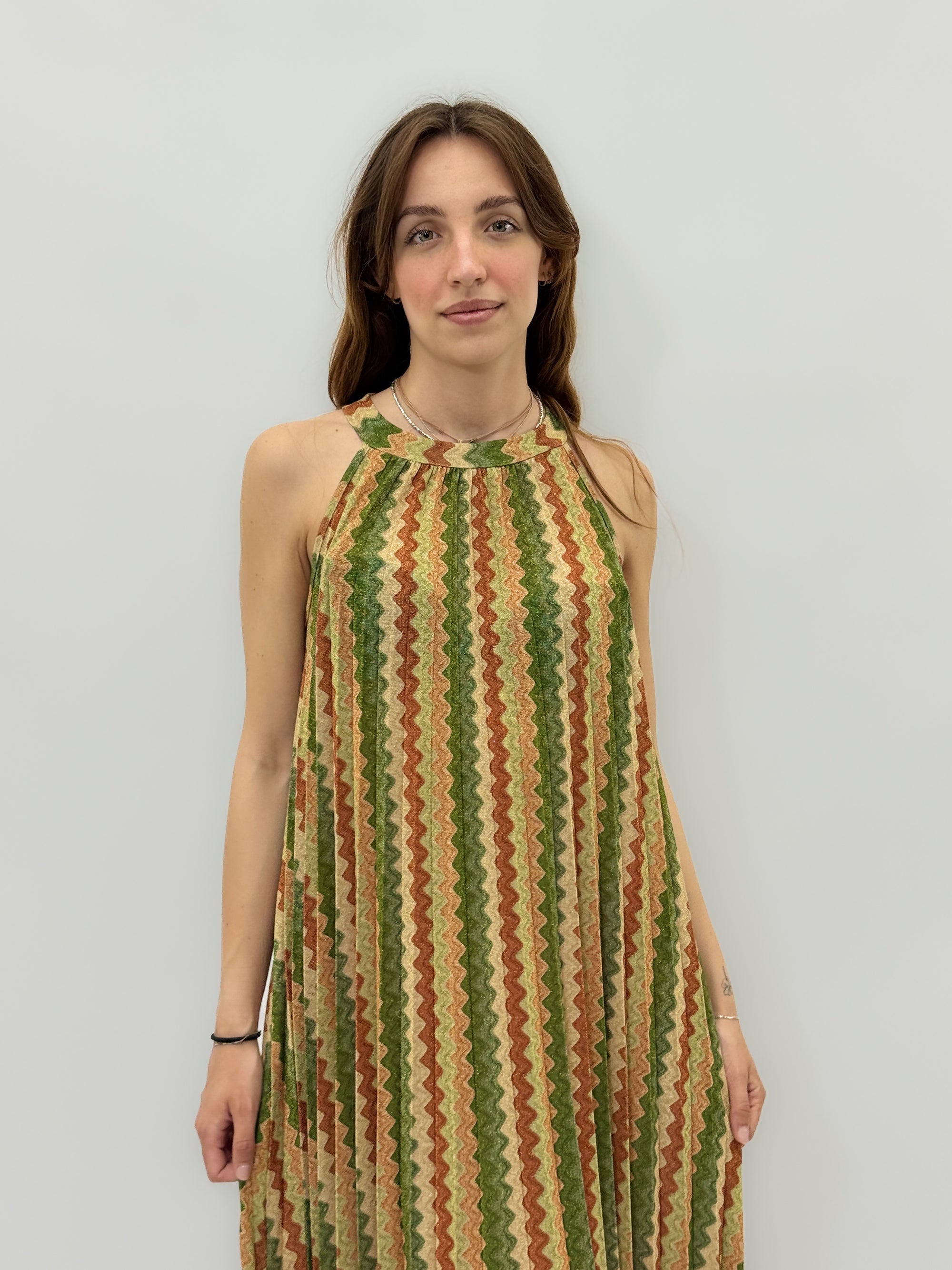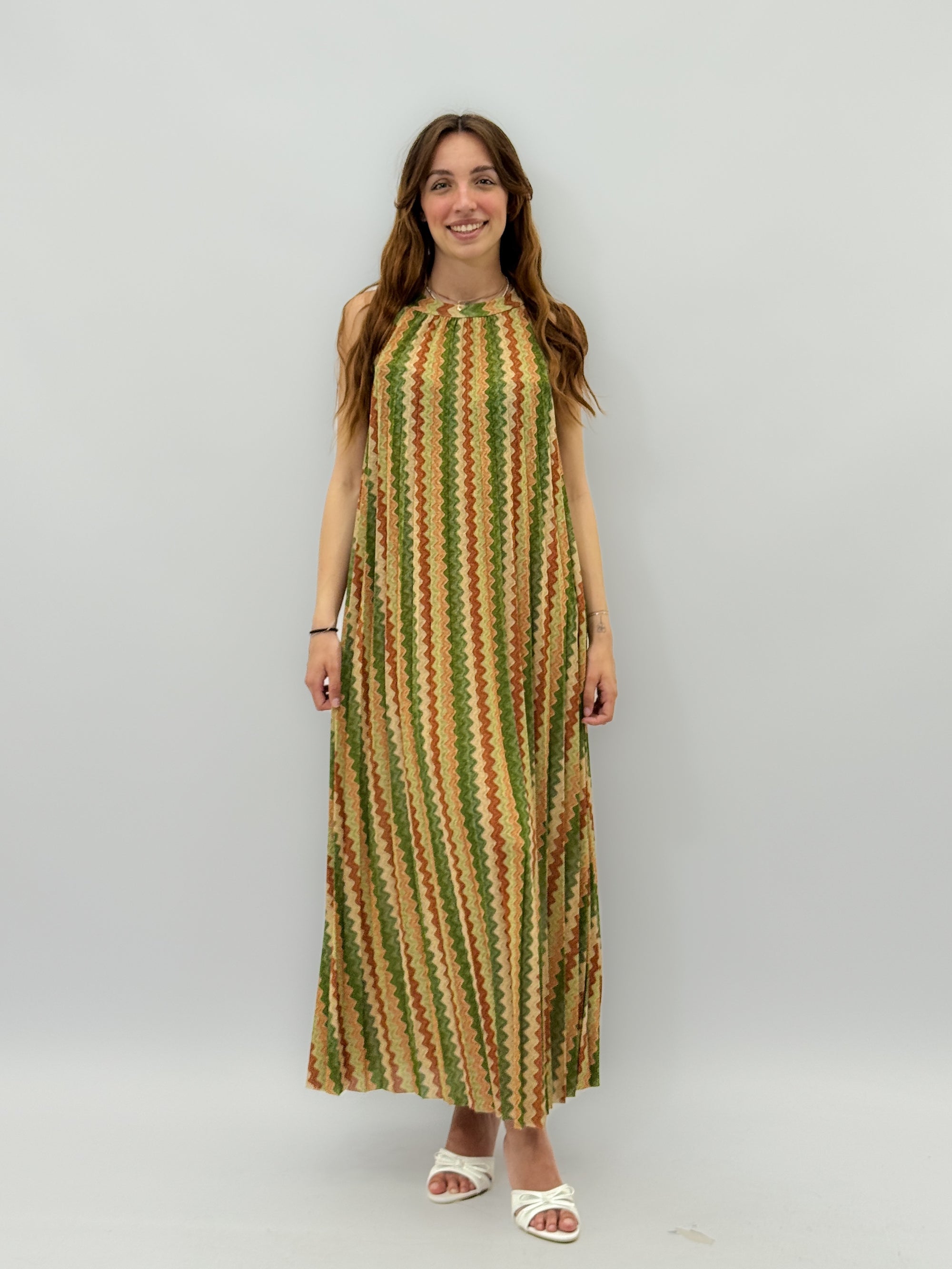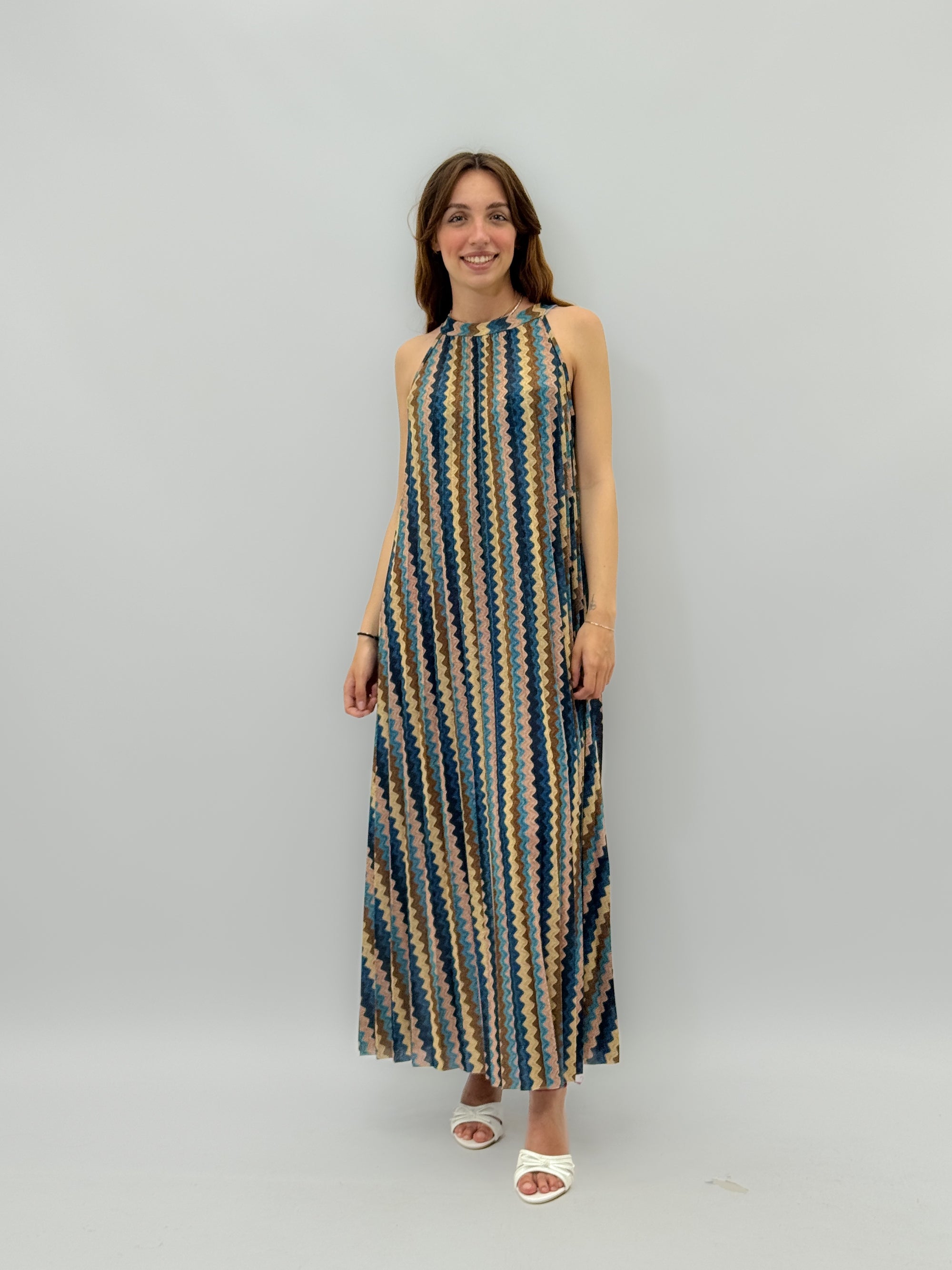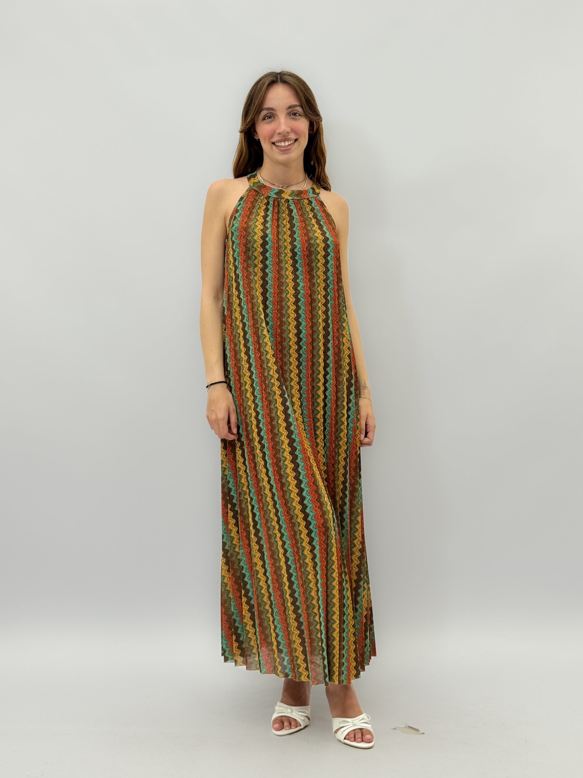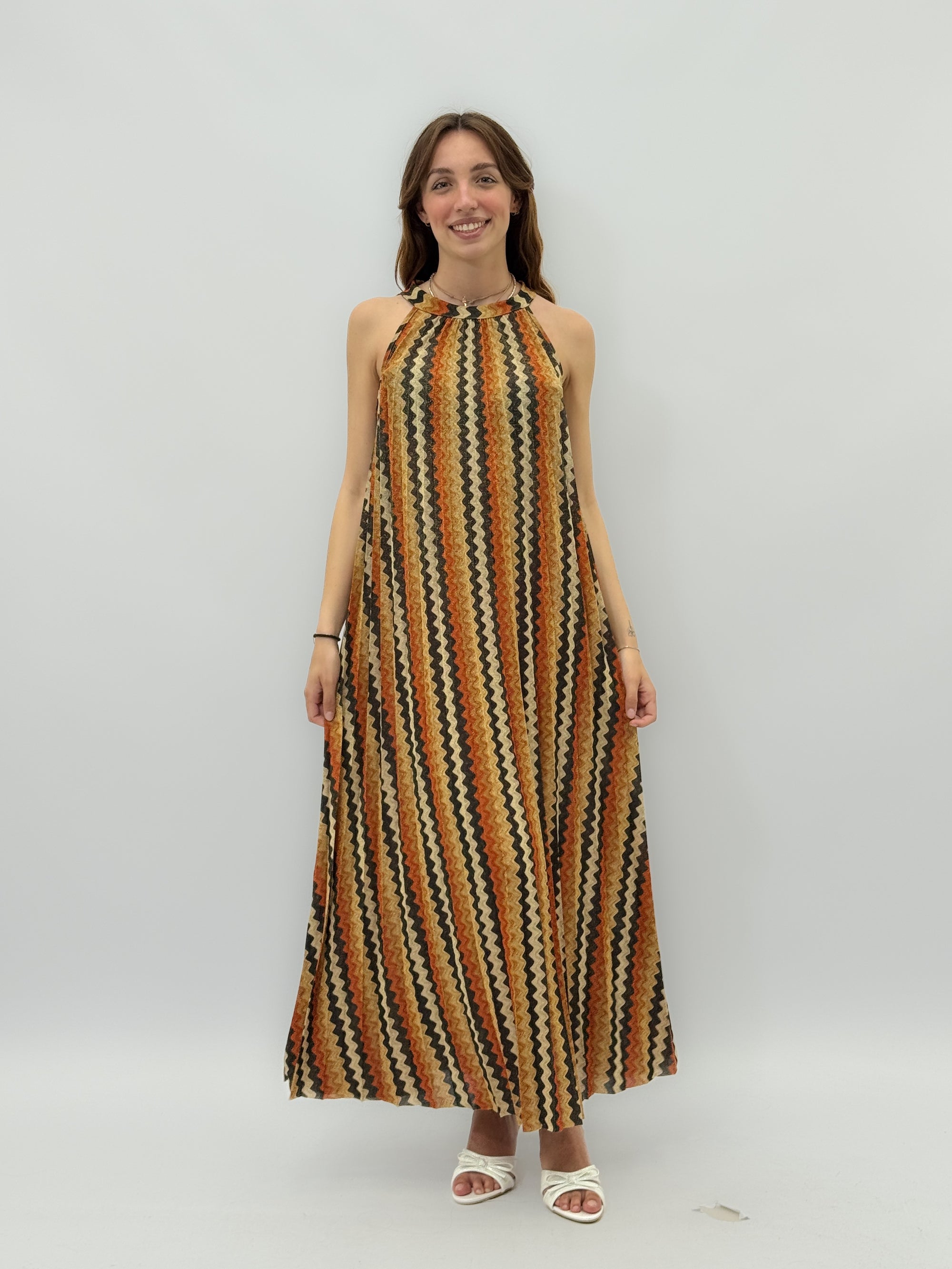 Abito lungo scollo halter in lurex
