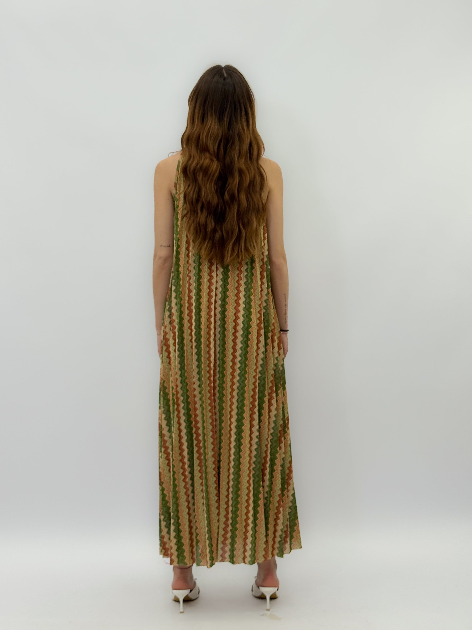 Abito lungo plissé animalier
