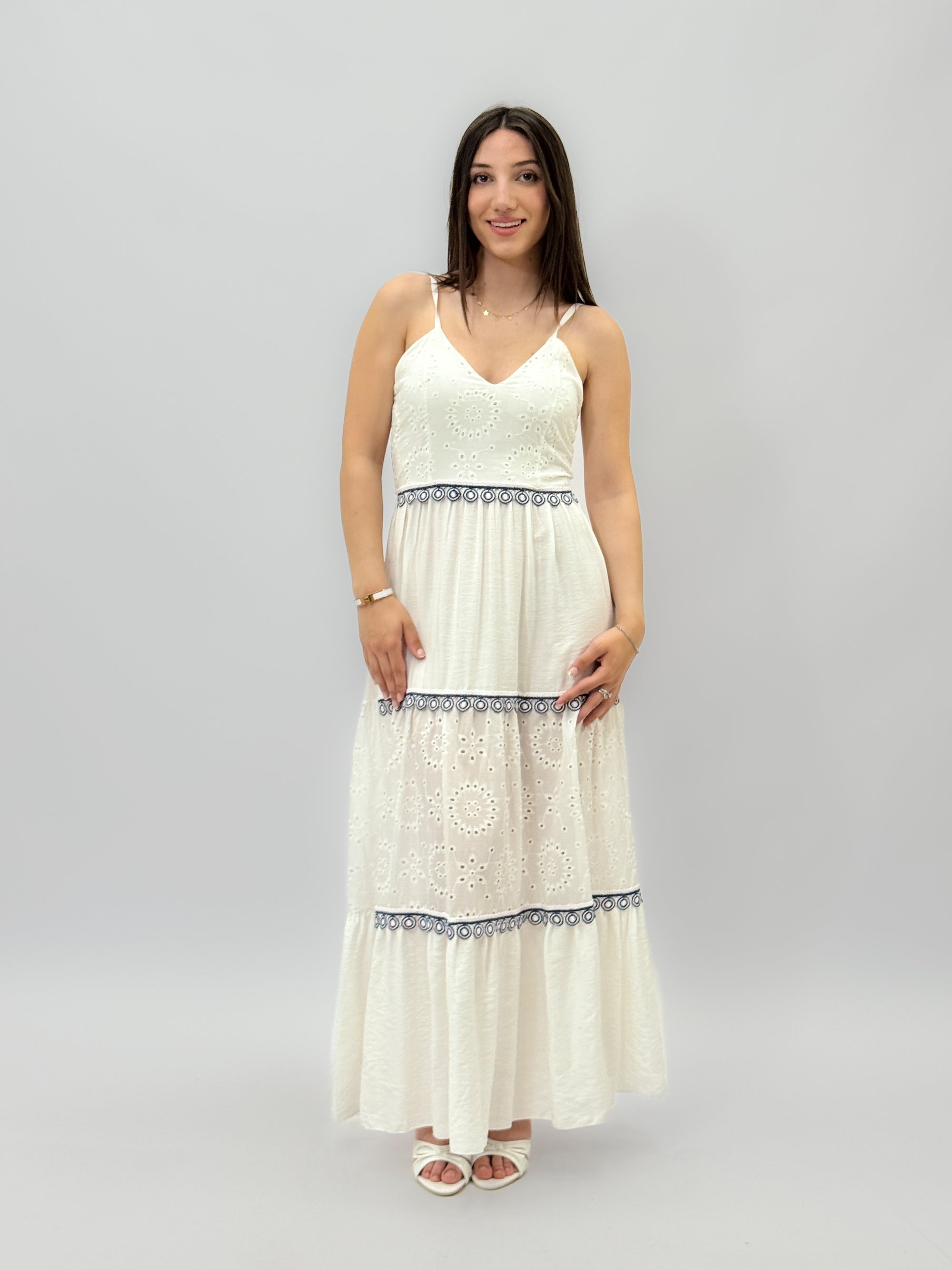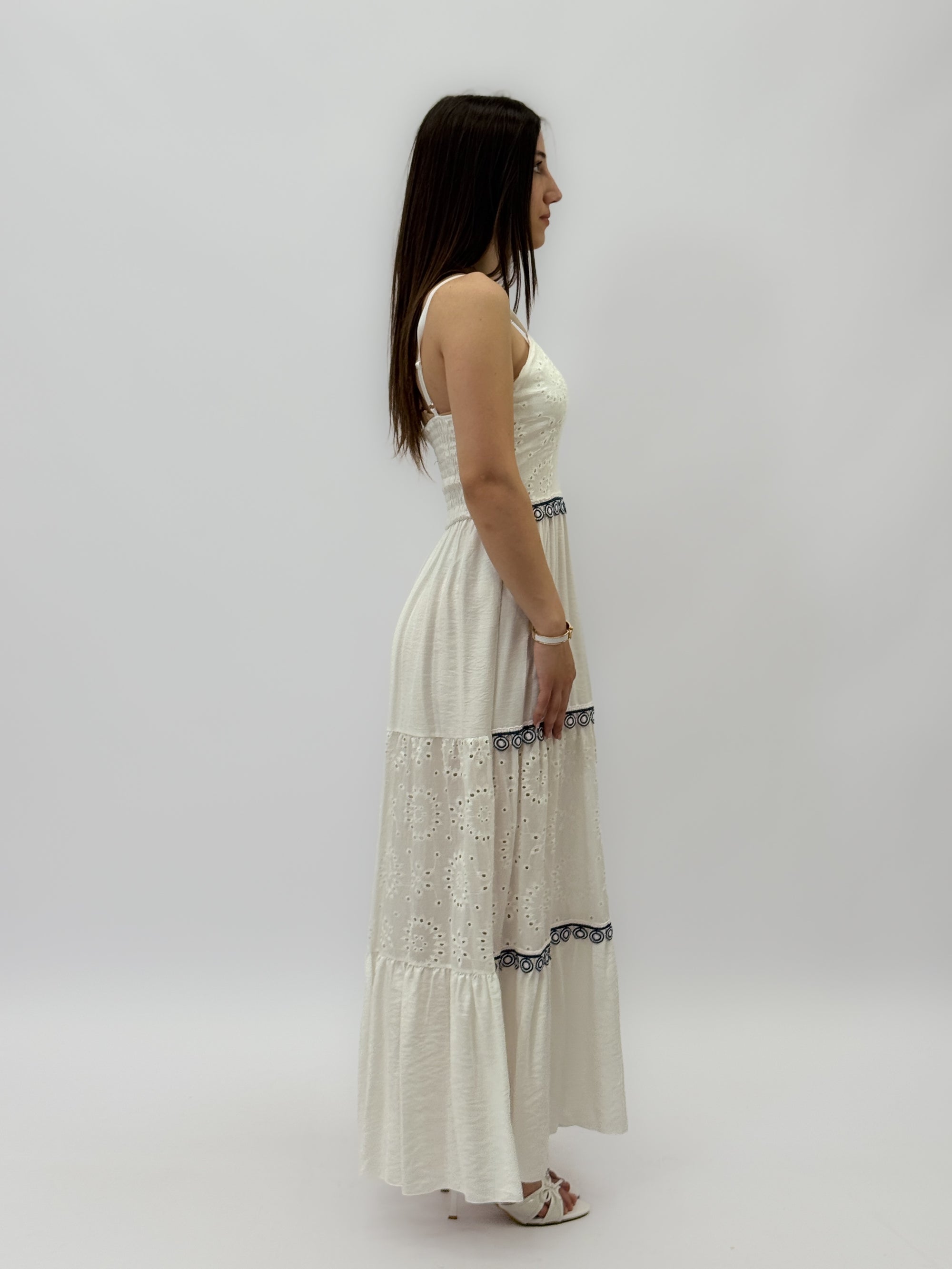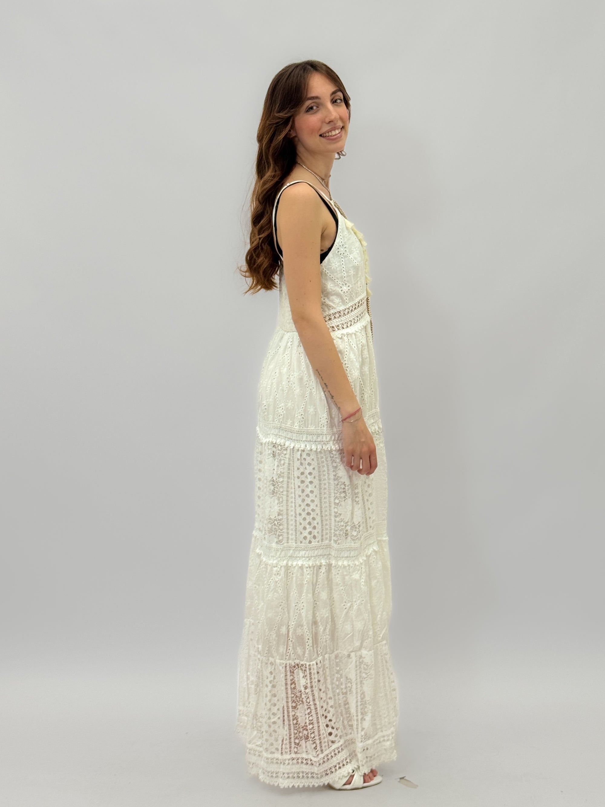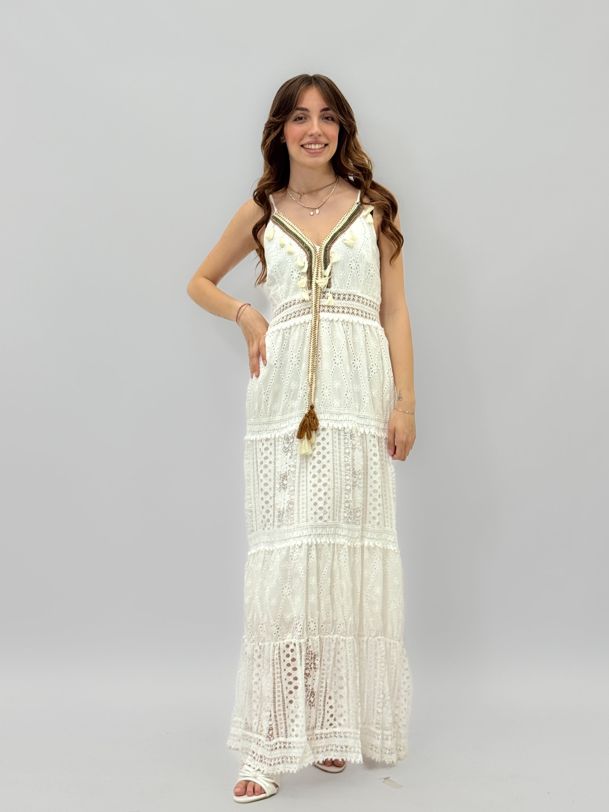 Abito lungo in pizzo sangallo con ricami