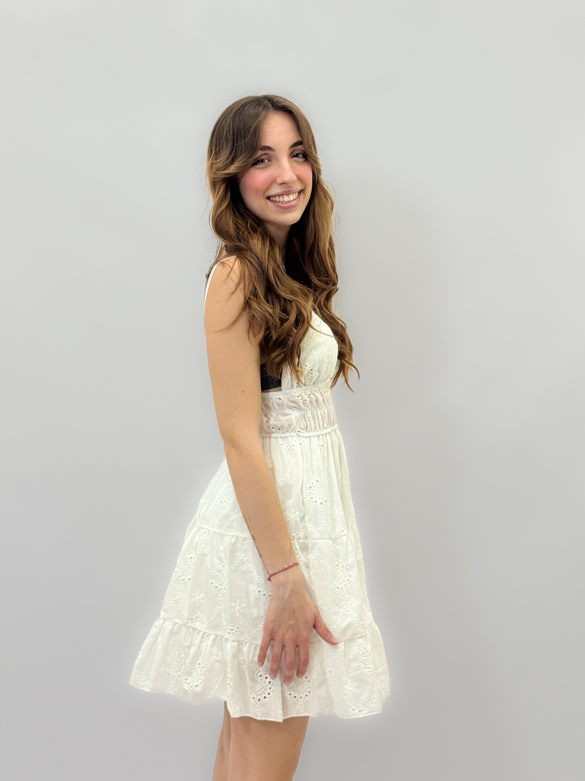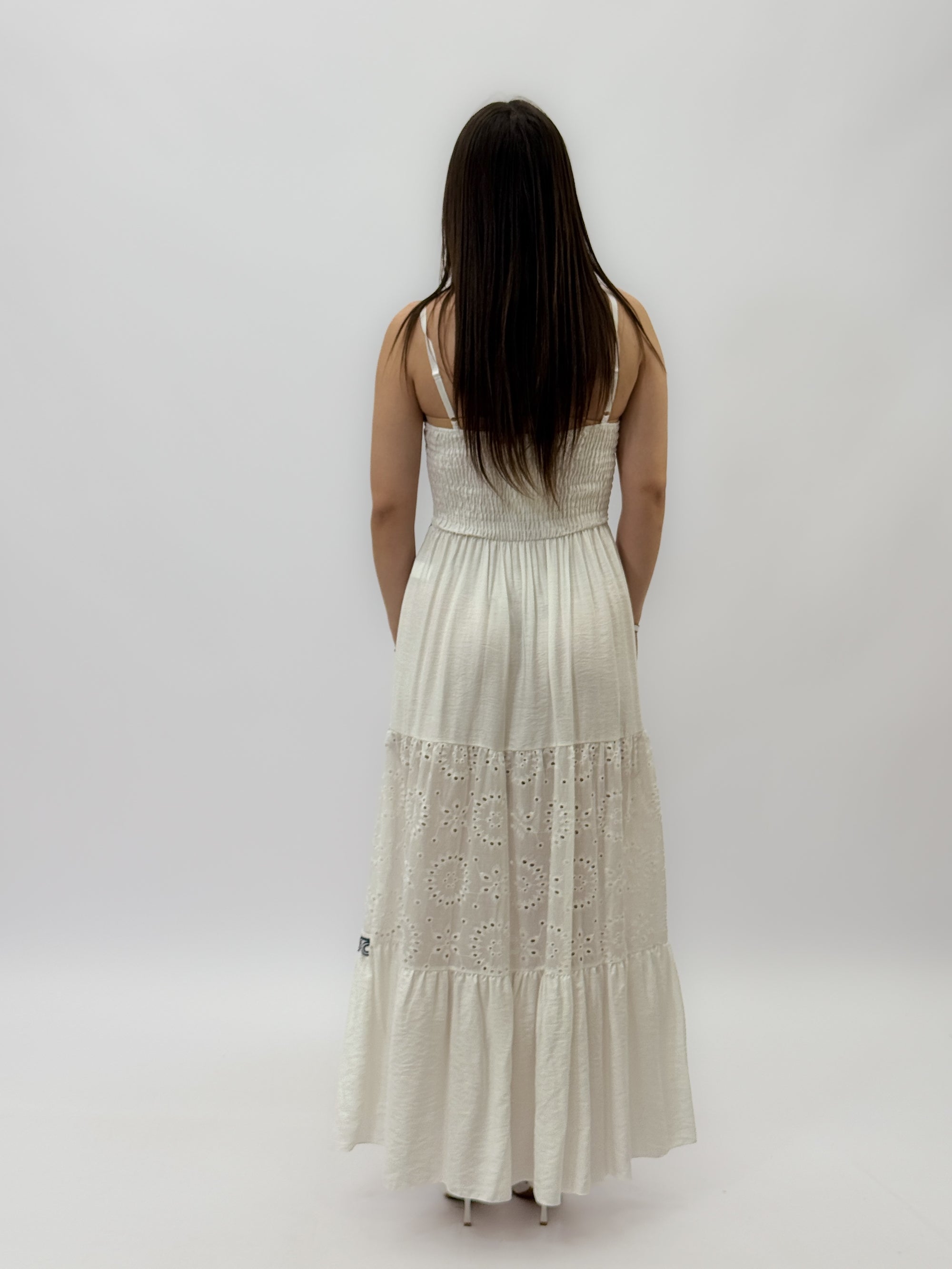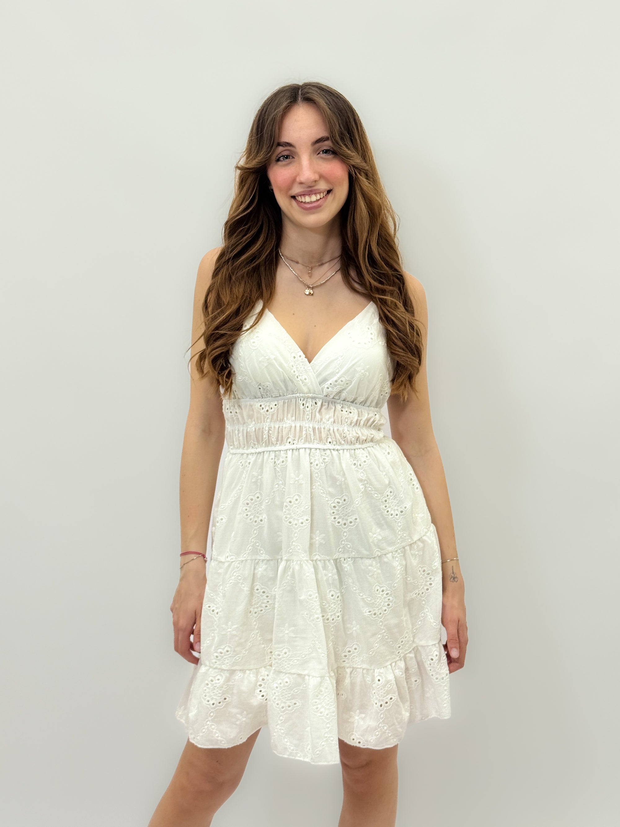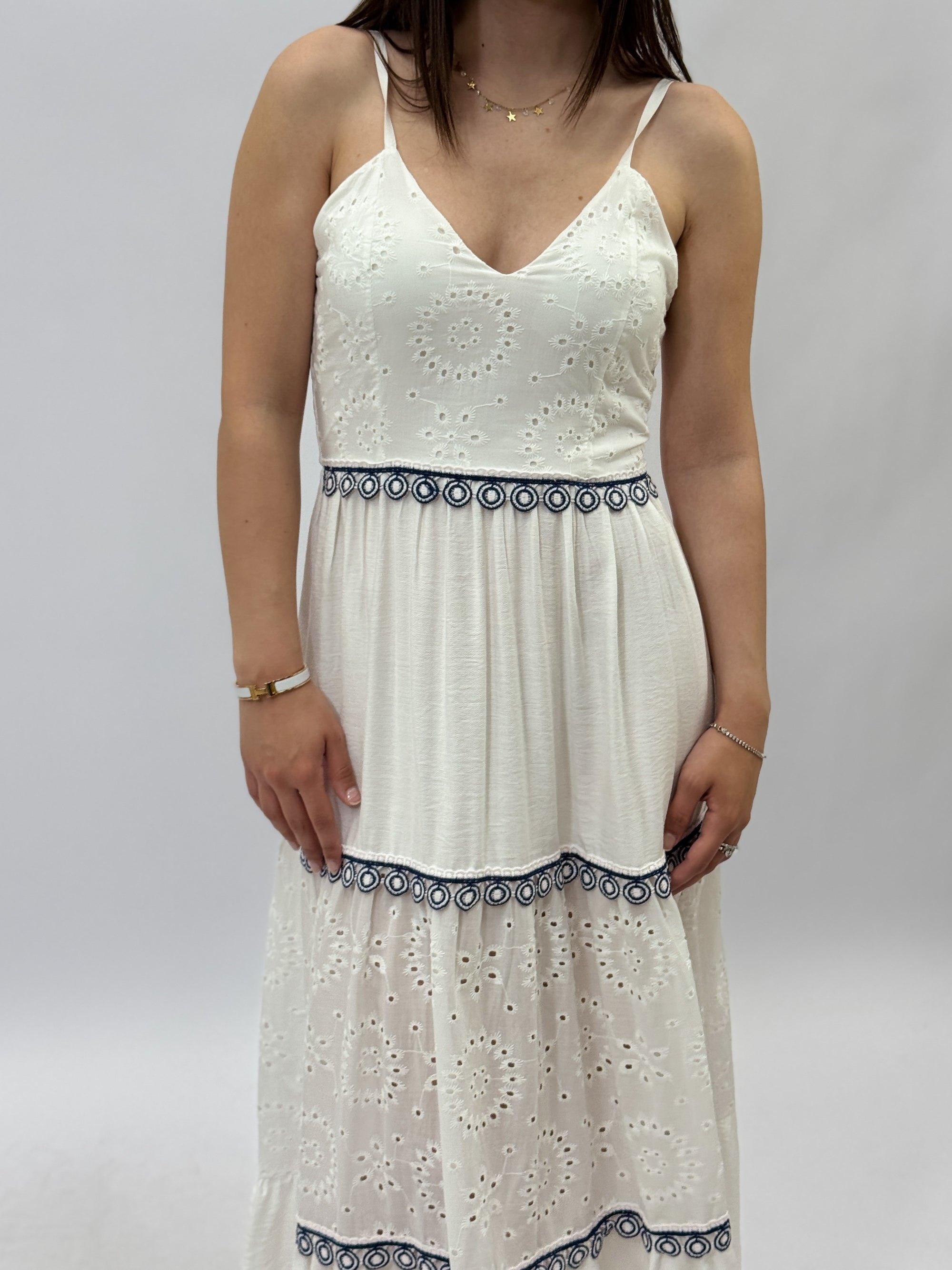 Abito lungo in pizzo sangallo con ricami