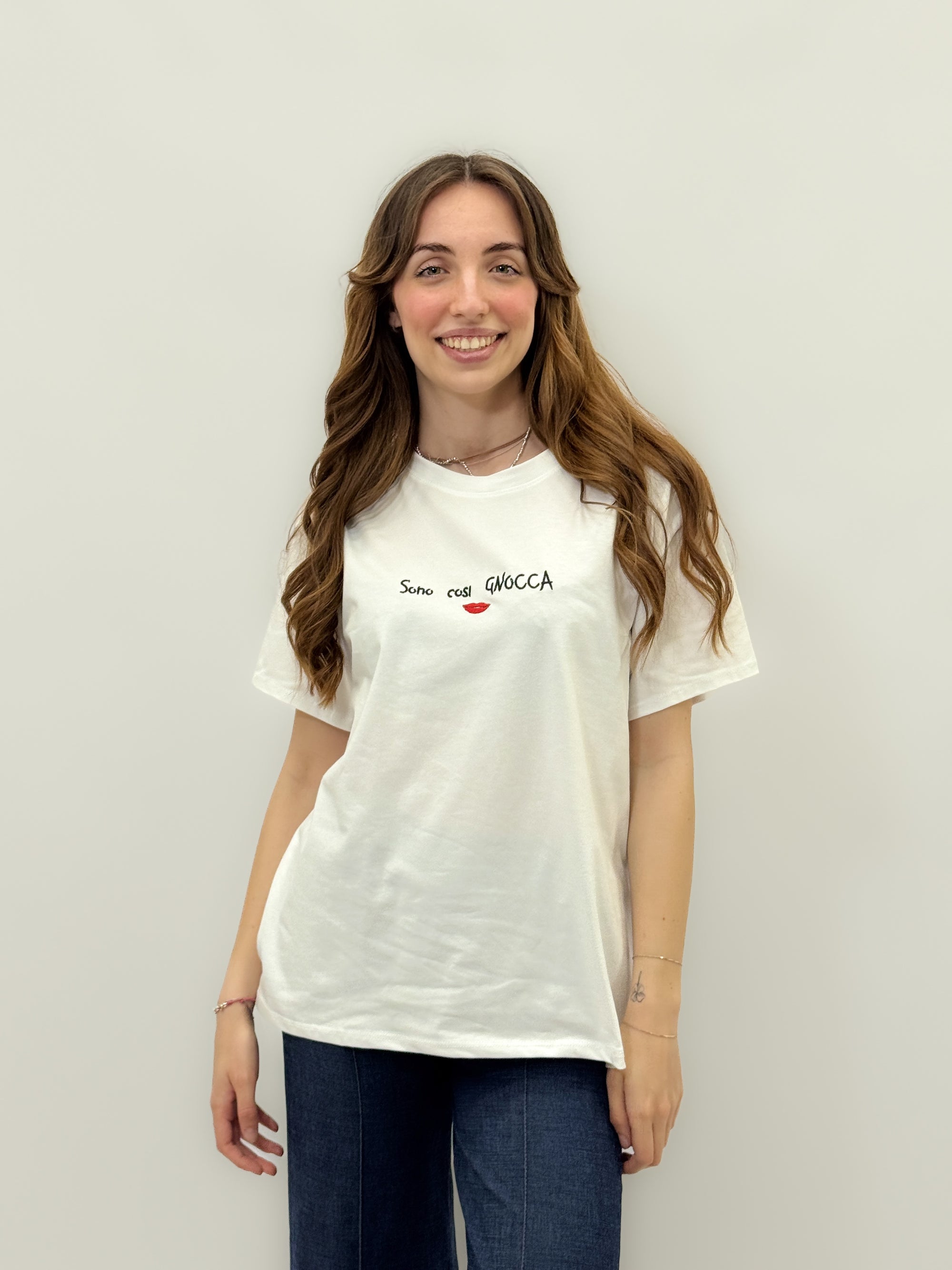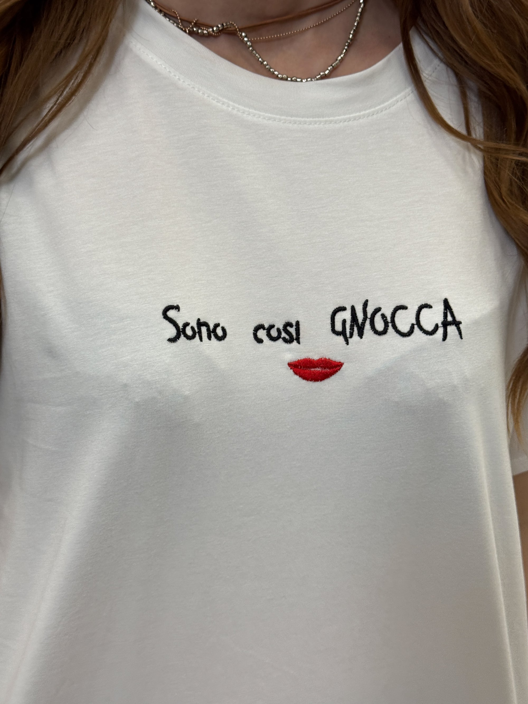 T-shirt con scritta "sono cosi gnocca"