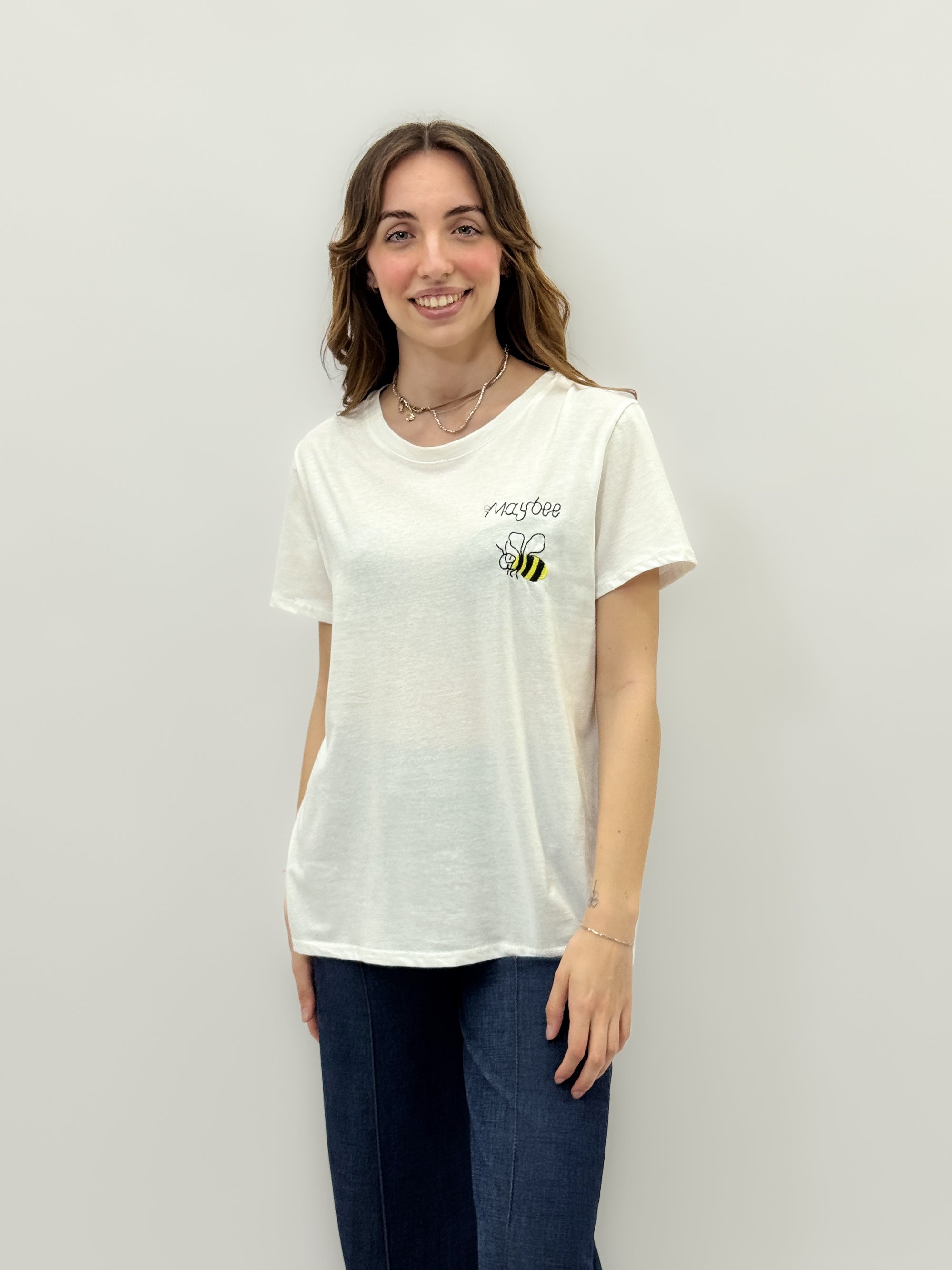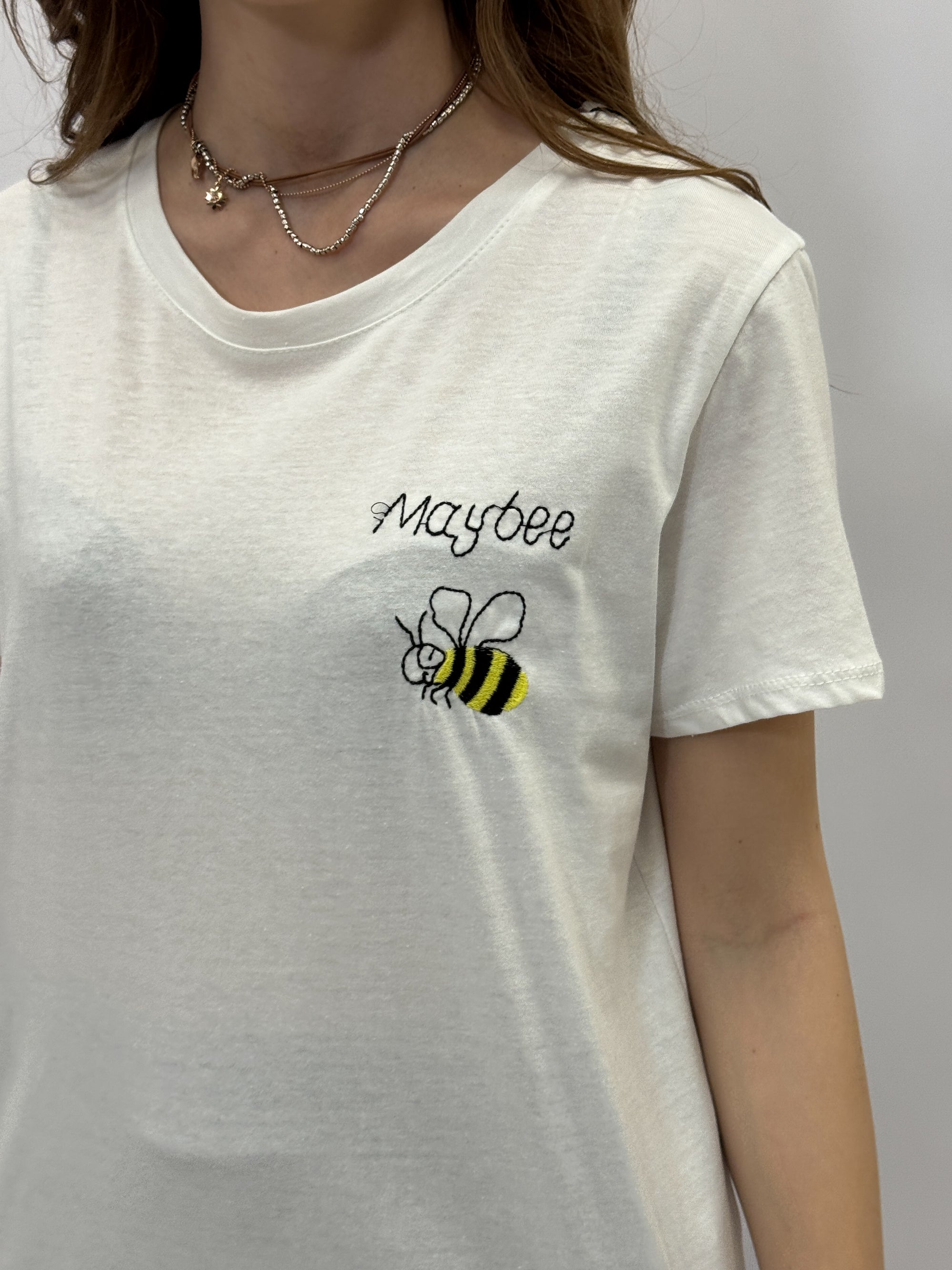 T-shirt con scritta "maybee"