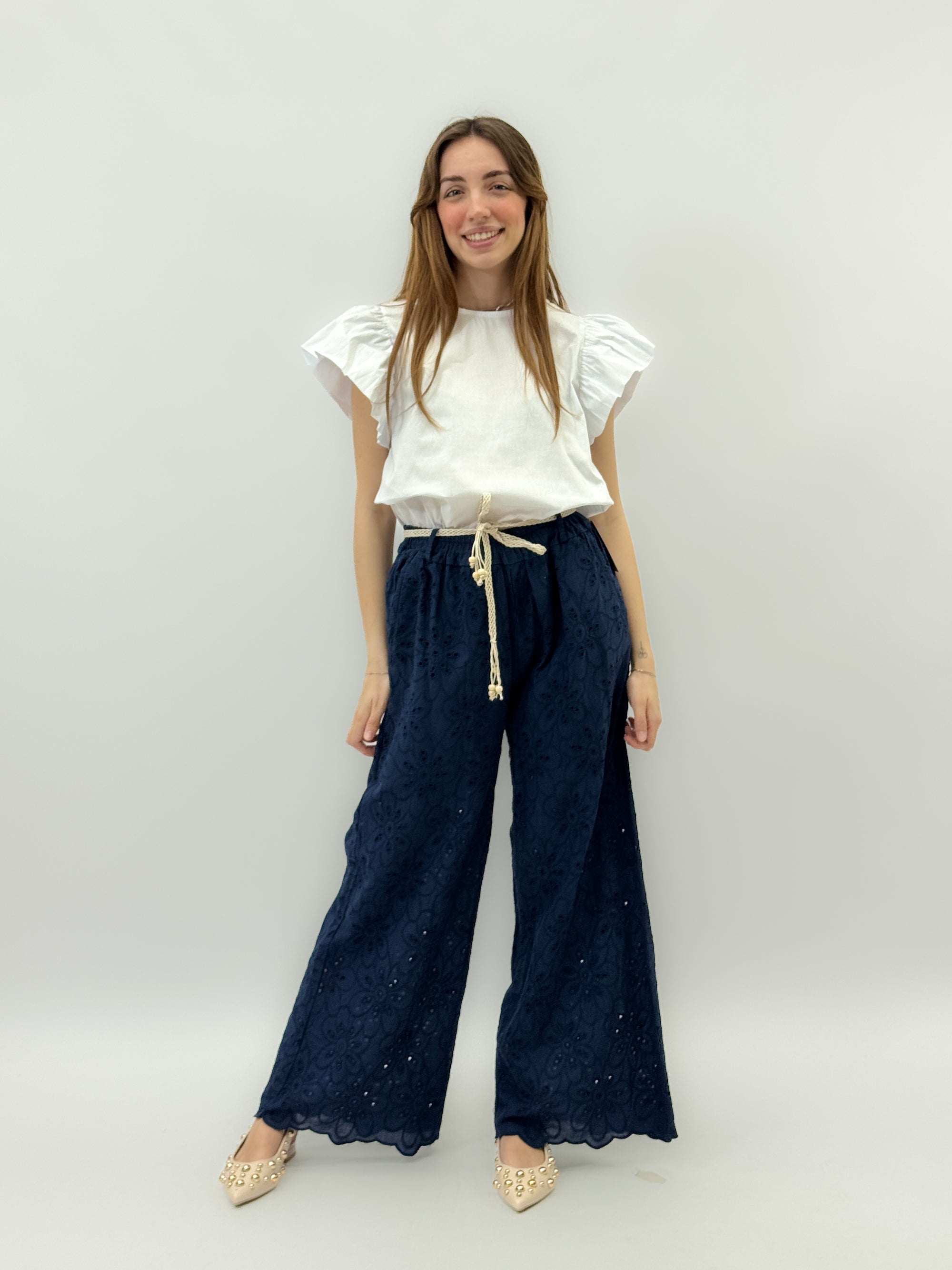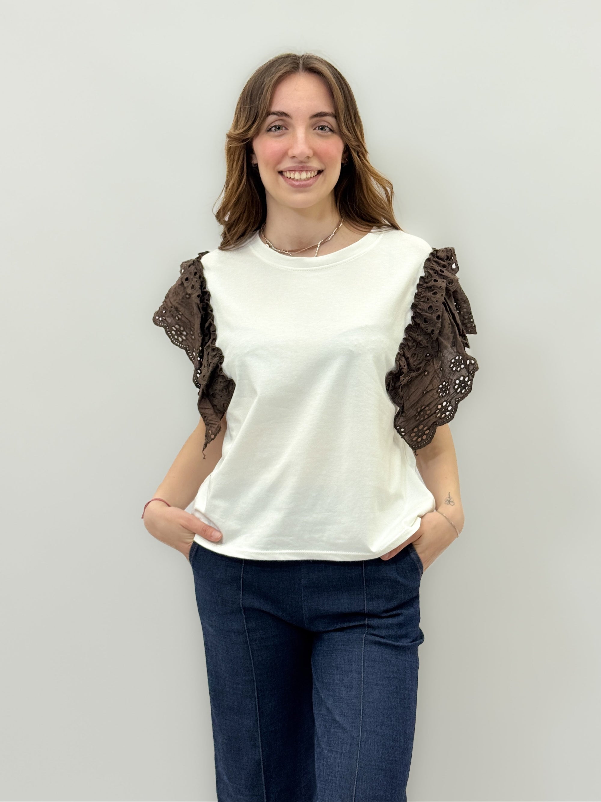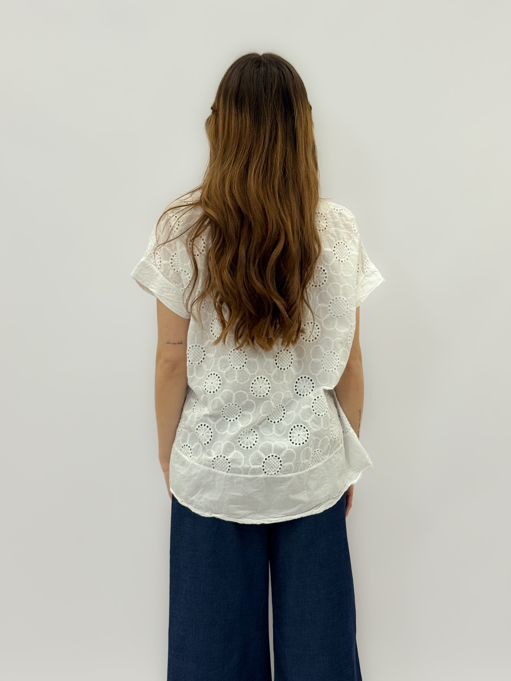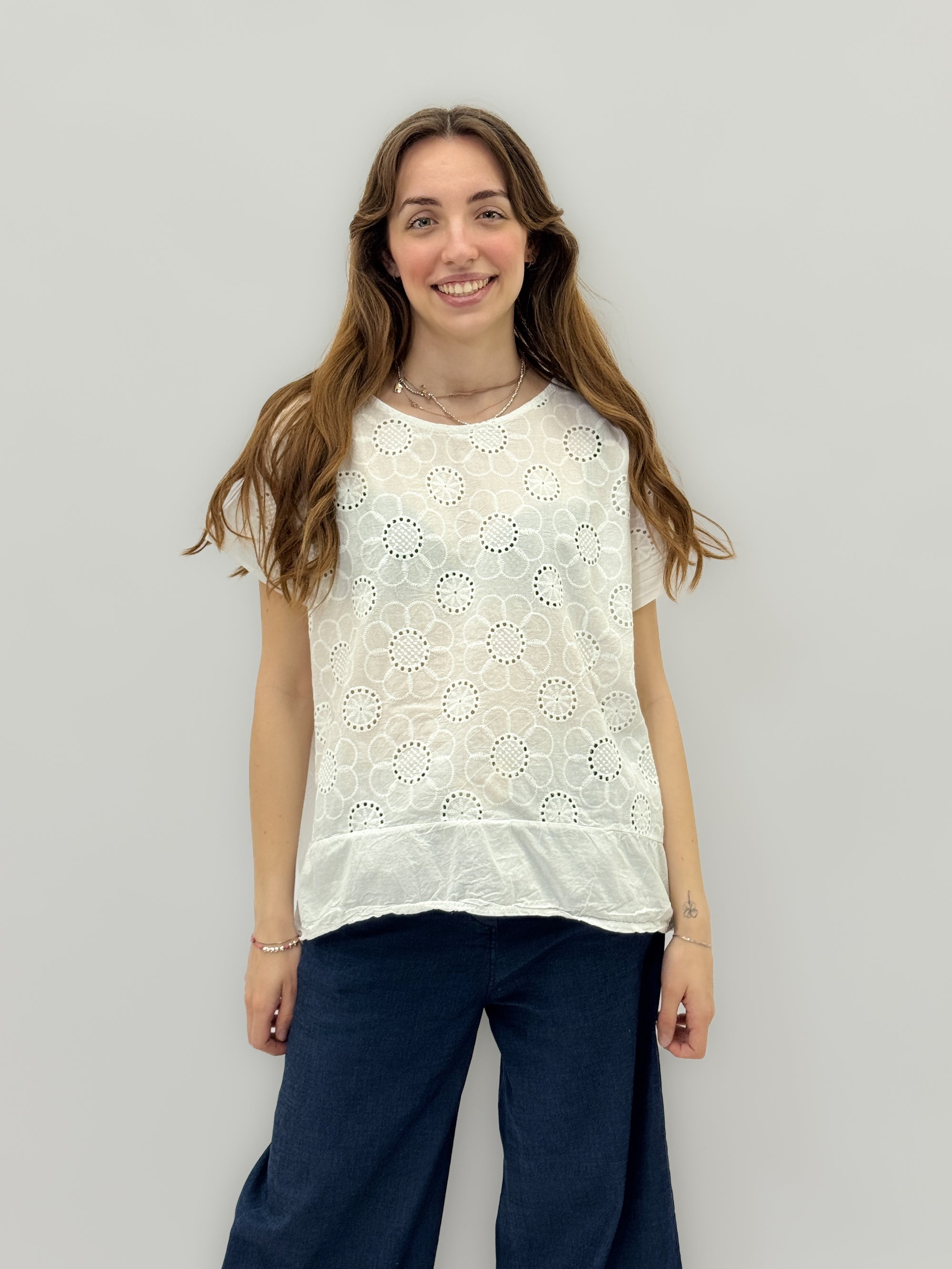 Maglia in pizzo sangallo con ricami