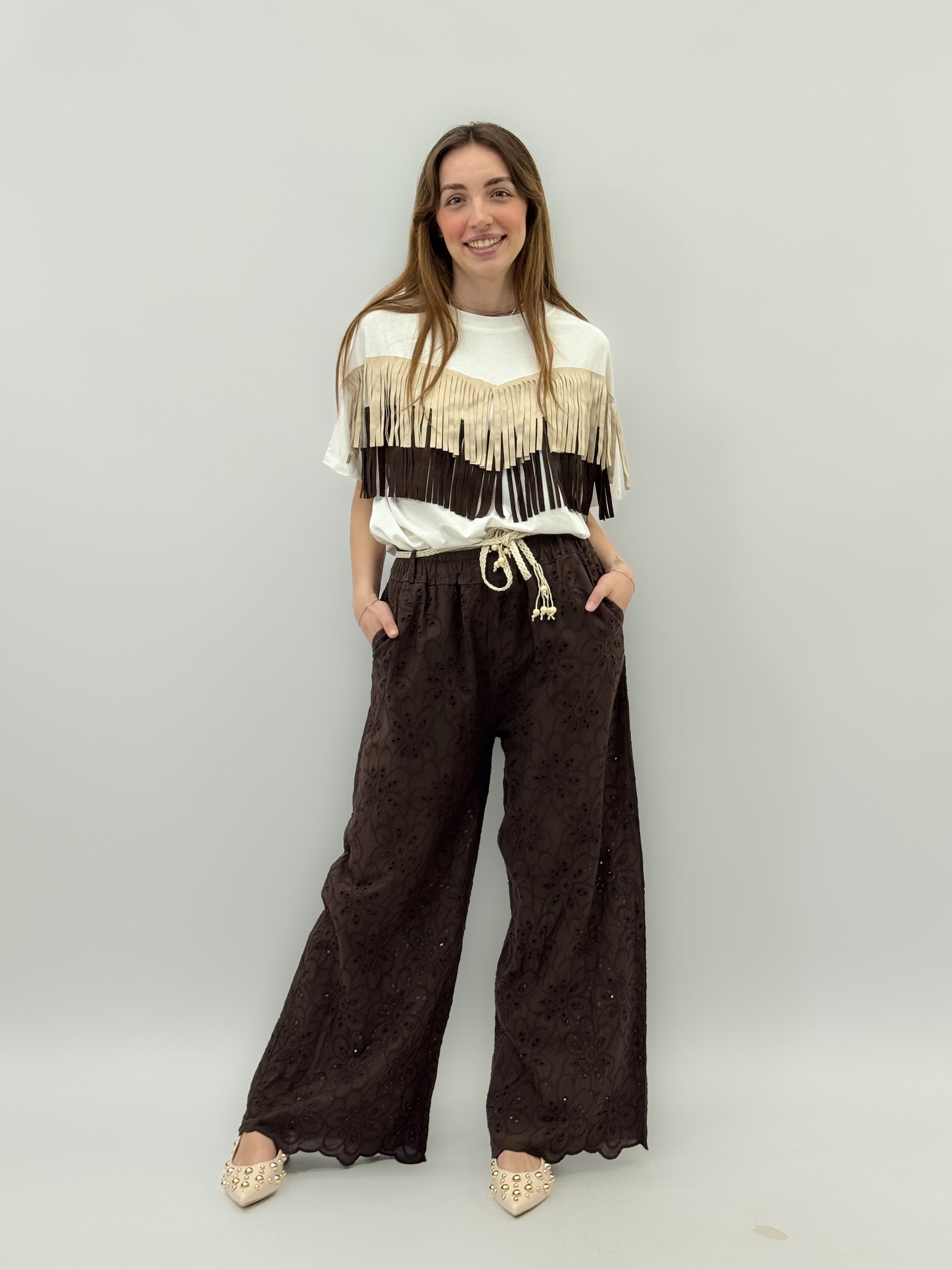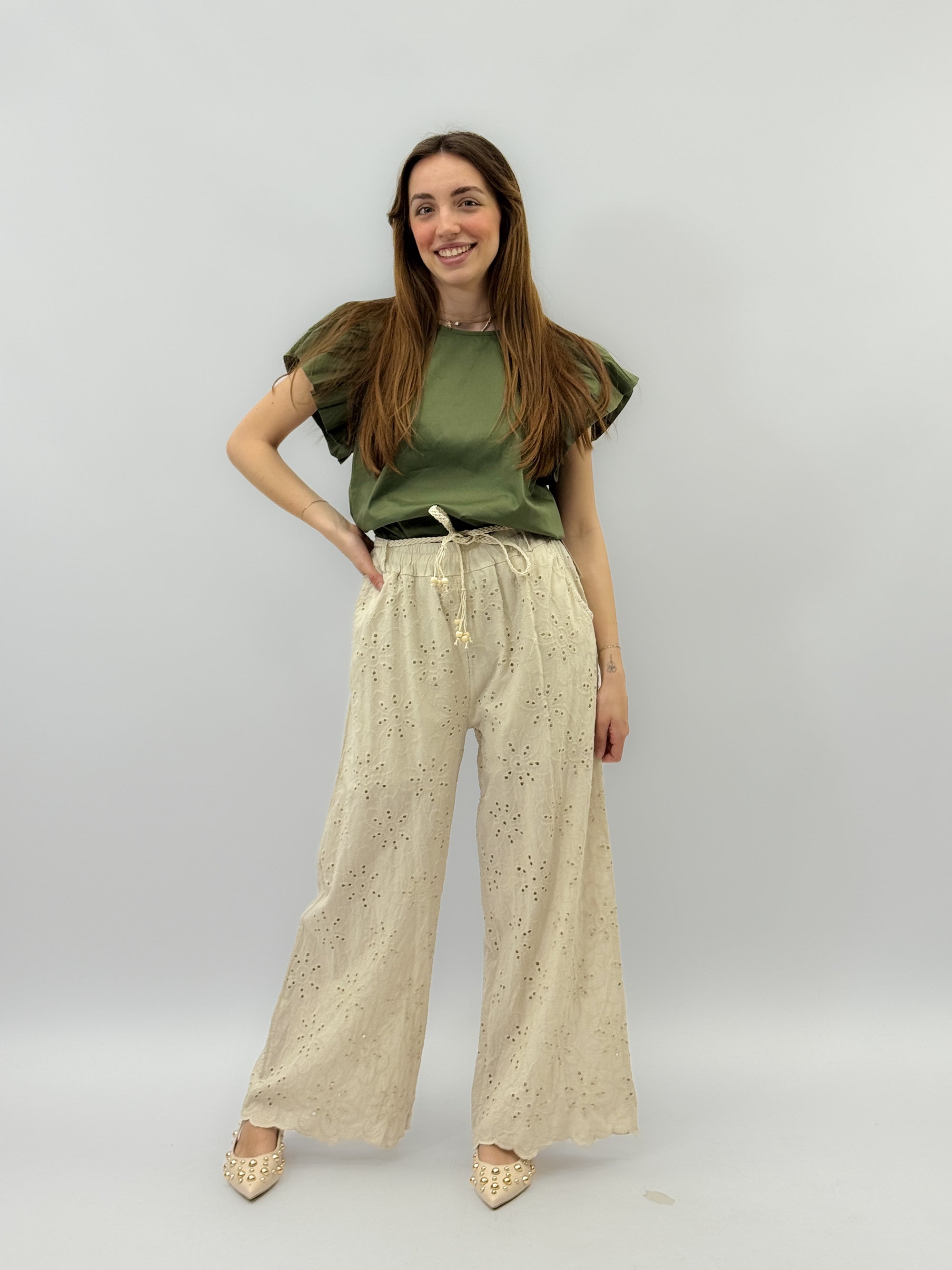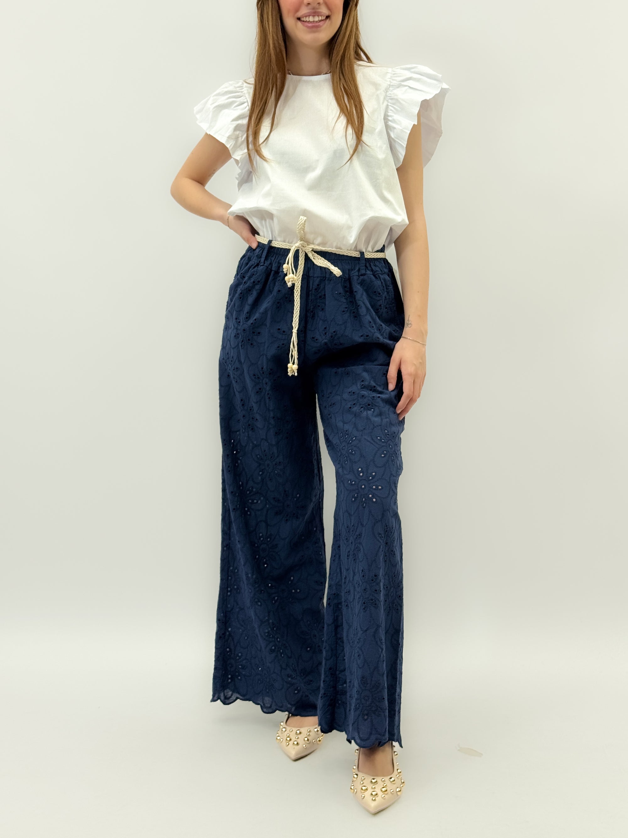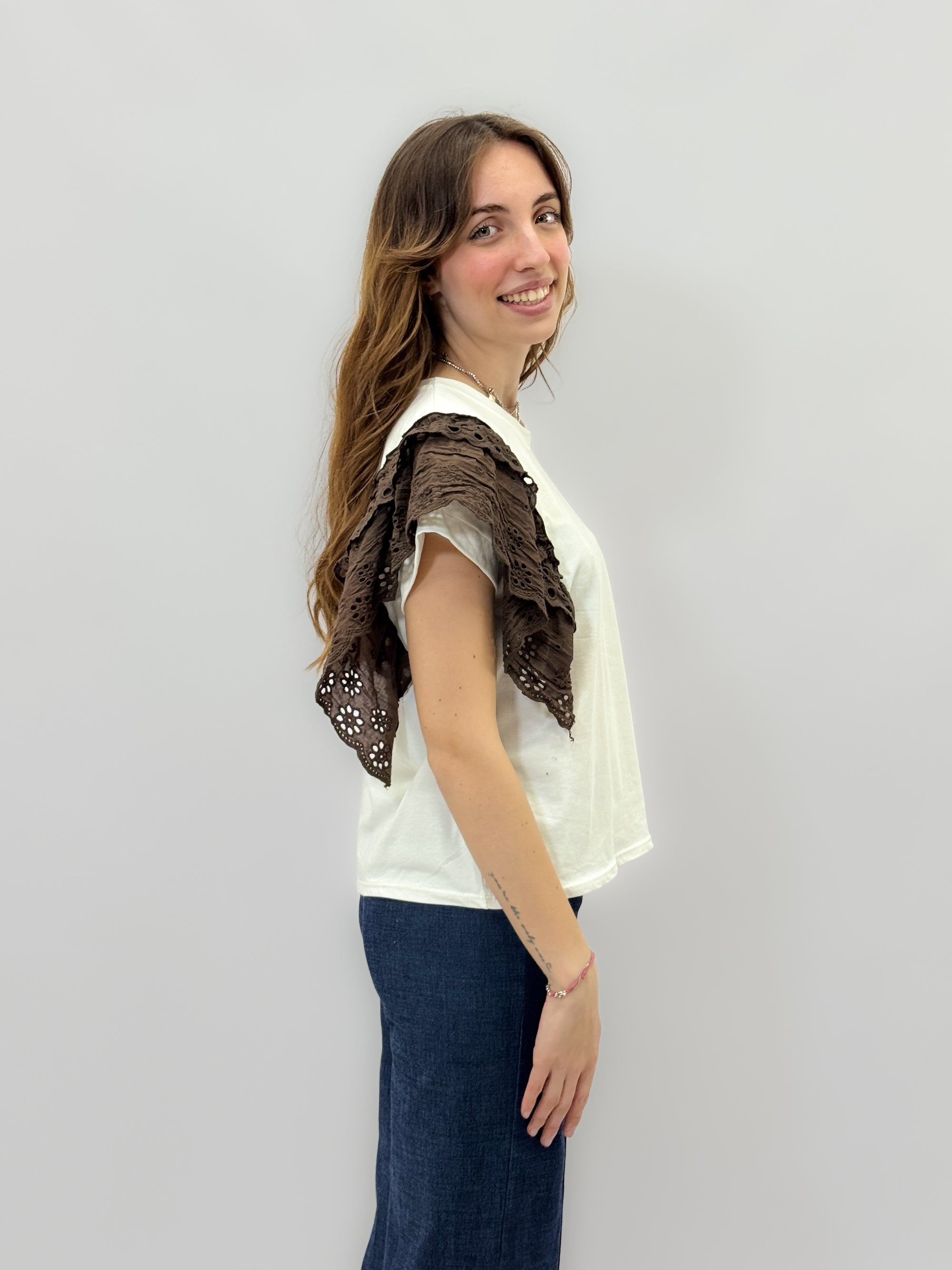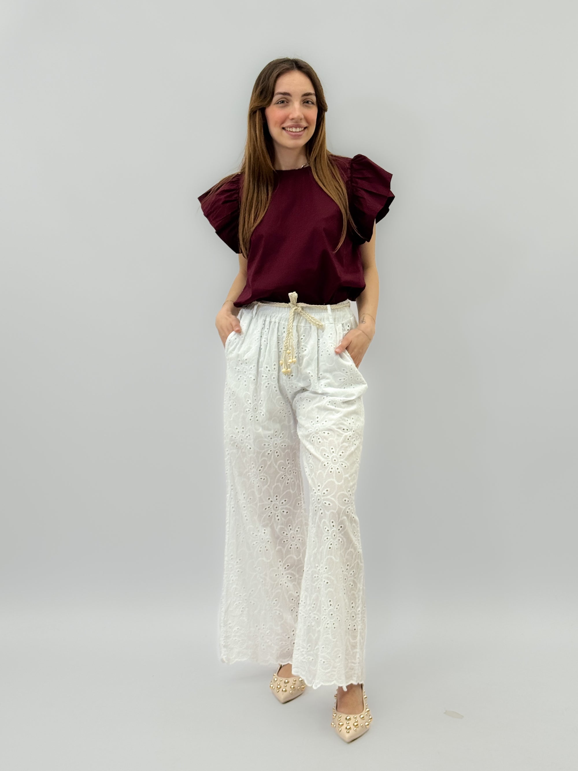 Maglia in pizzo sangallo con ricami