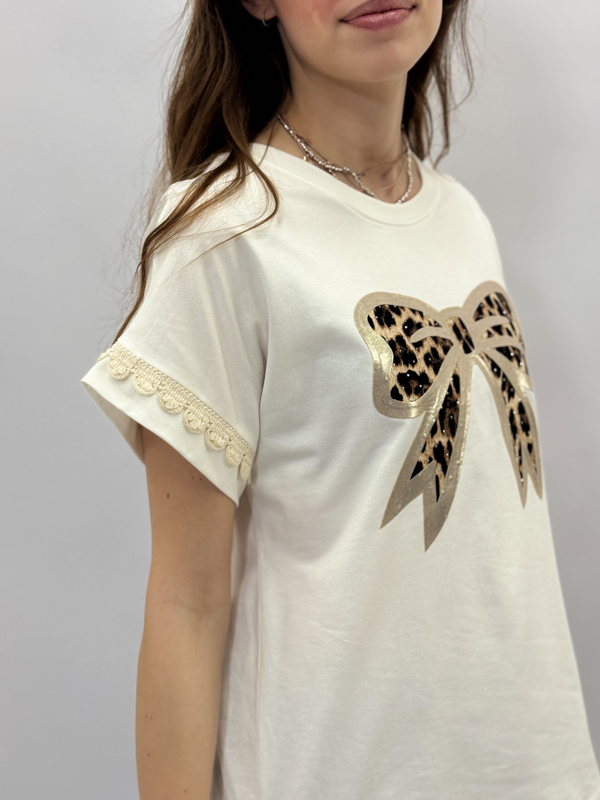 T-shirt con stampa fiocco leopardato