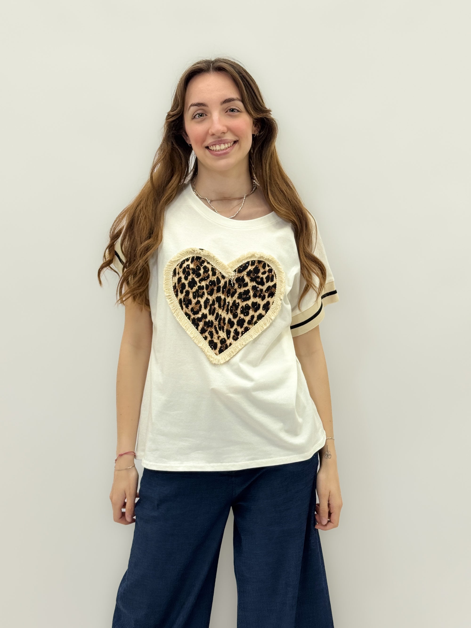 T-shirt con cuore leopardato