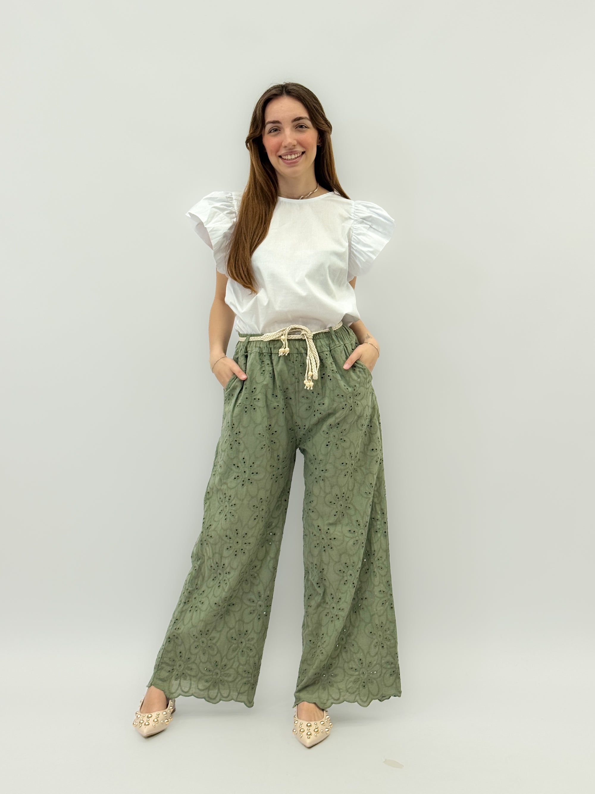 Pantaloni in cotone con cintura