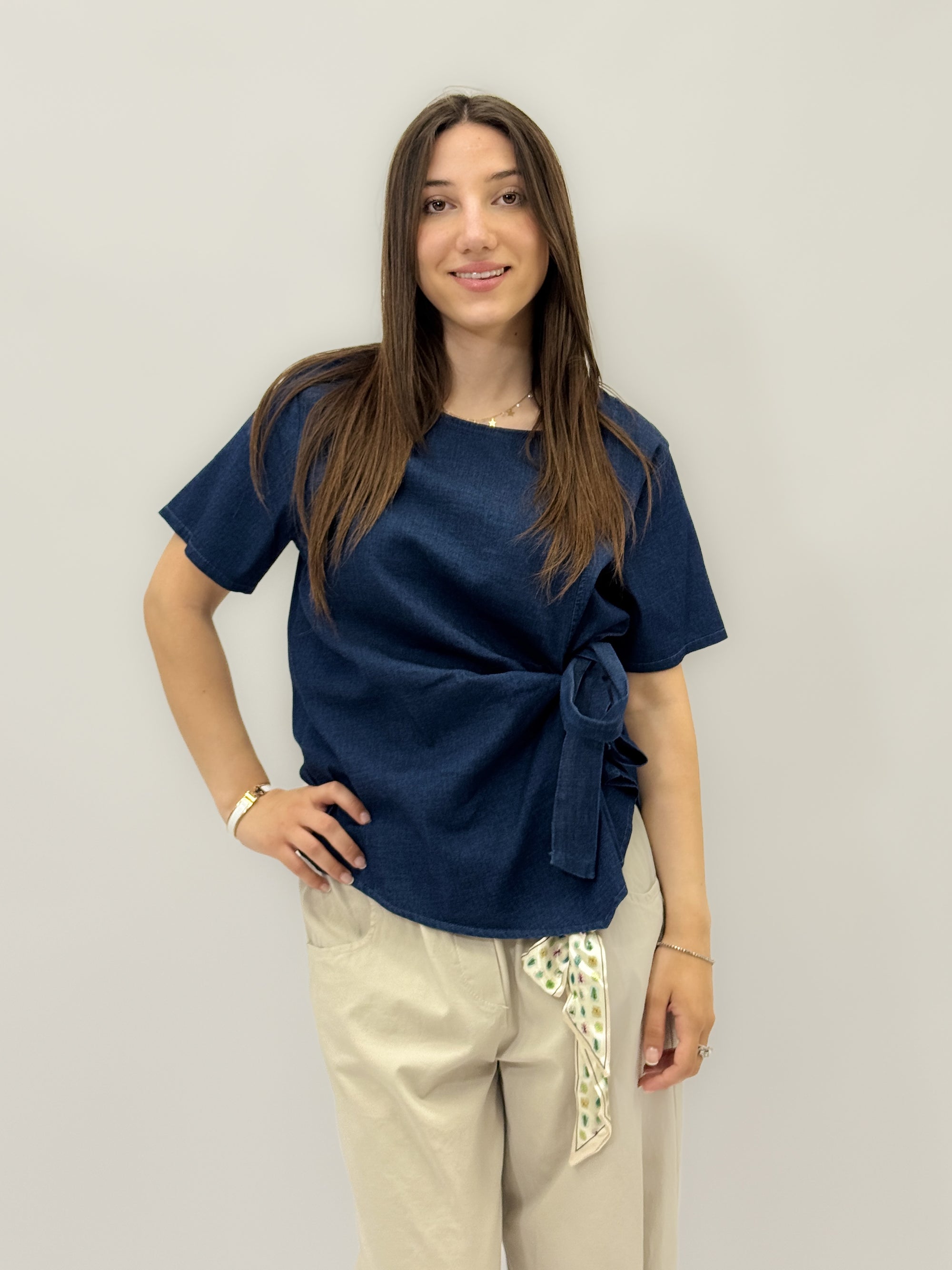 Maglia in denim con dettaglio fiocco