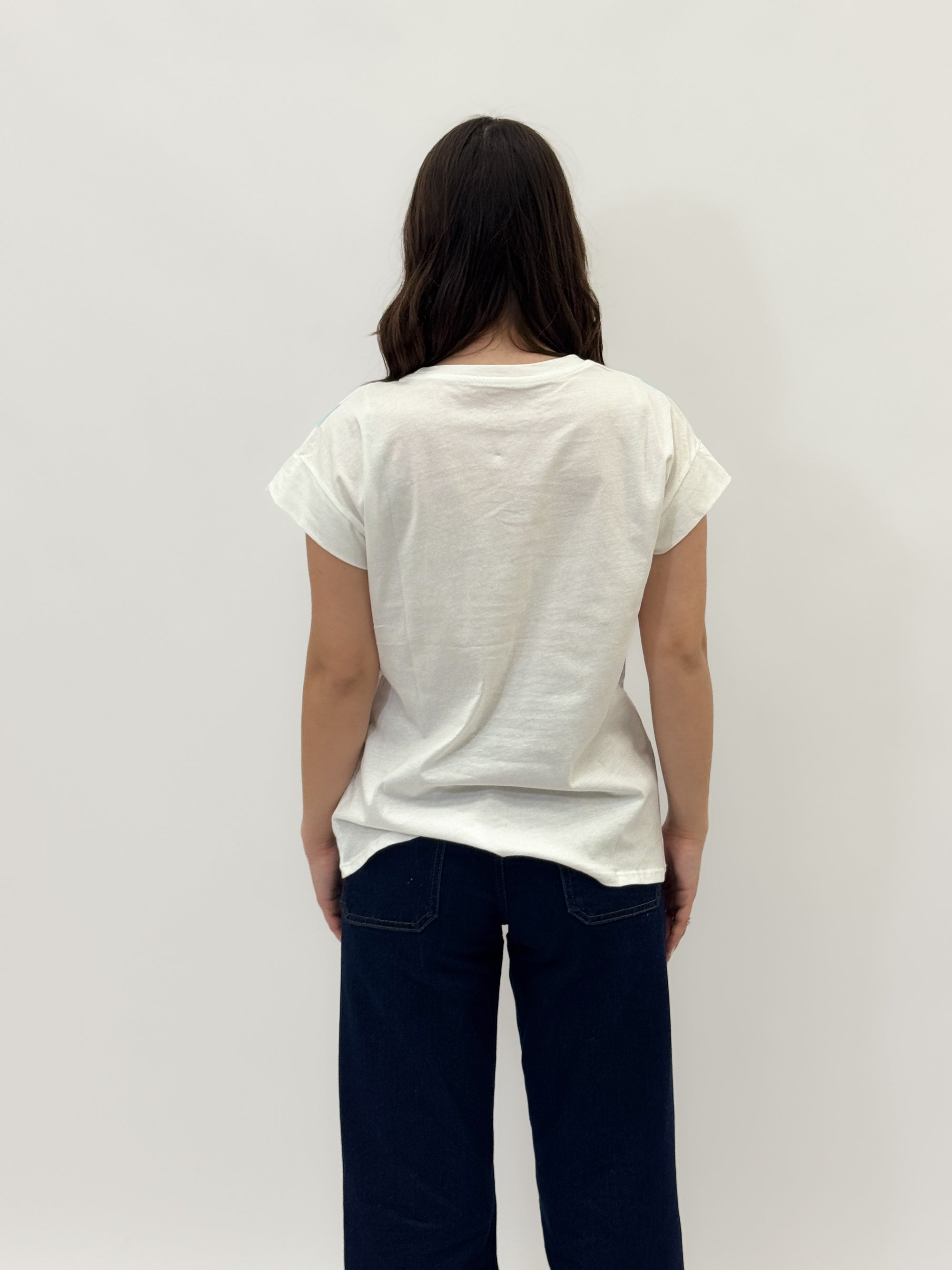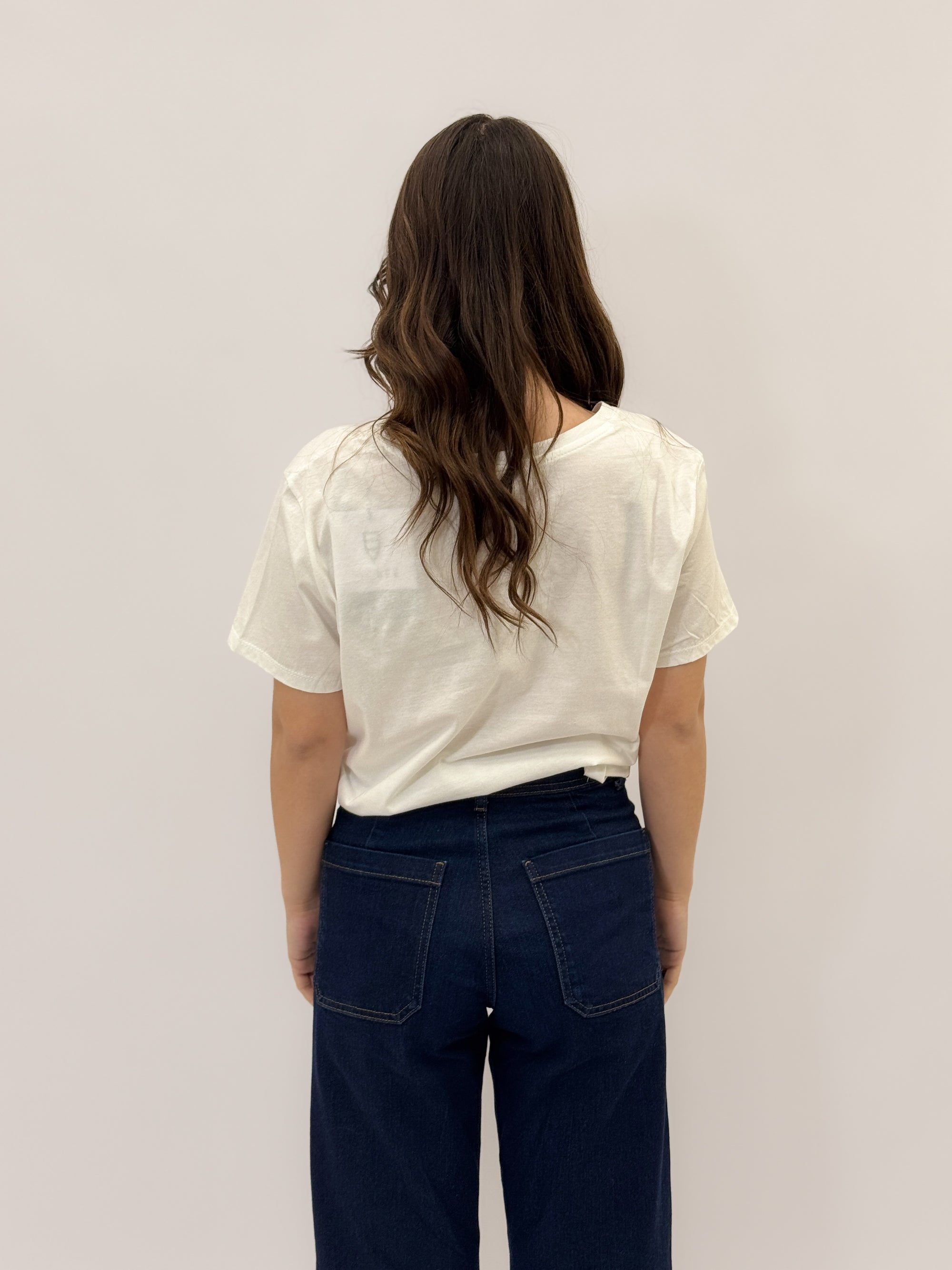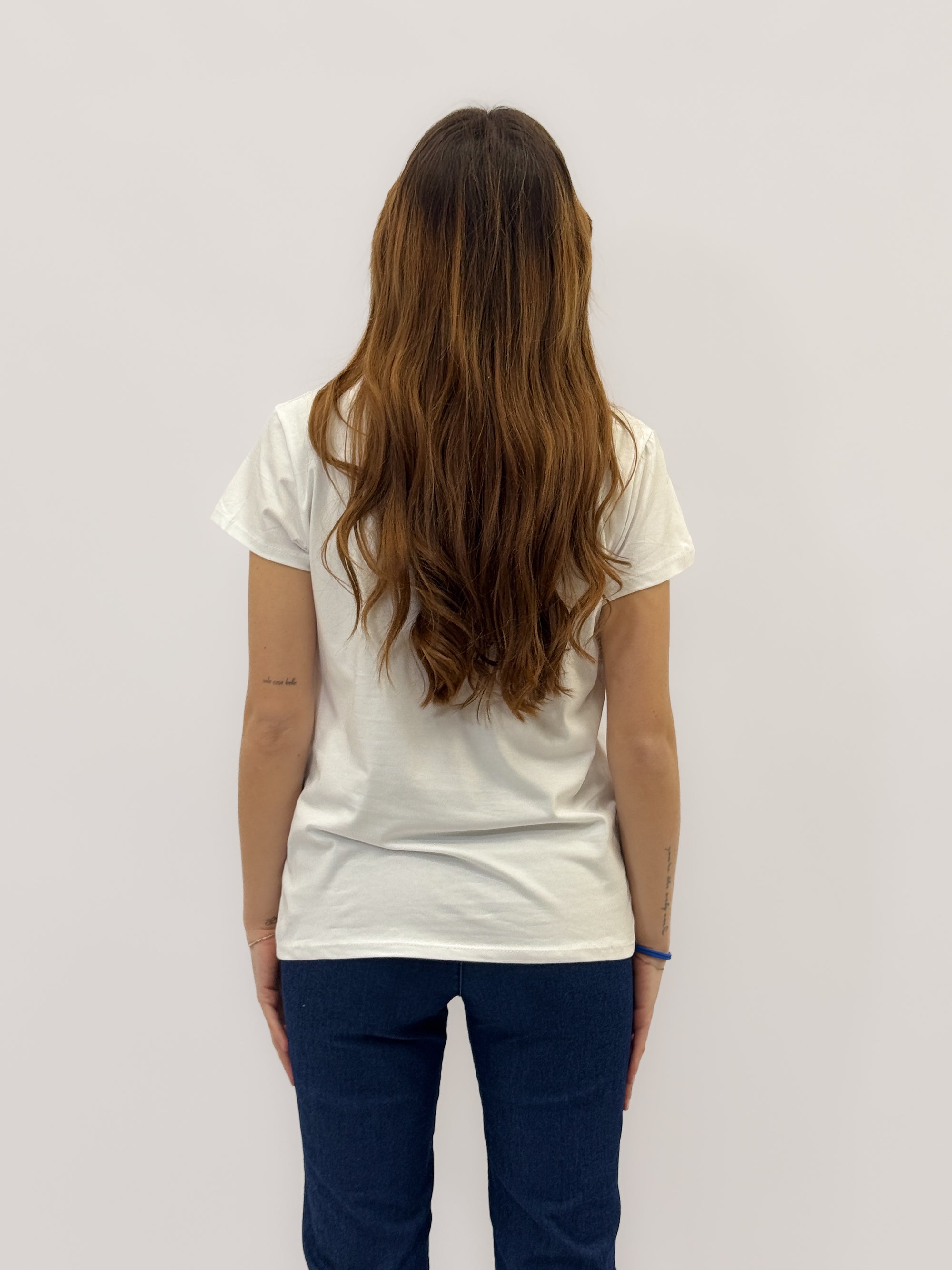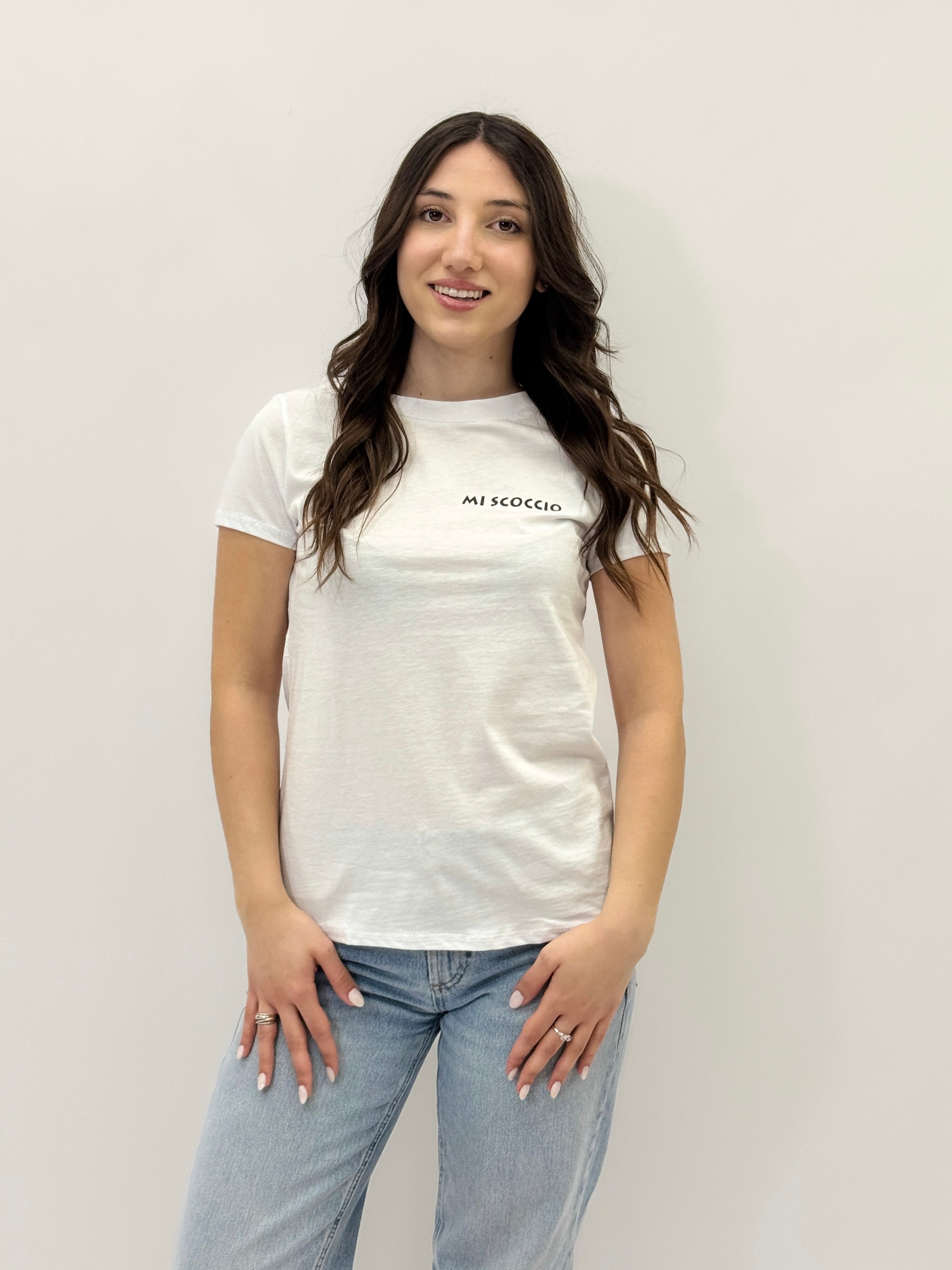 T-shirt in cotone con scritto "Penso tanto parlo poco"
