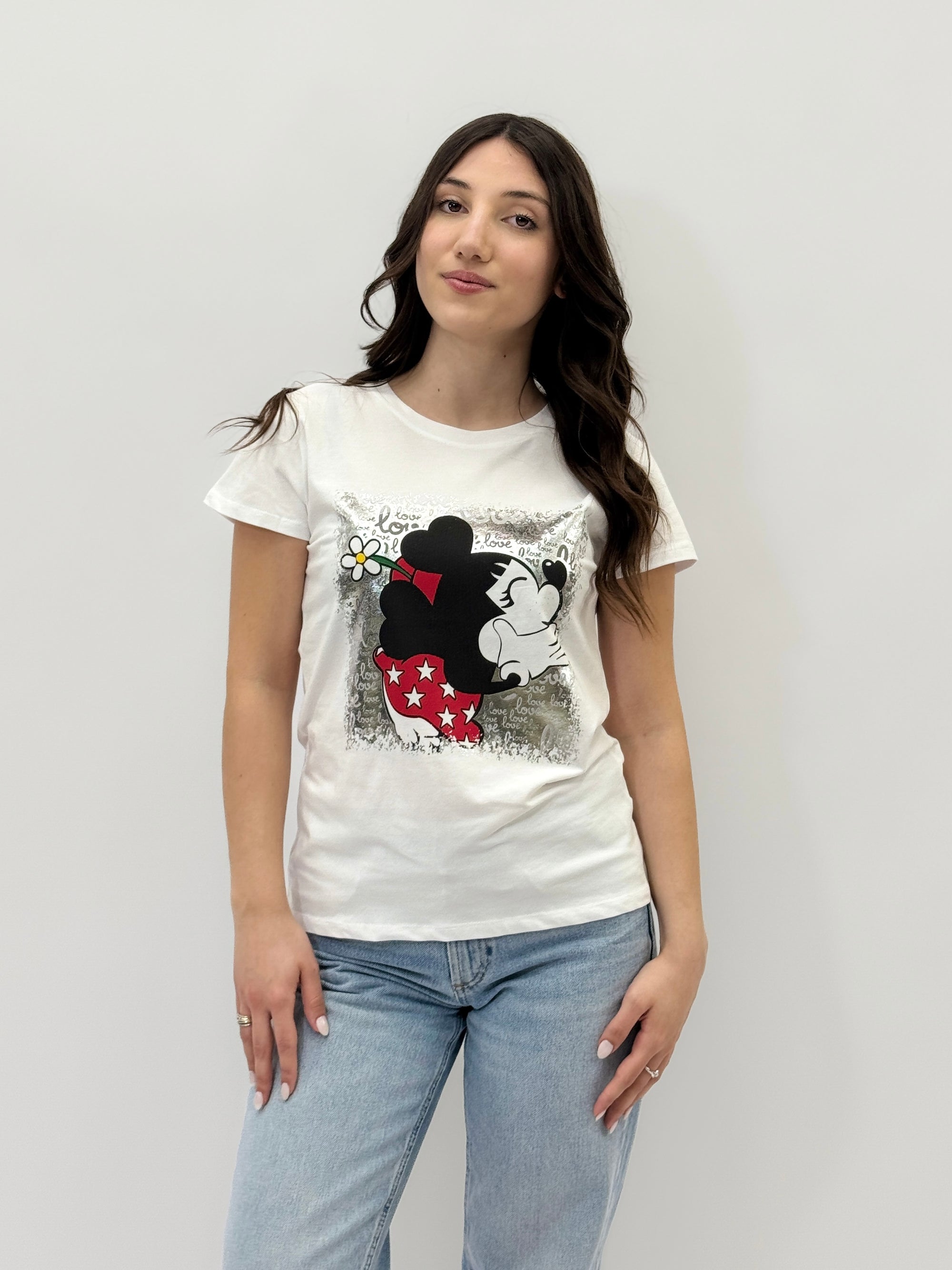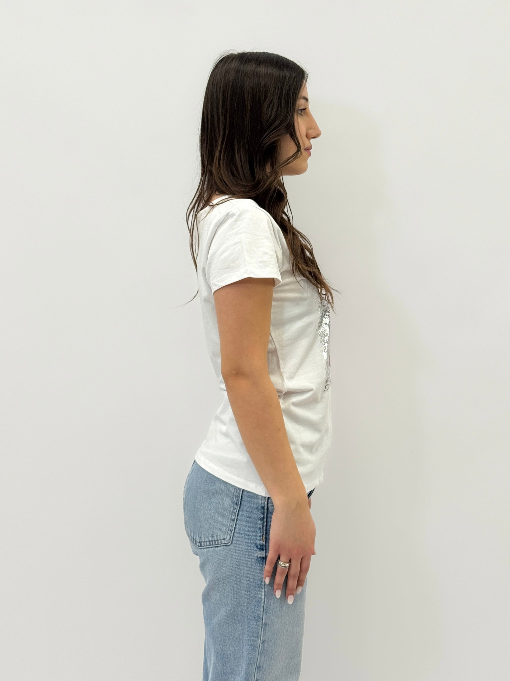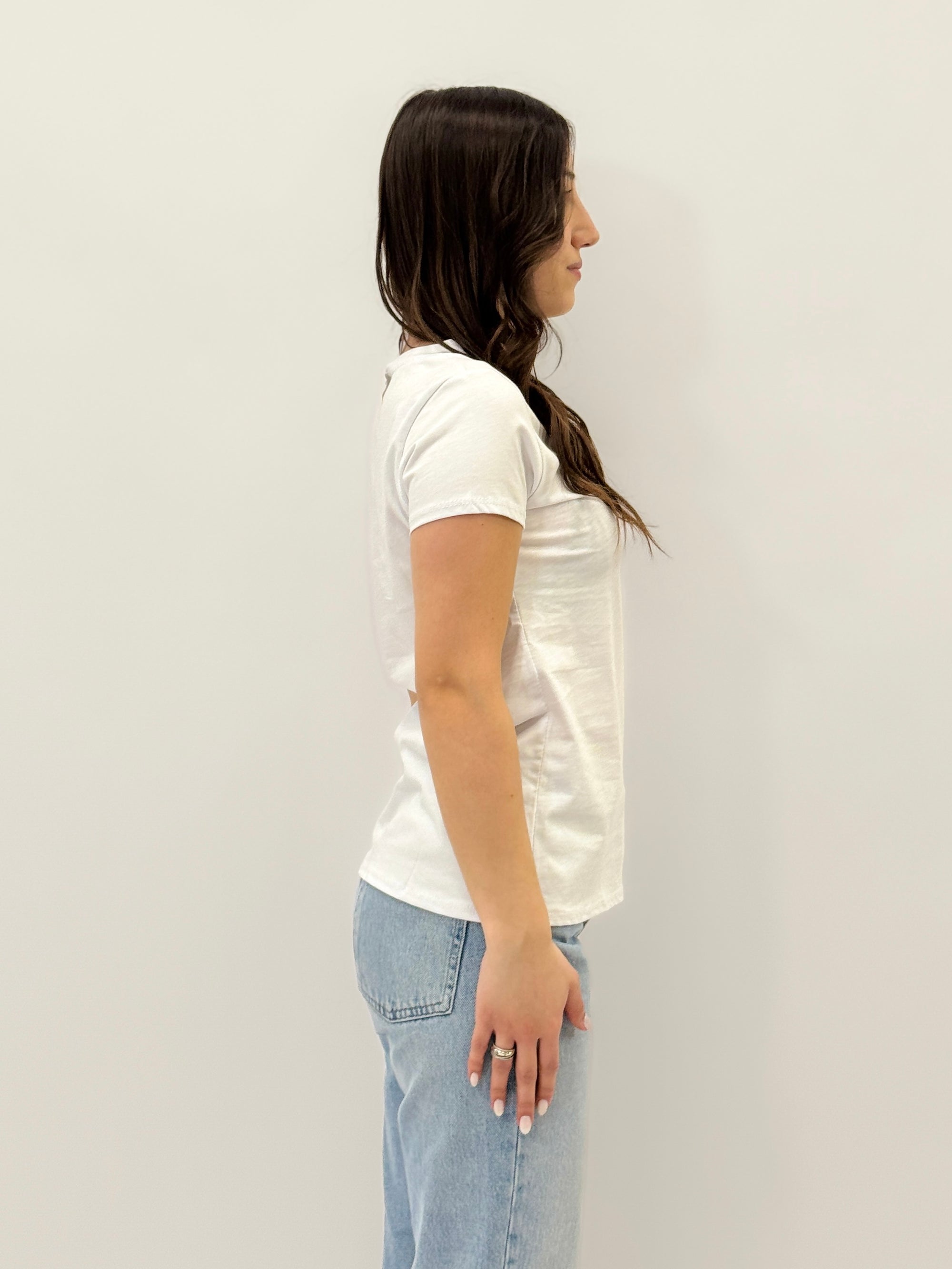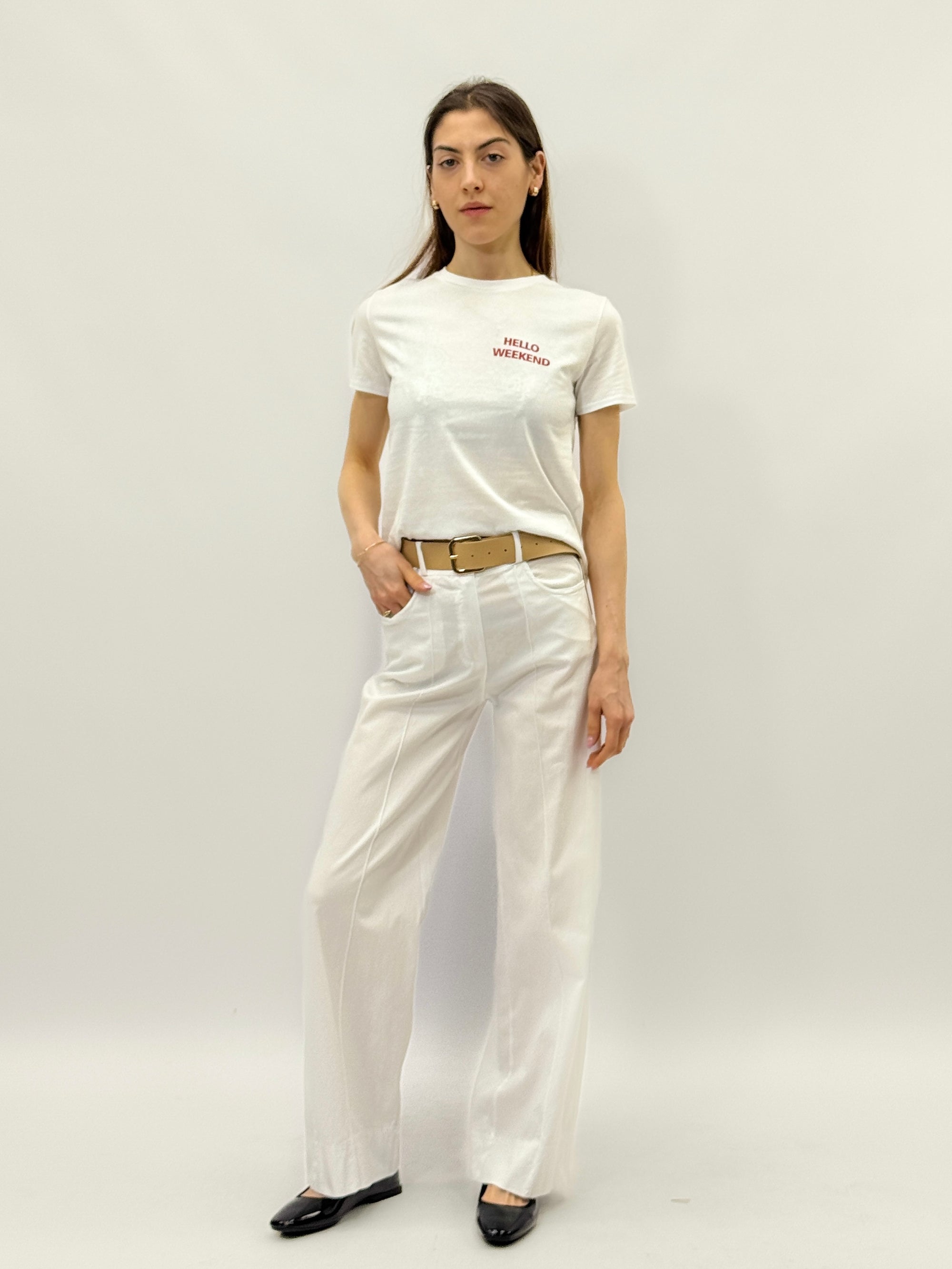 T-shirt in cotone con scritto "Penso tanto parlo poco"