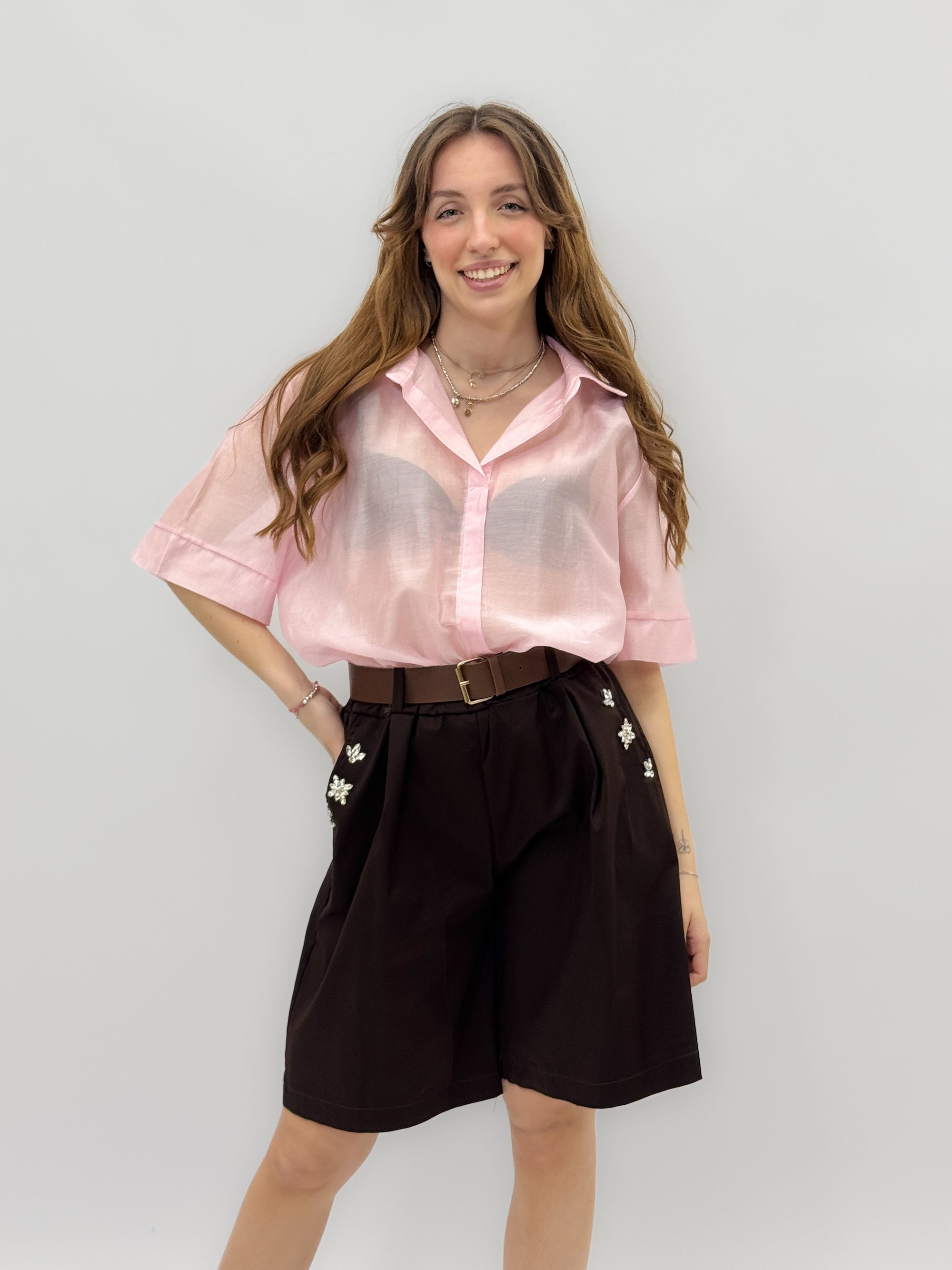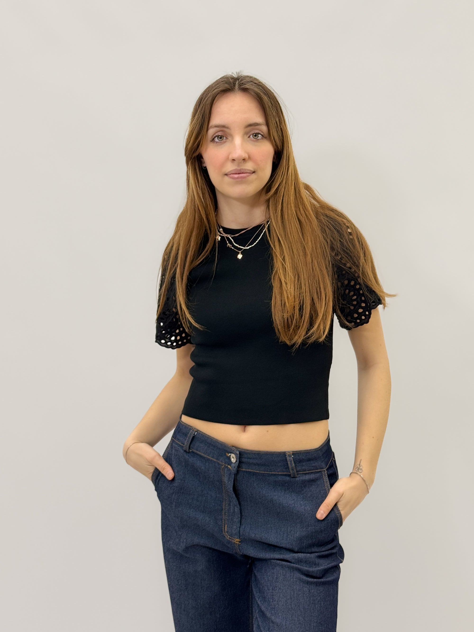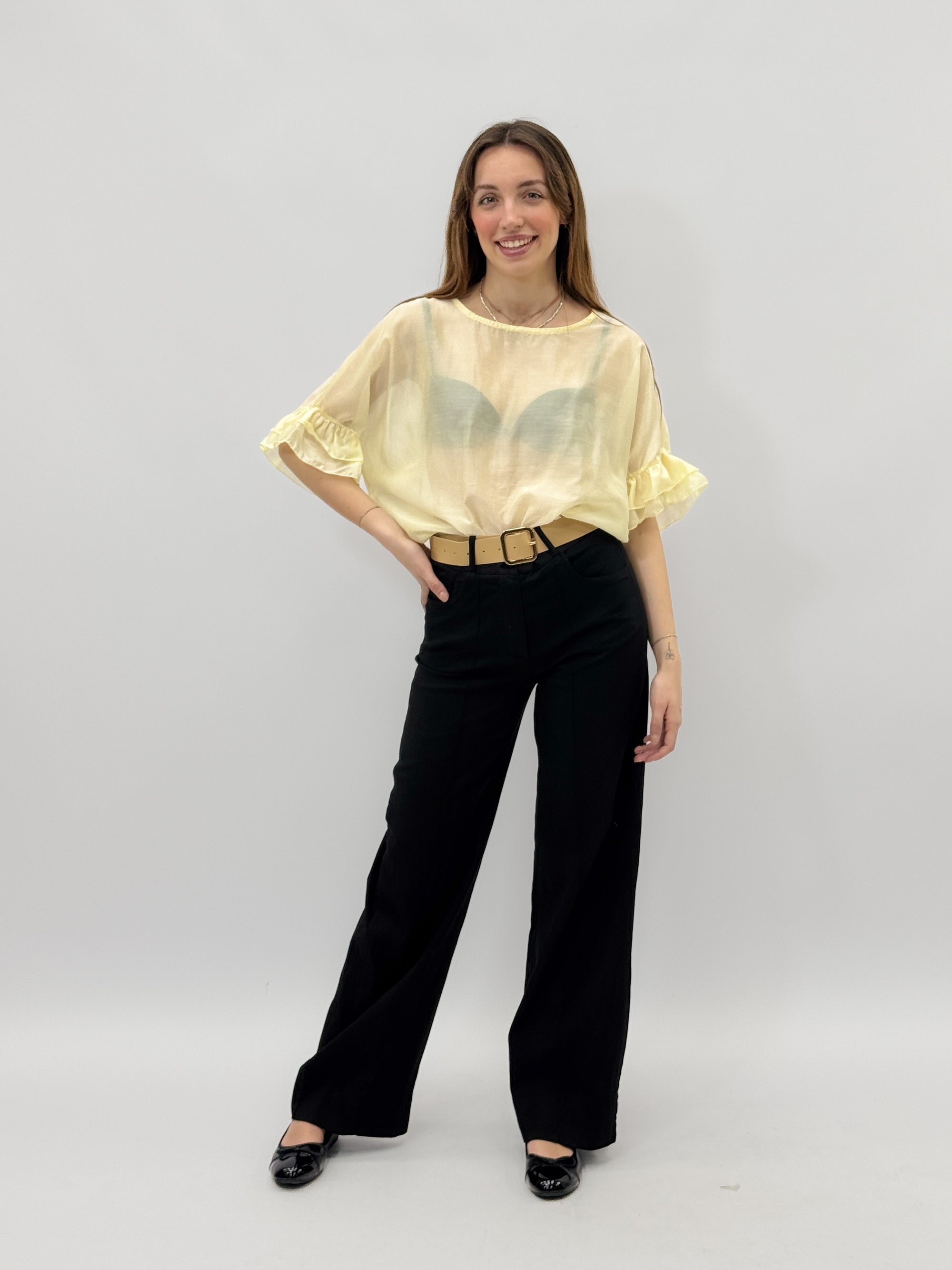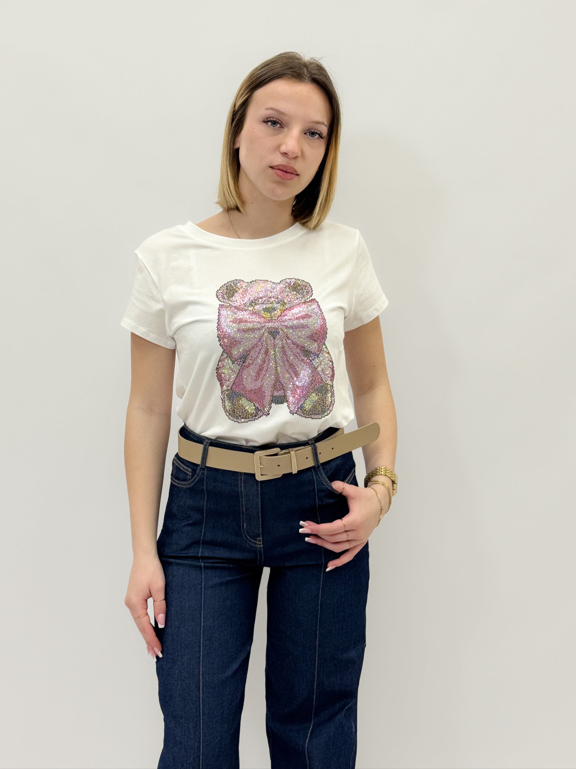 T-shirt in cotone con scritto "Penso tanto parlo poco"