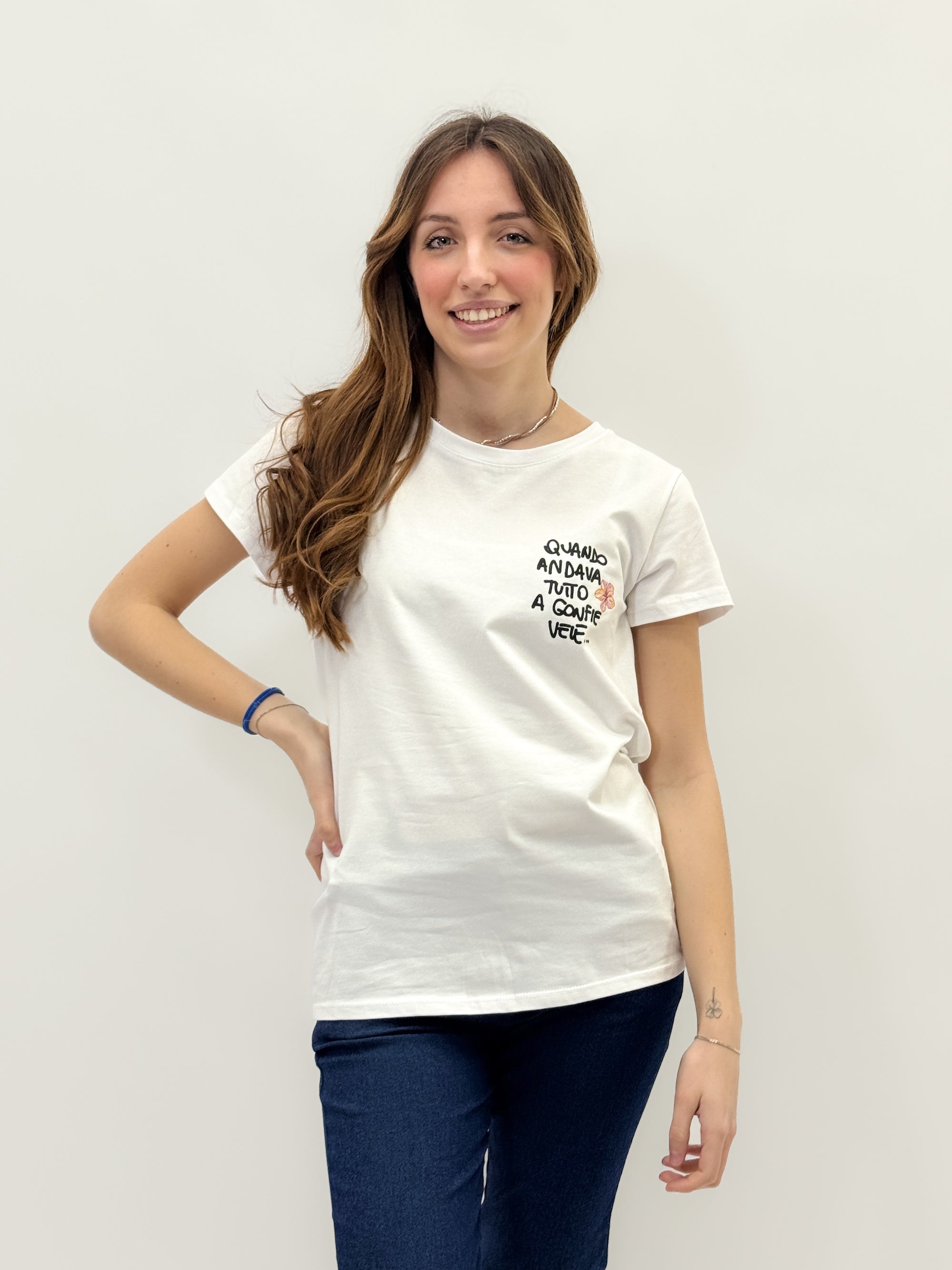 T-shirt con scritta "Quando tutto andava a gonfie vele"