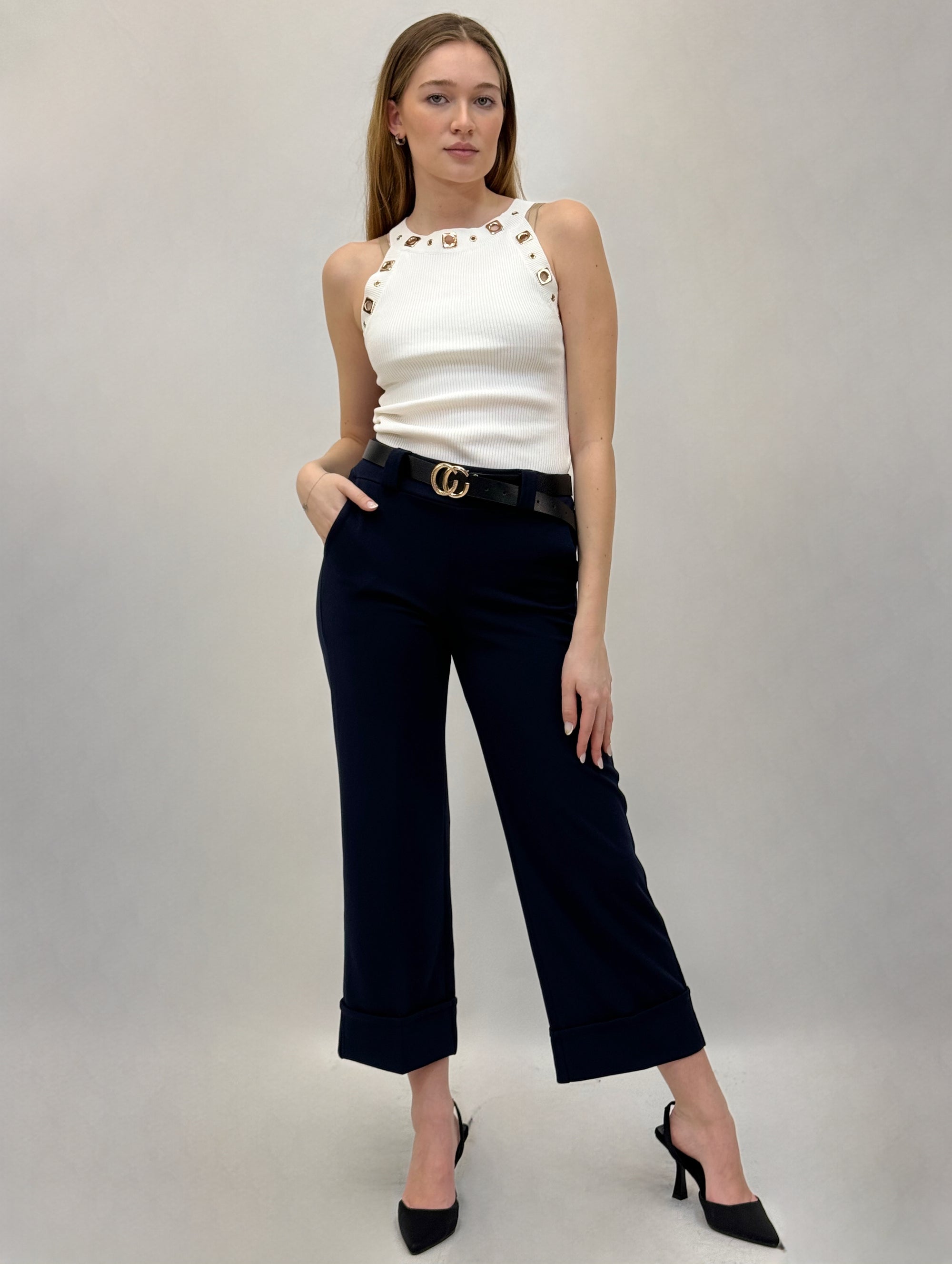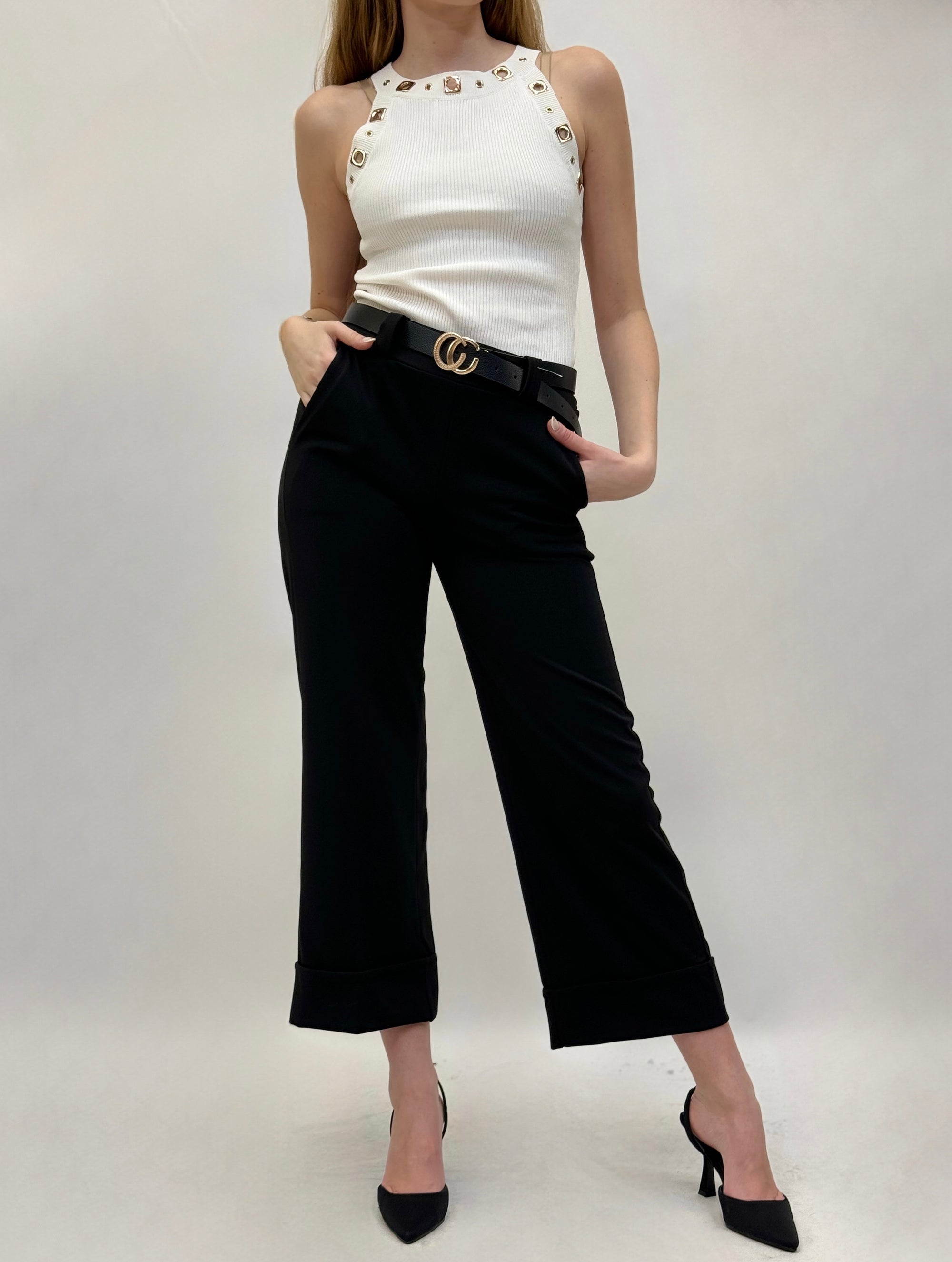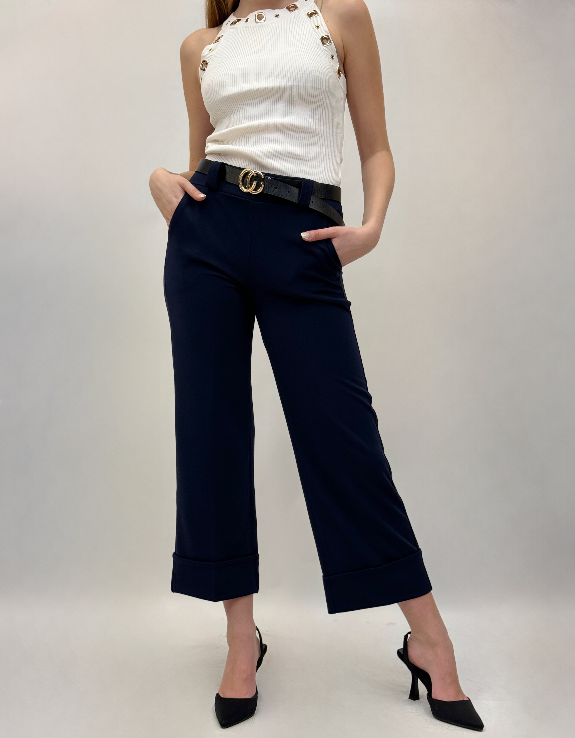 Pantaloni con cintura a gamba larga