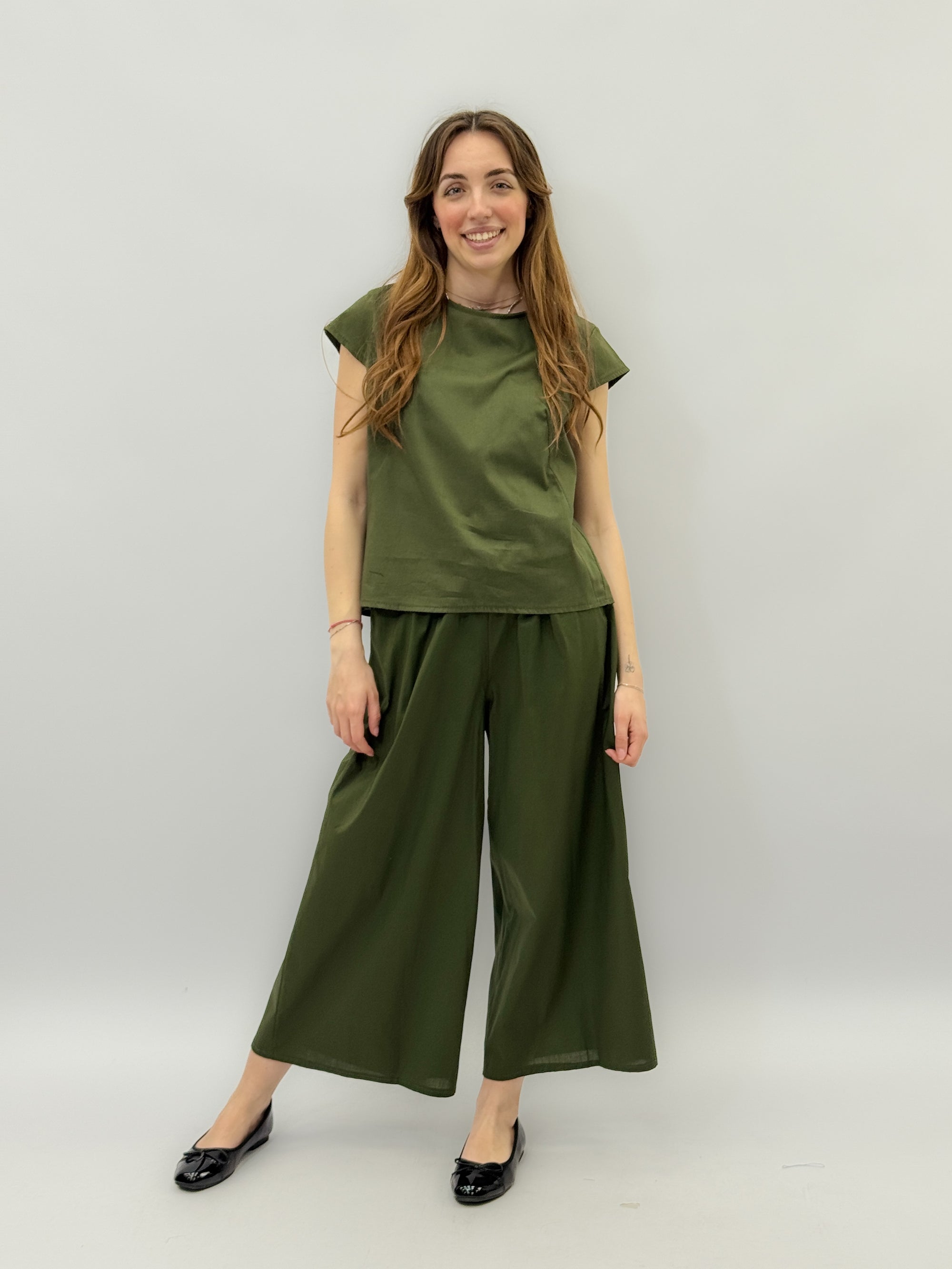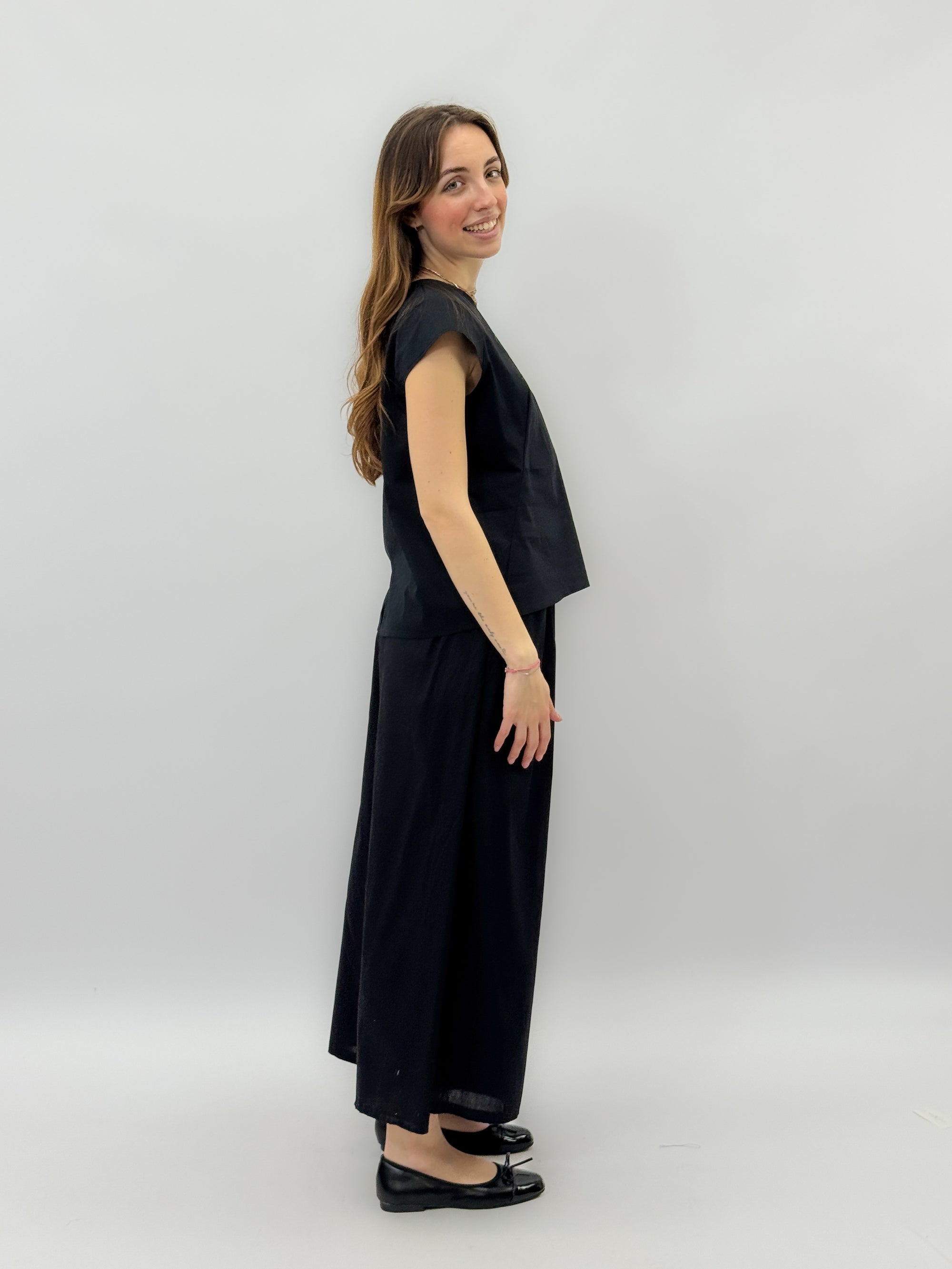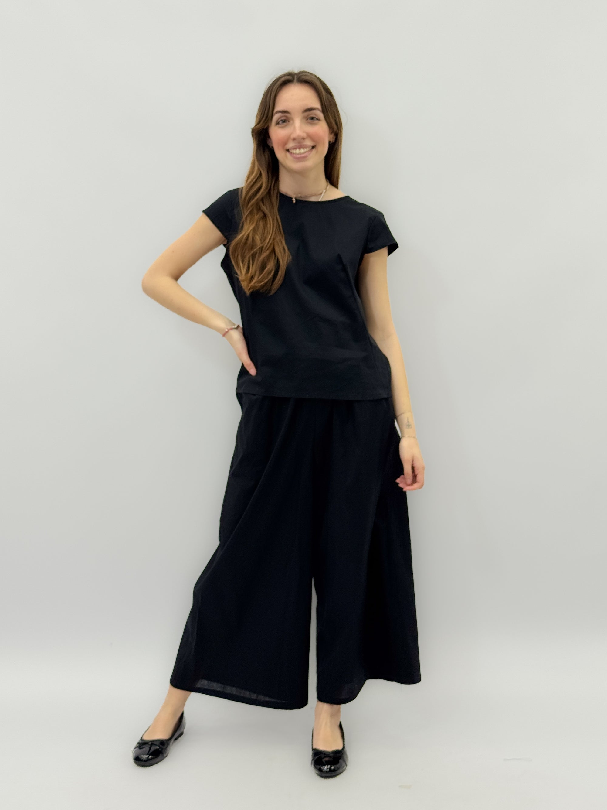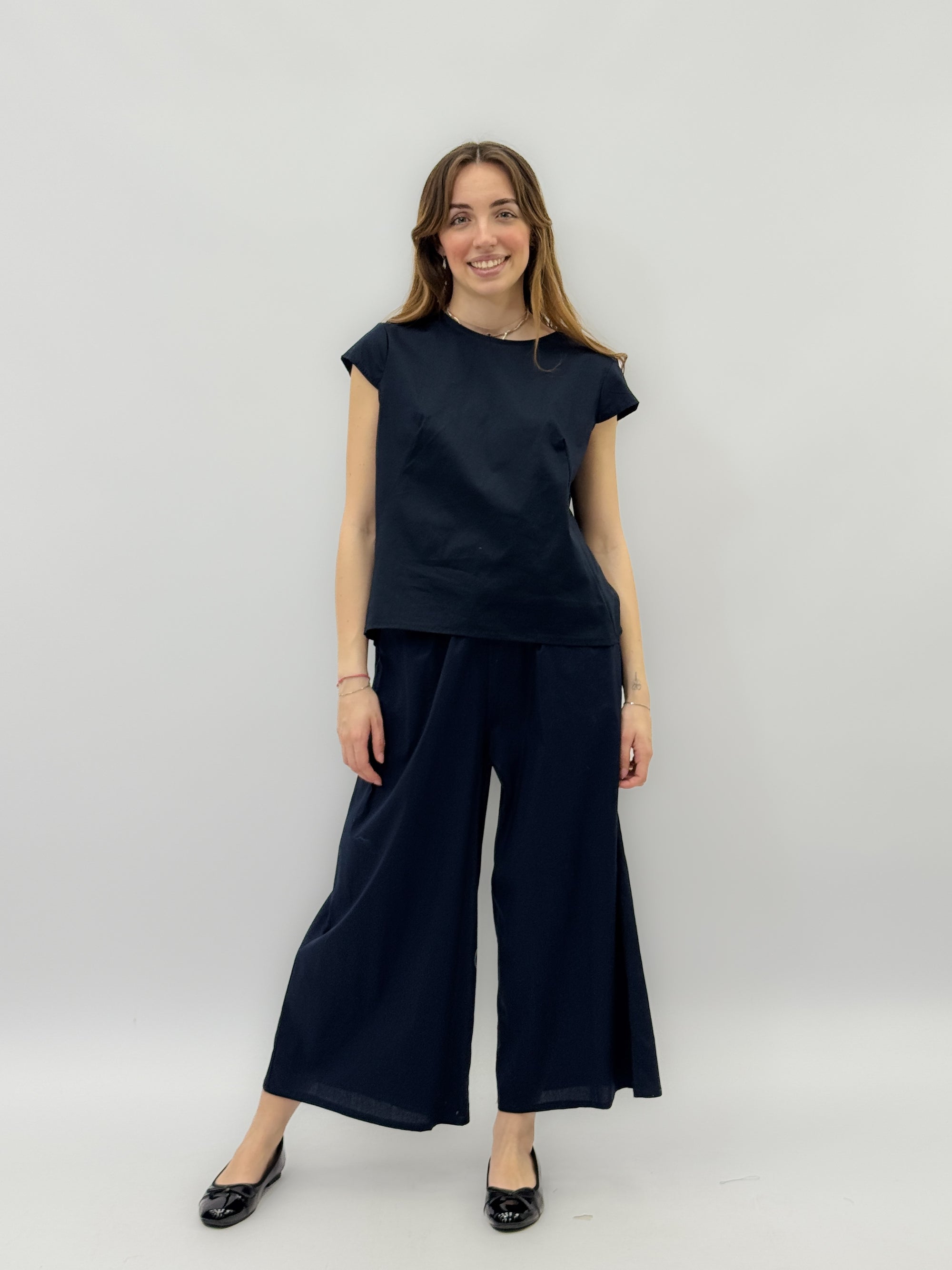 Pantaloni con cintura a gamba larga