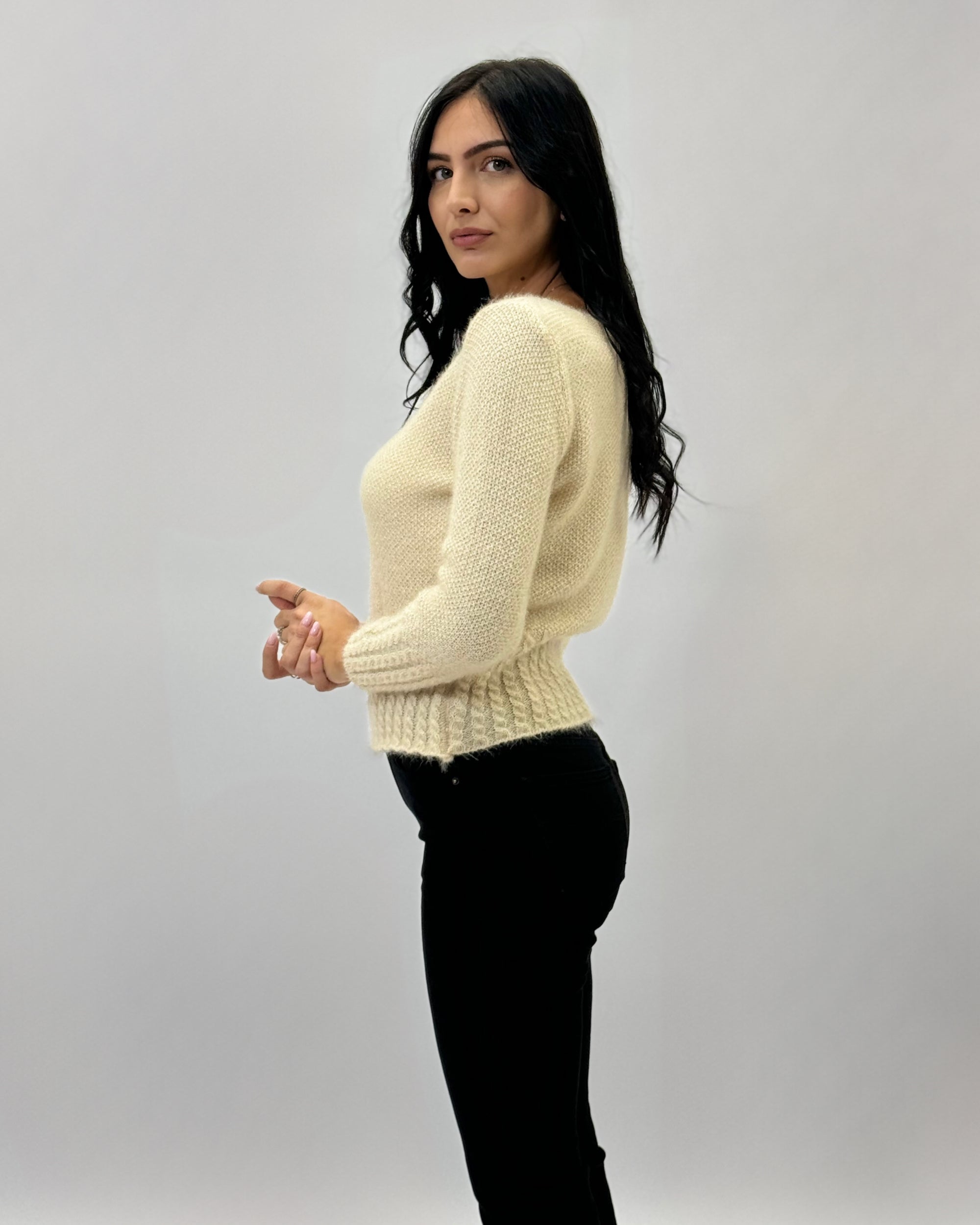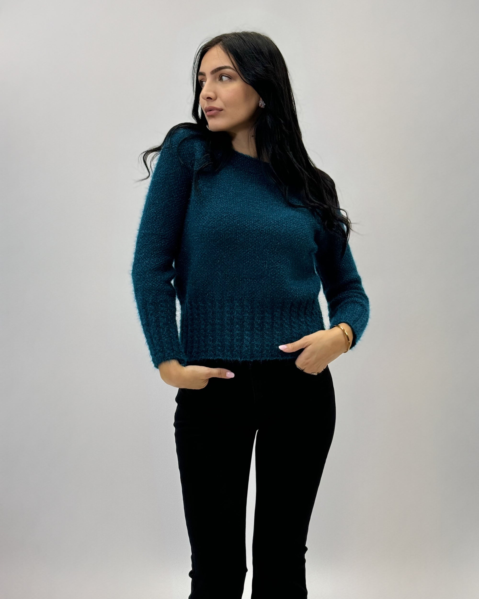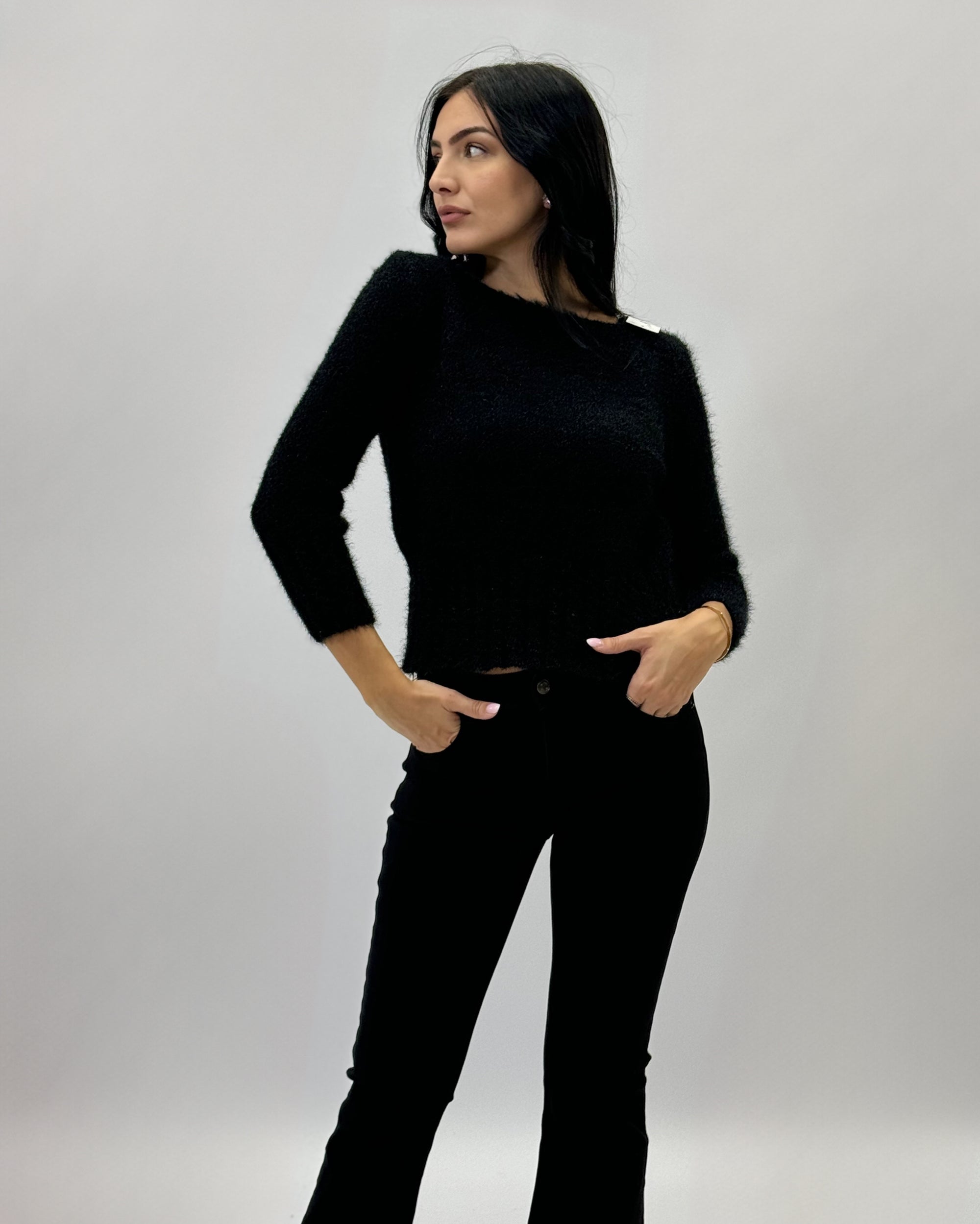Pullover crop effetto peluche