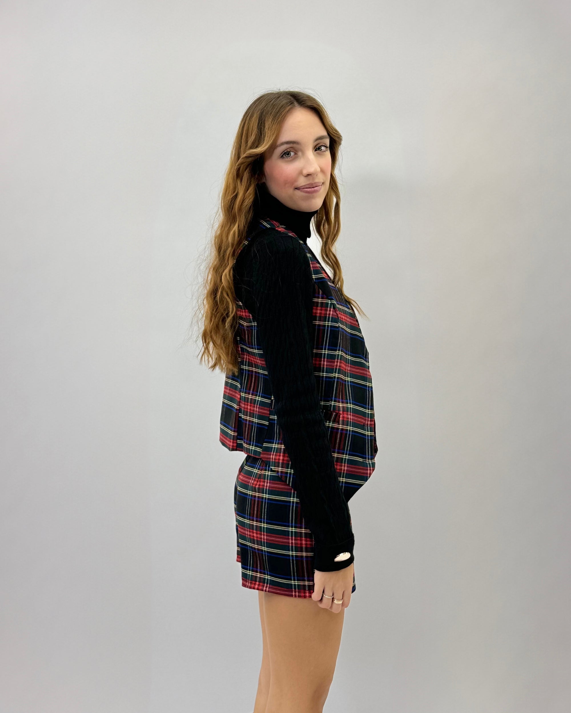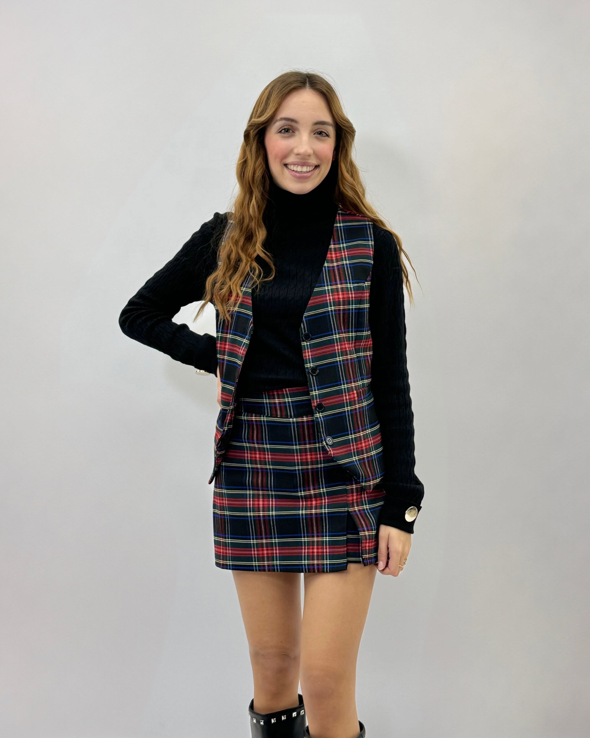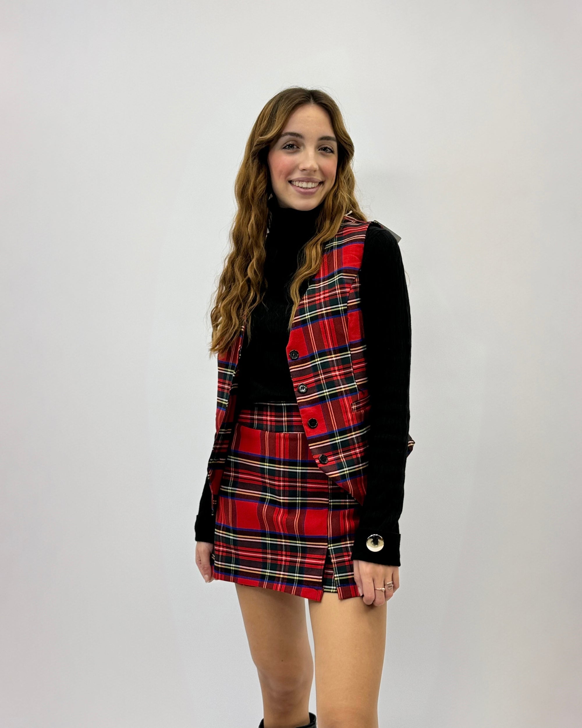 Gilet tartan con bottoni
