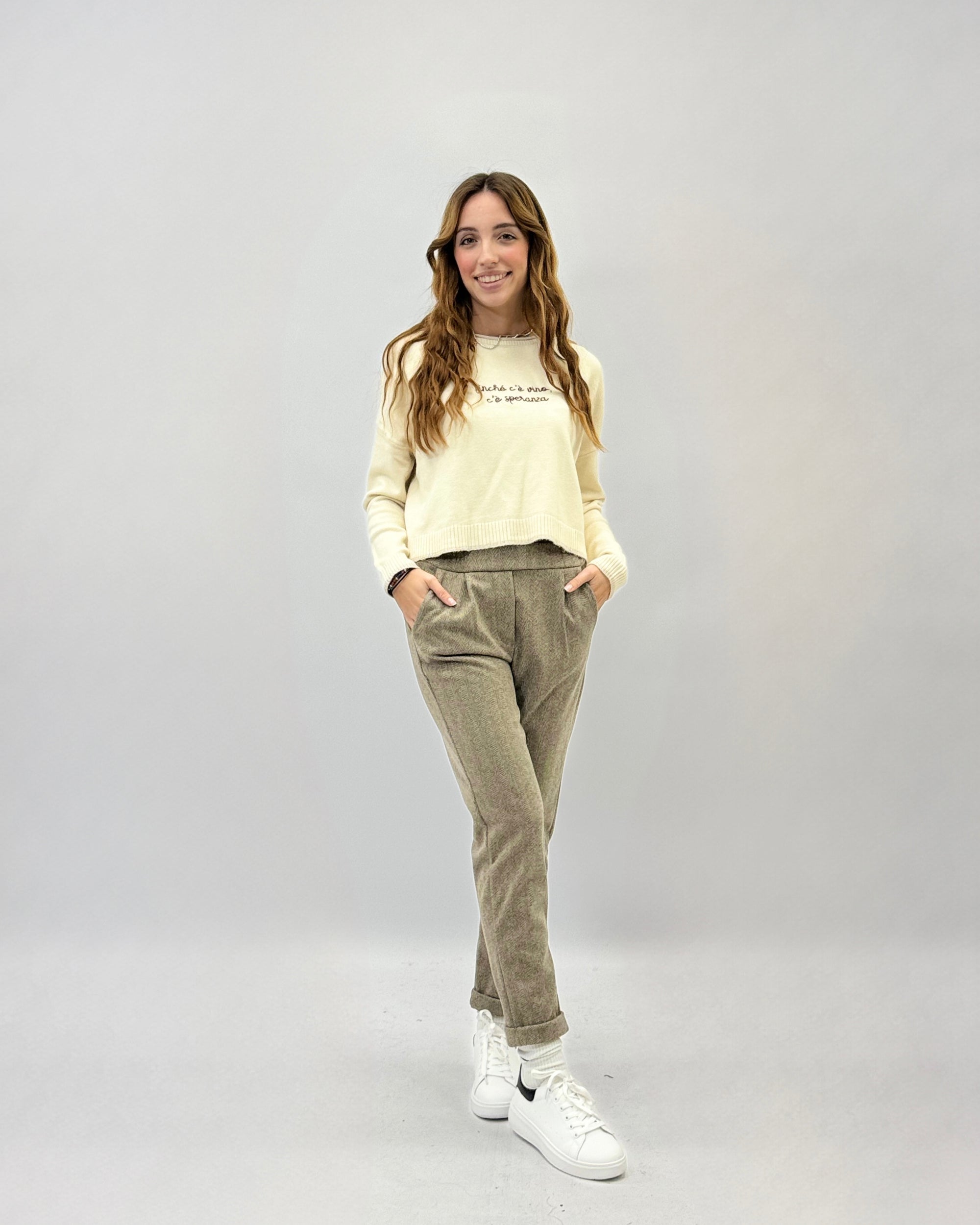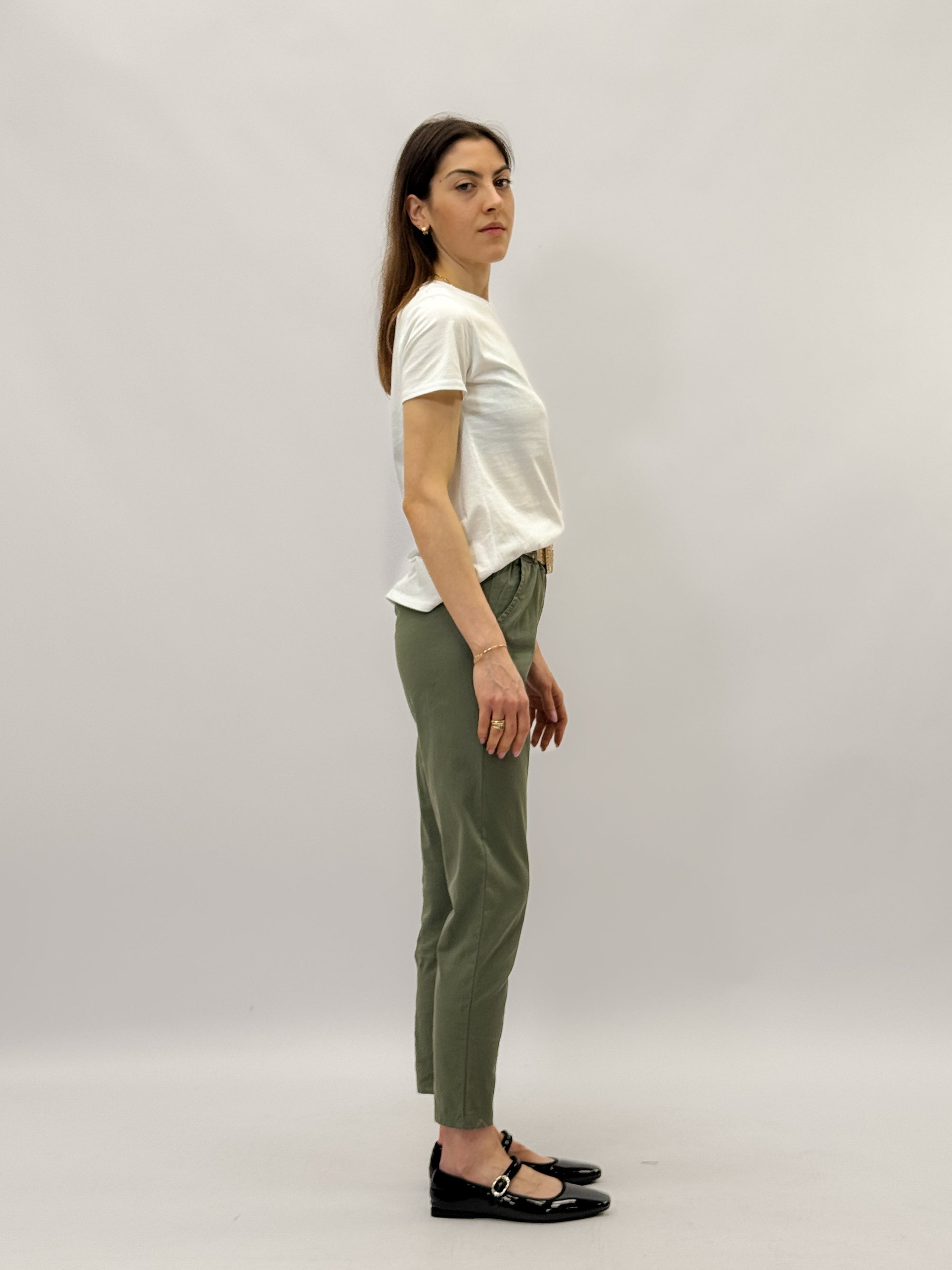 Pantaloni spigati con vita elasticizzata