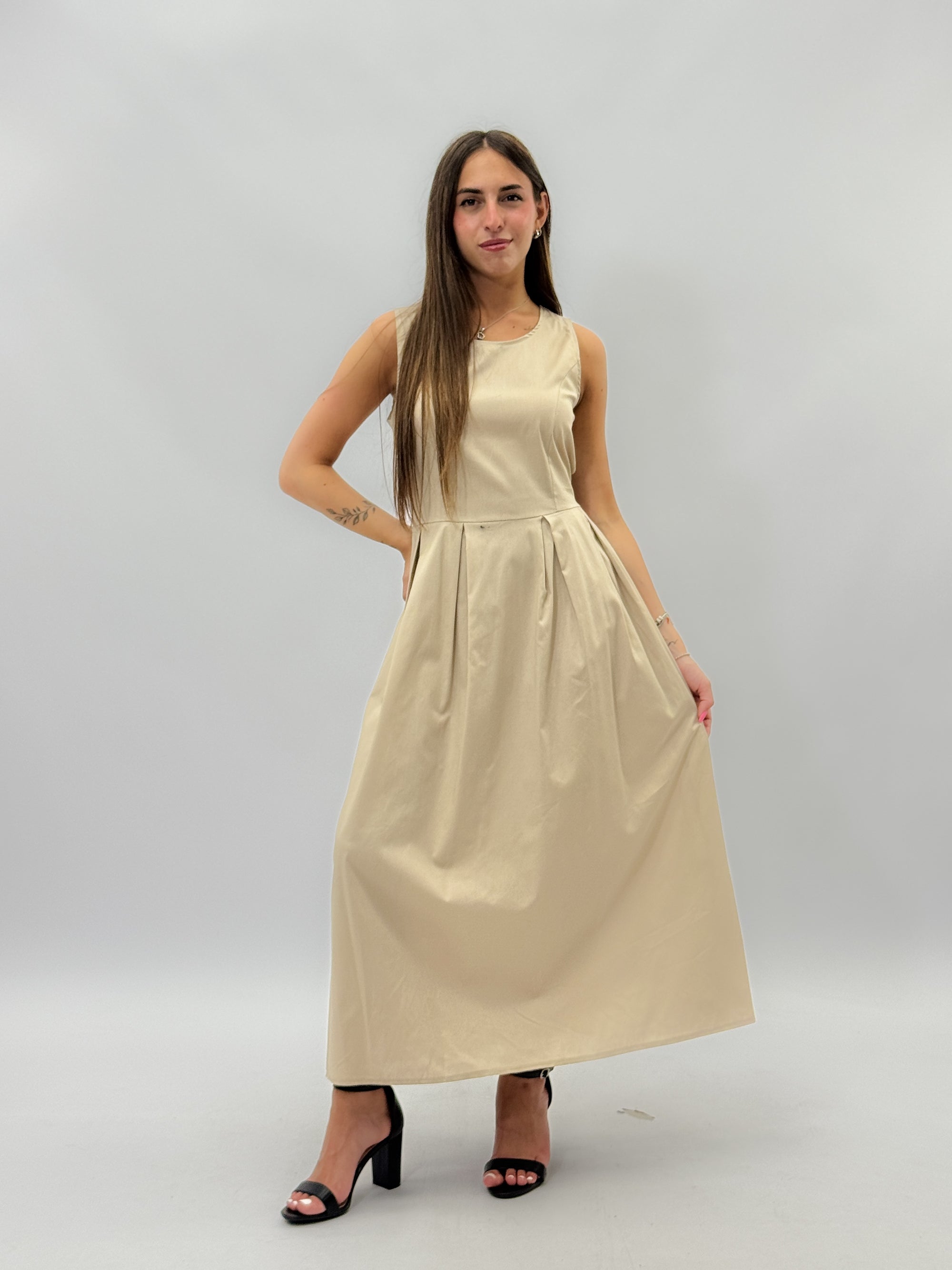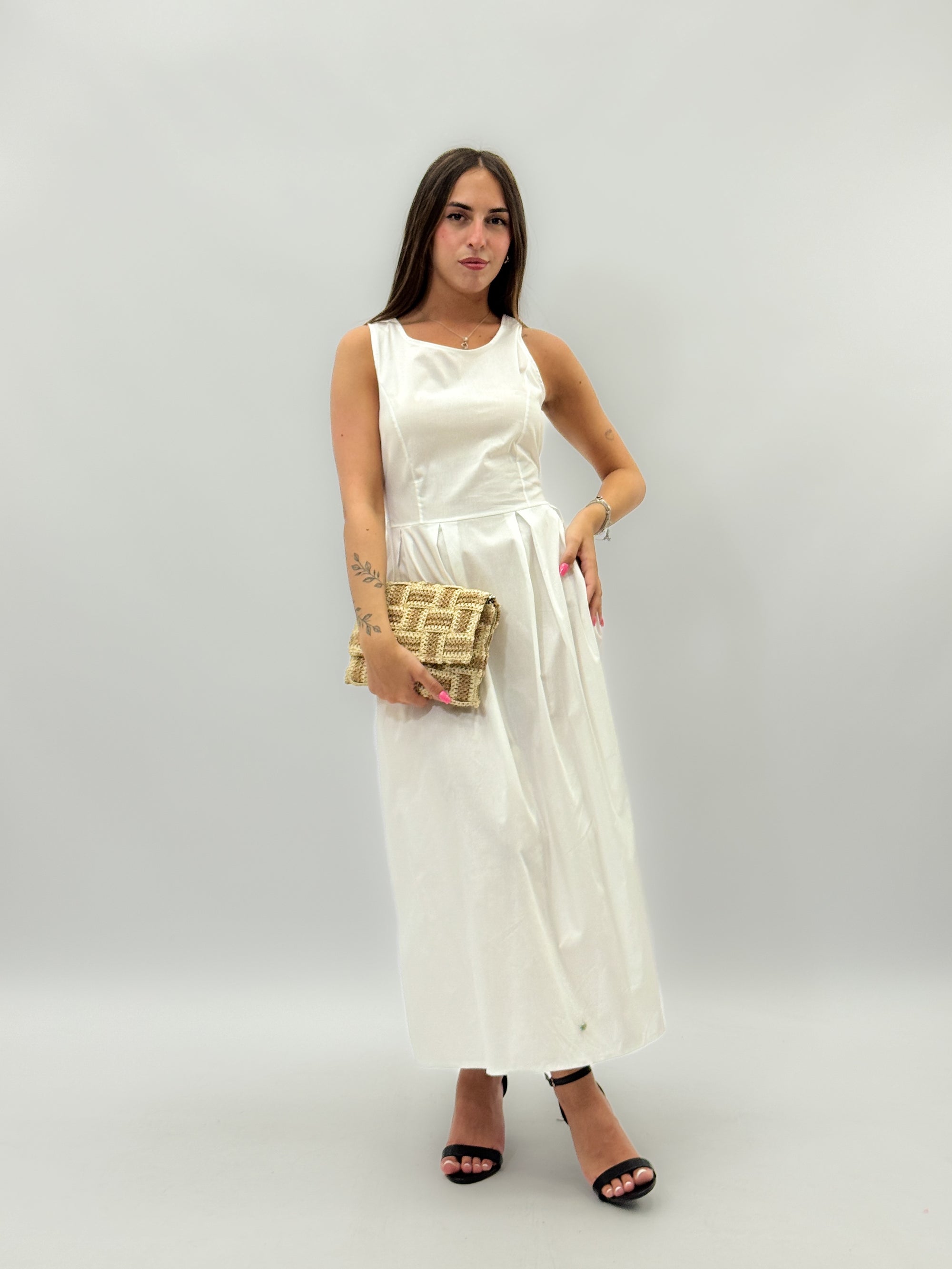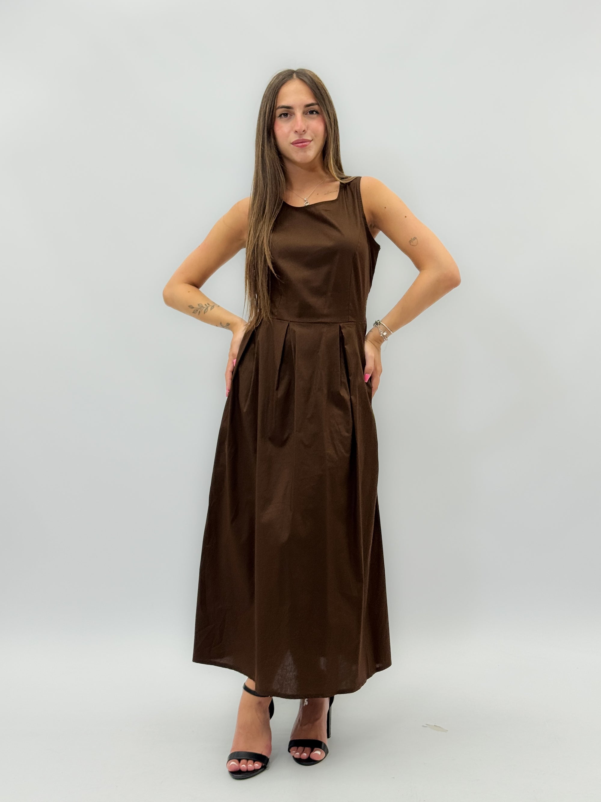 Abito lungo in cotone gonna a campana