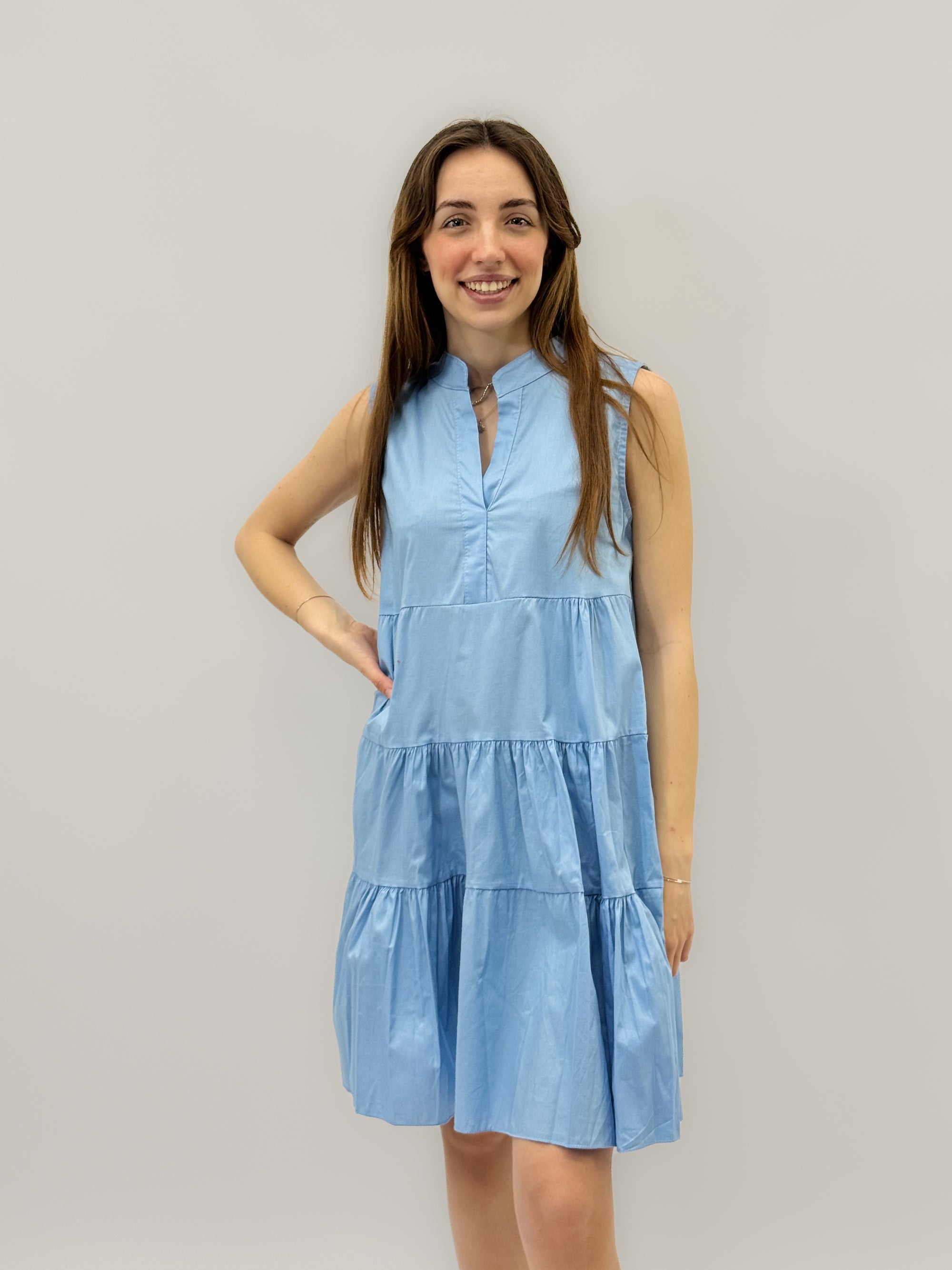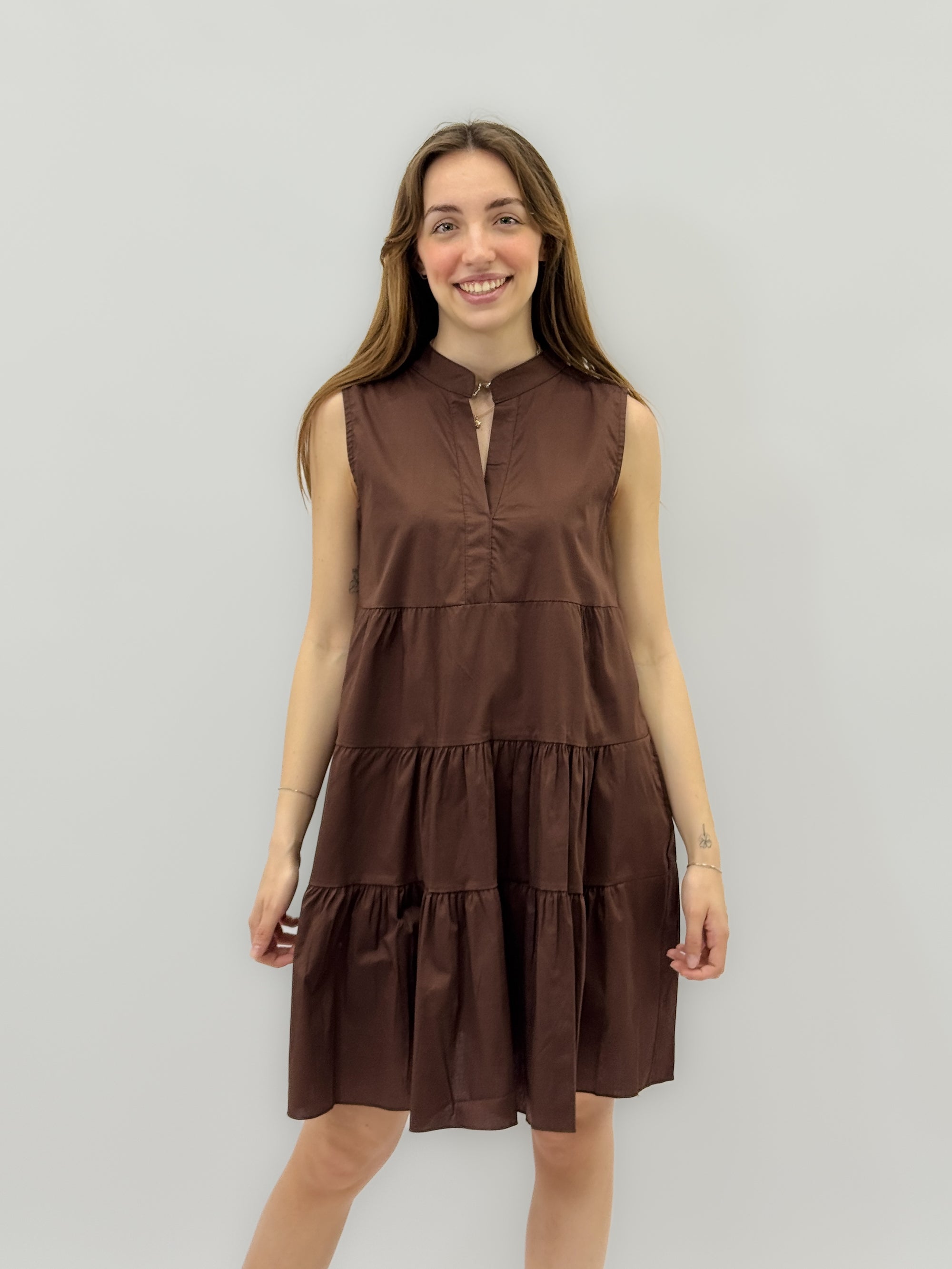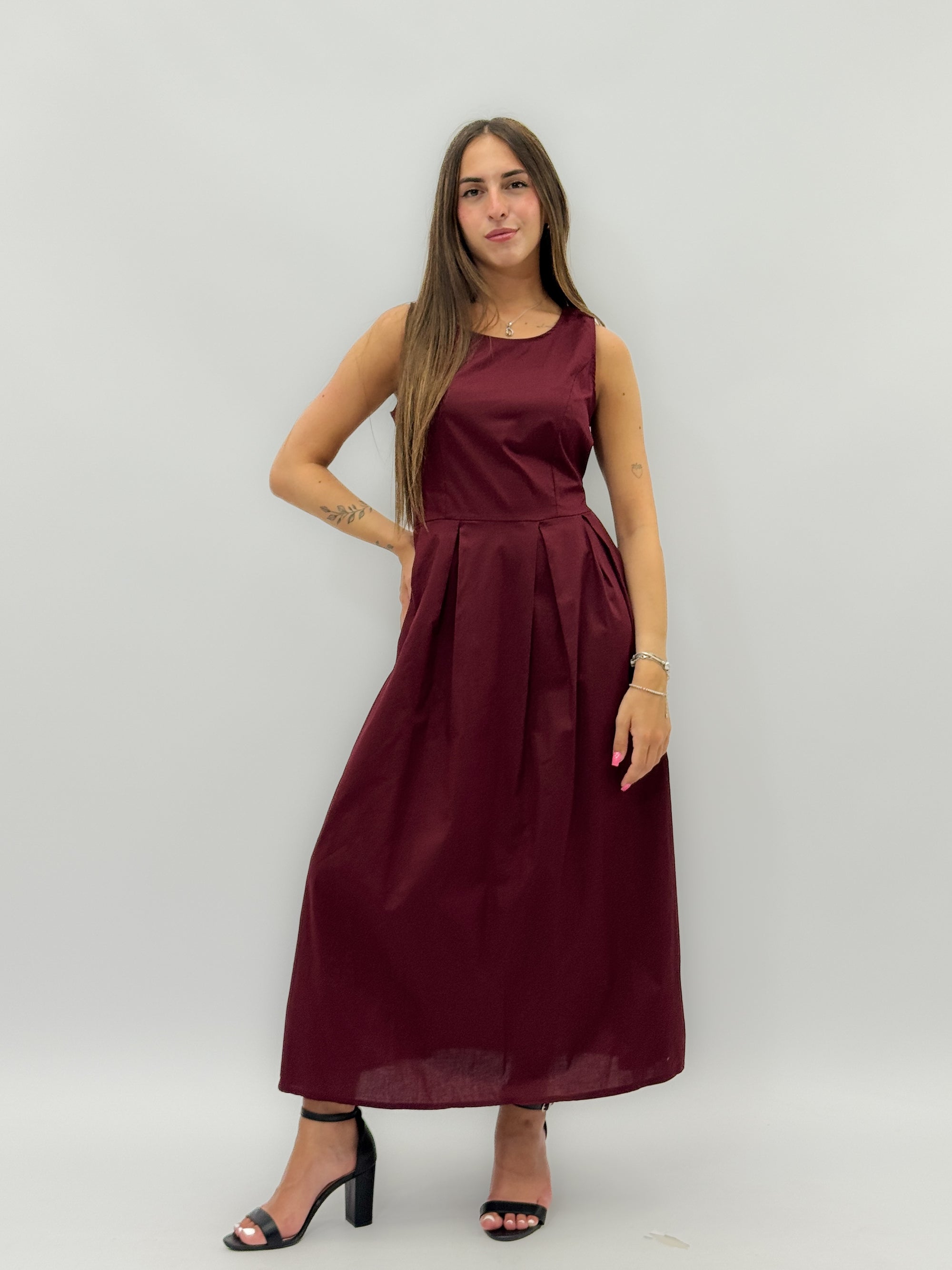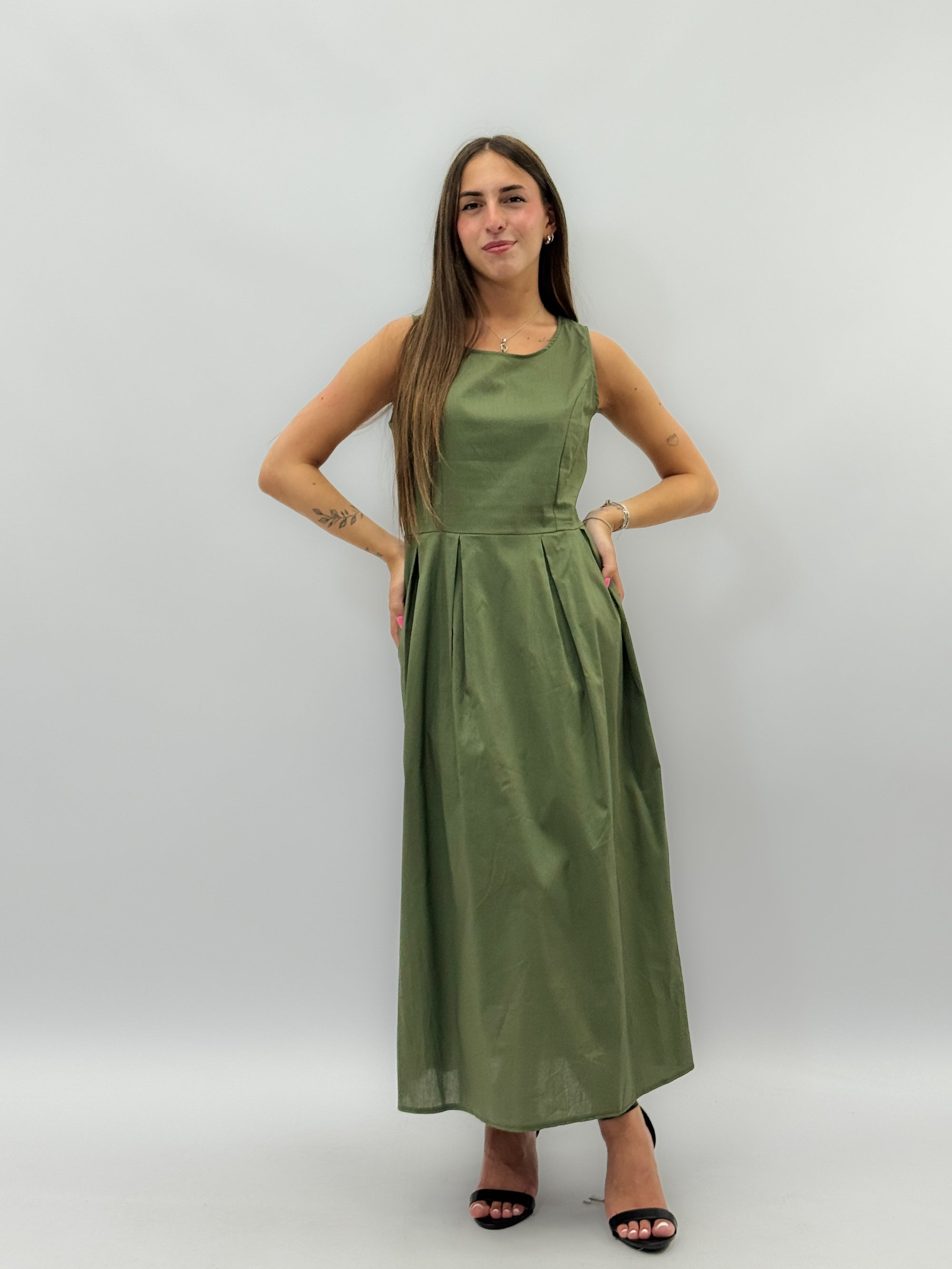 Abito lungo in cotone gonna a campana
