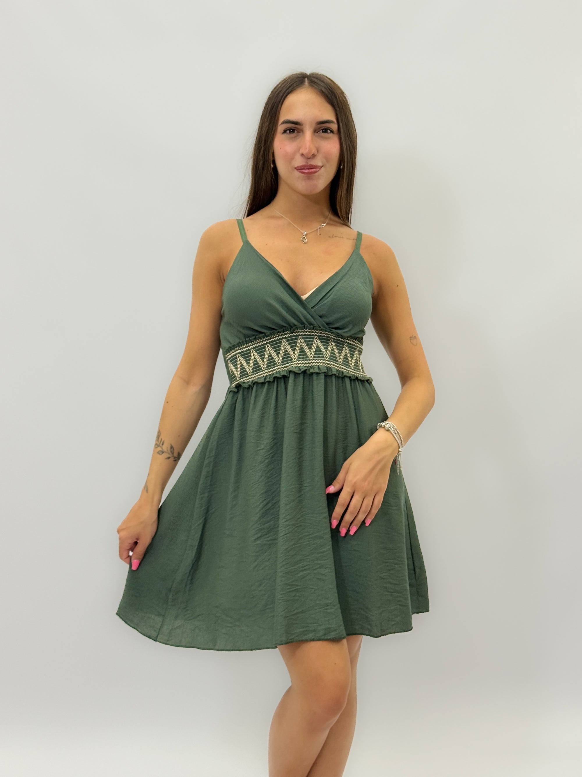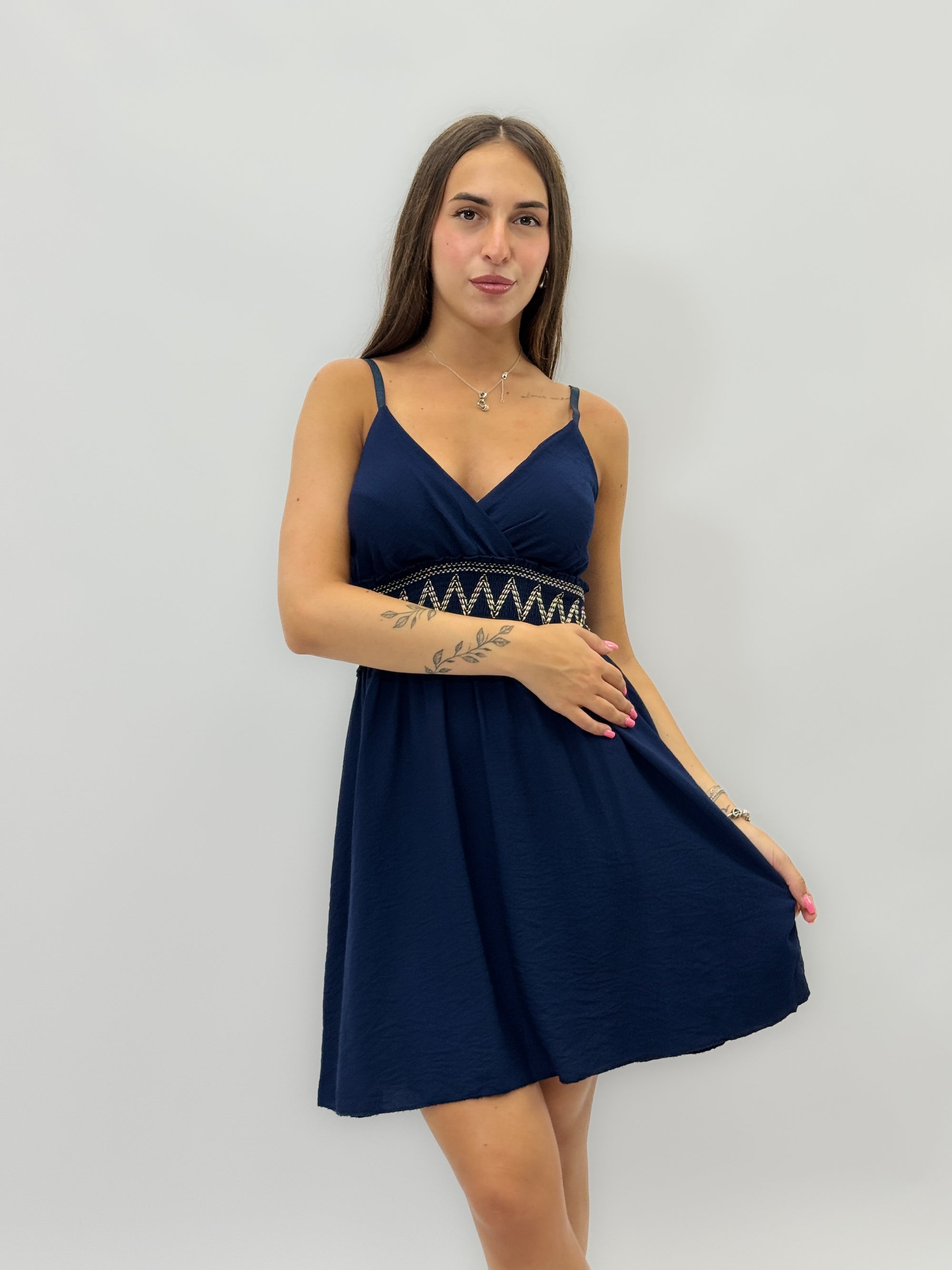 Abito con ricami e scollo a V