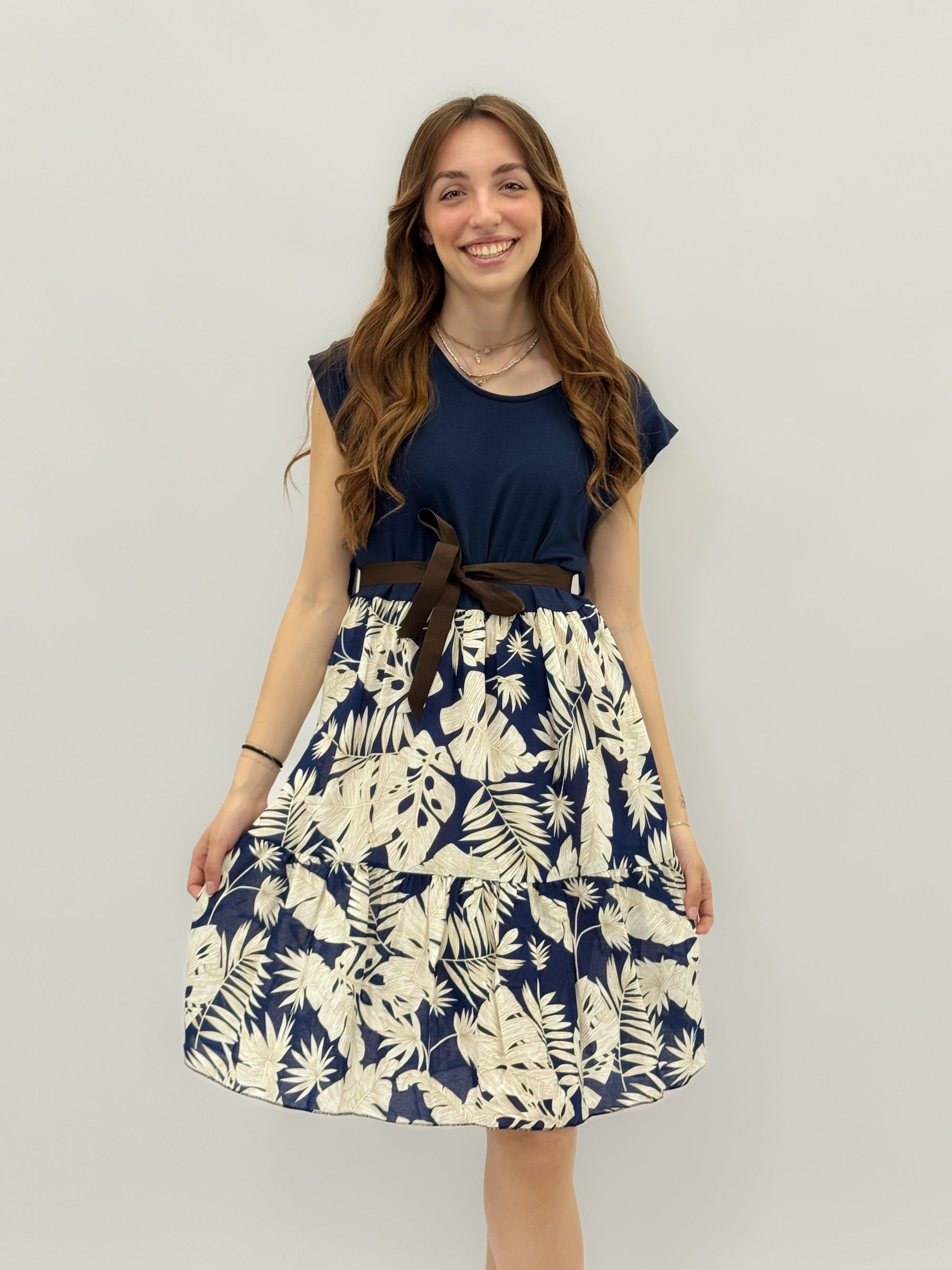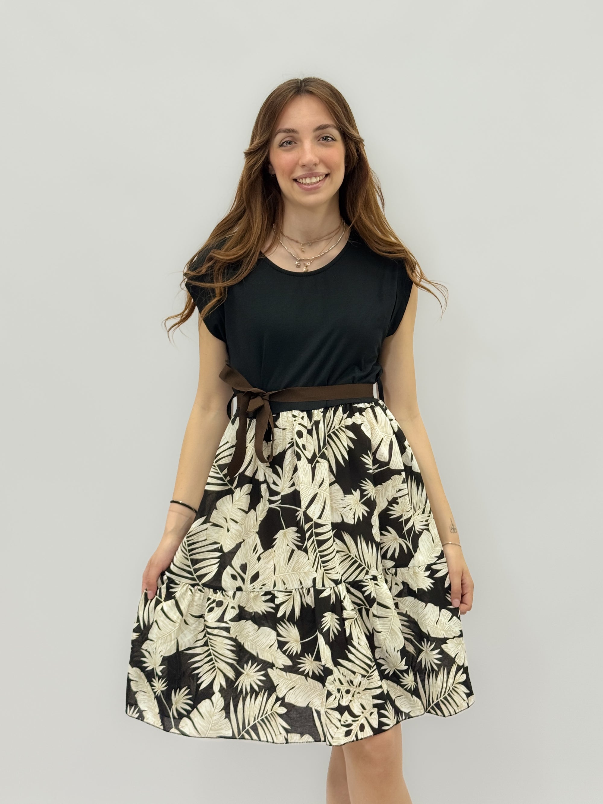 Abito con fantasia e cintura