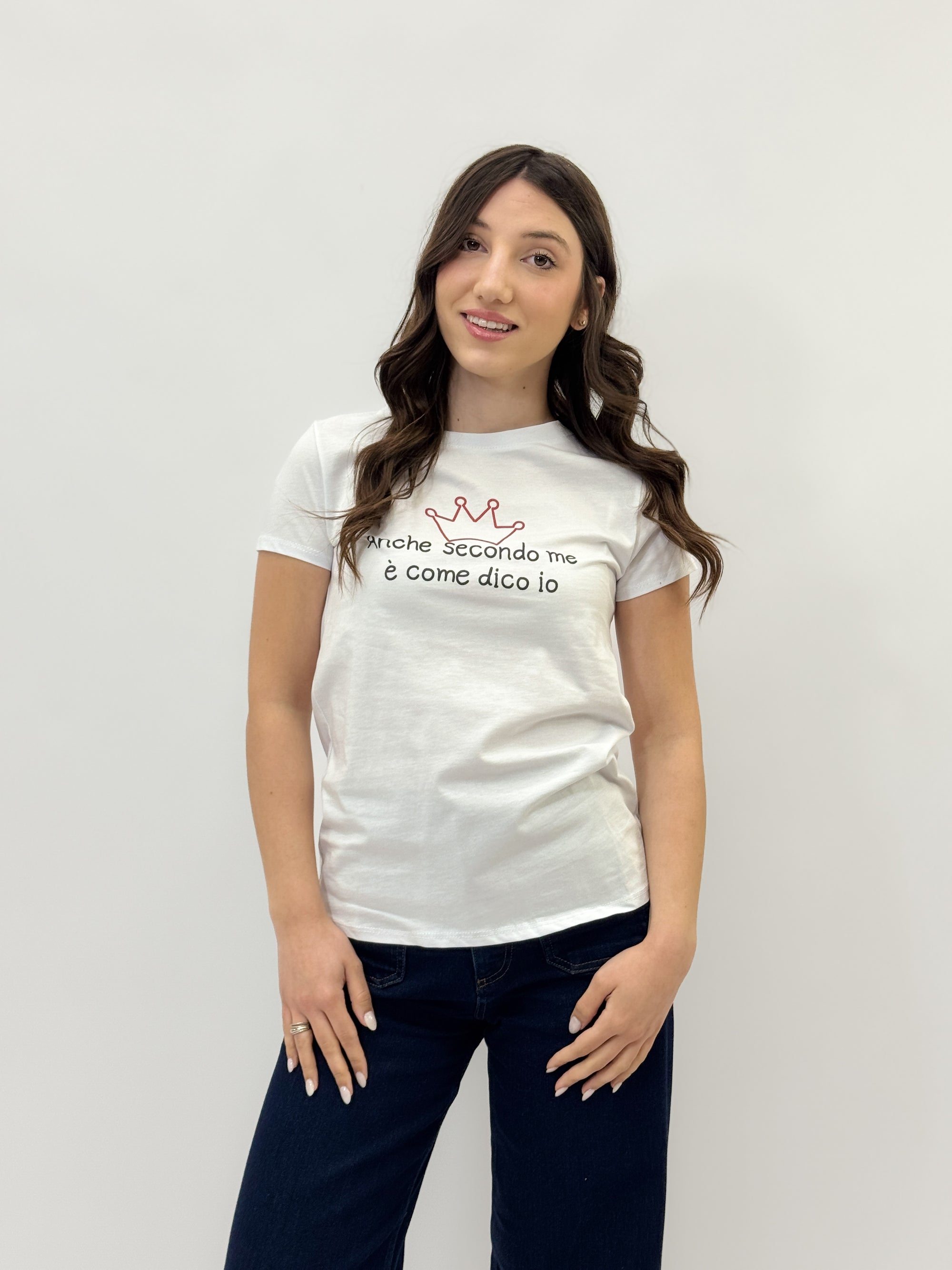 T-shirt in cotone petite con scritta "anche secondo me è come dico io"