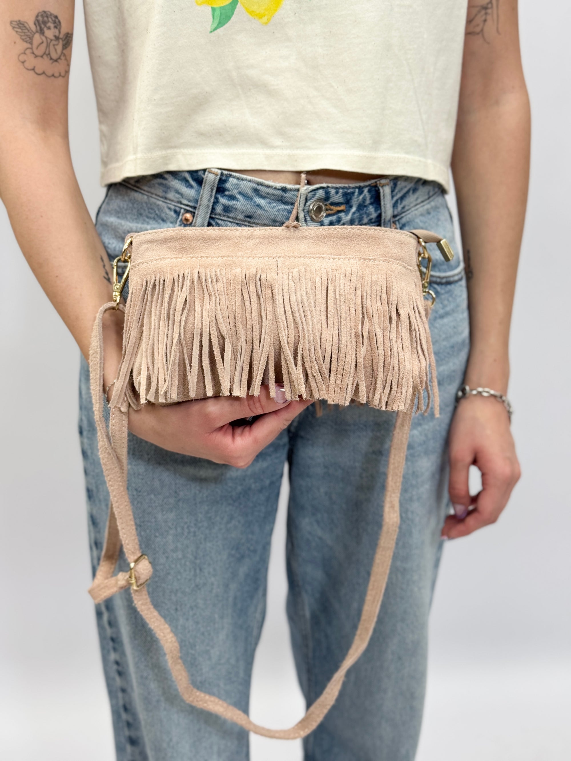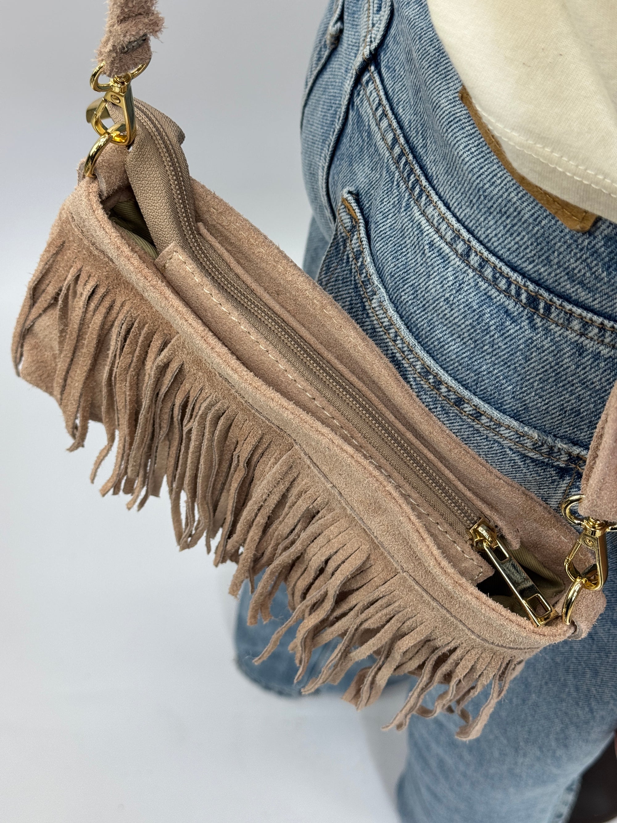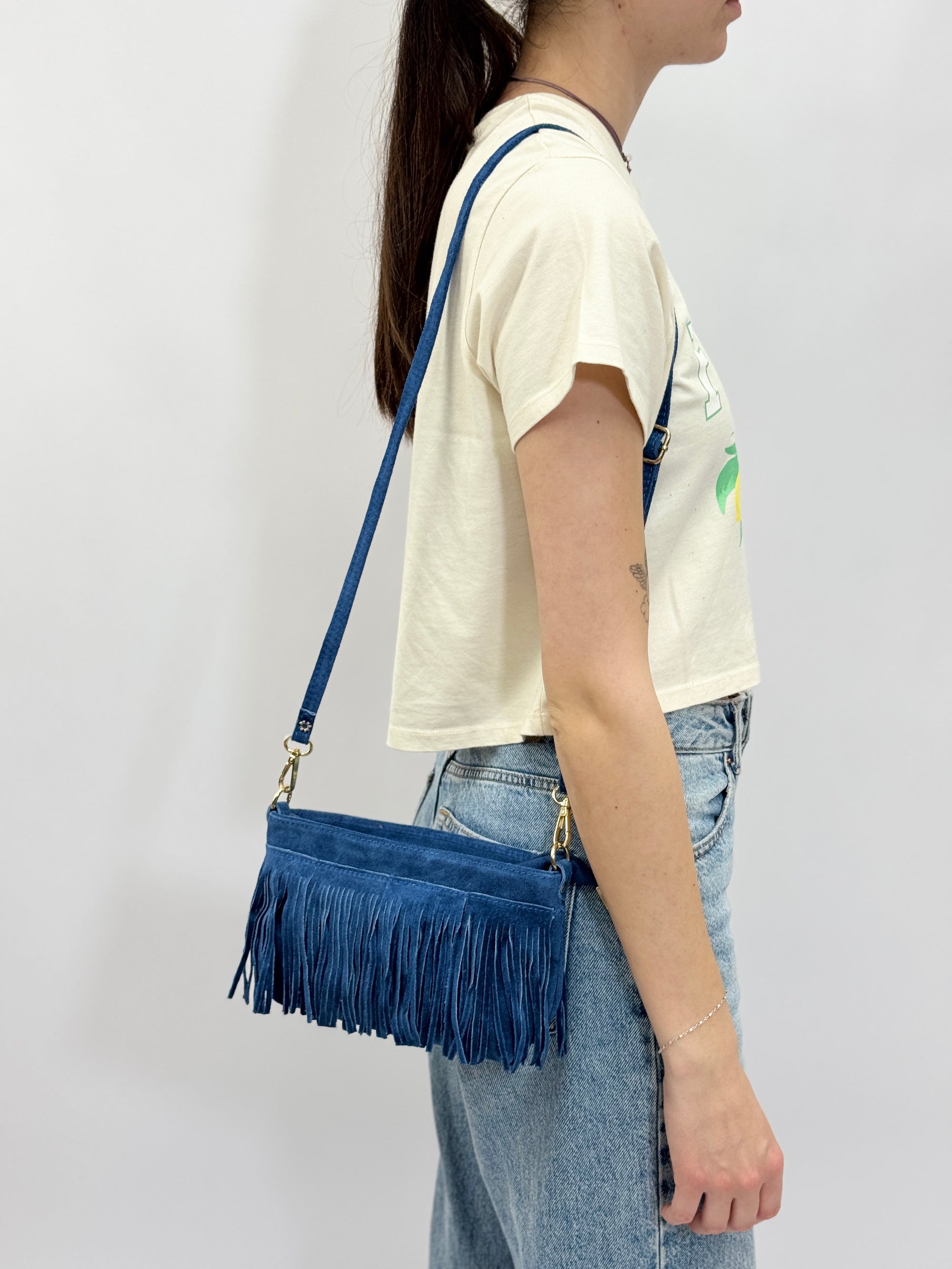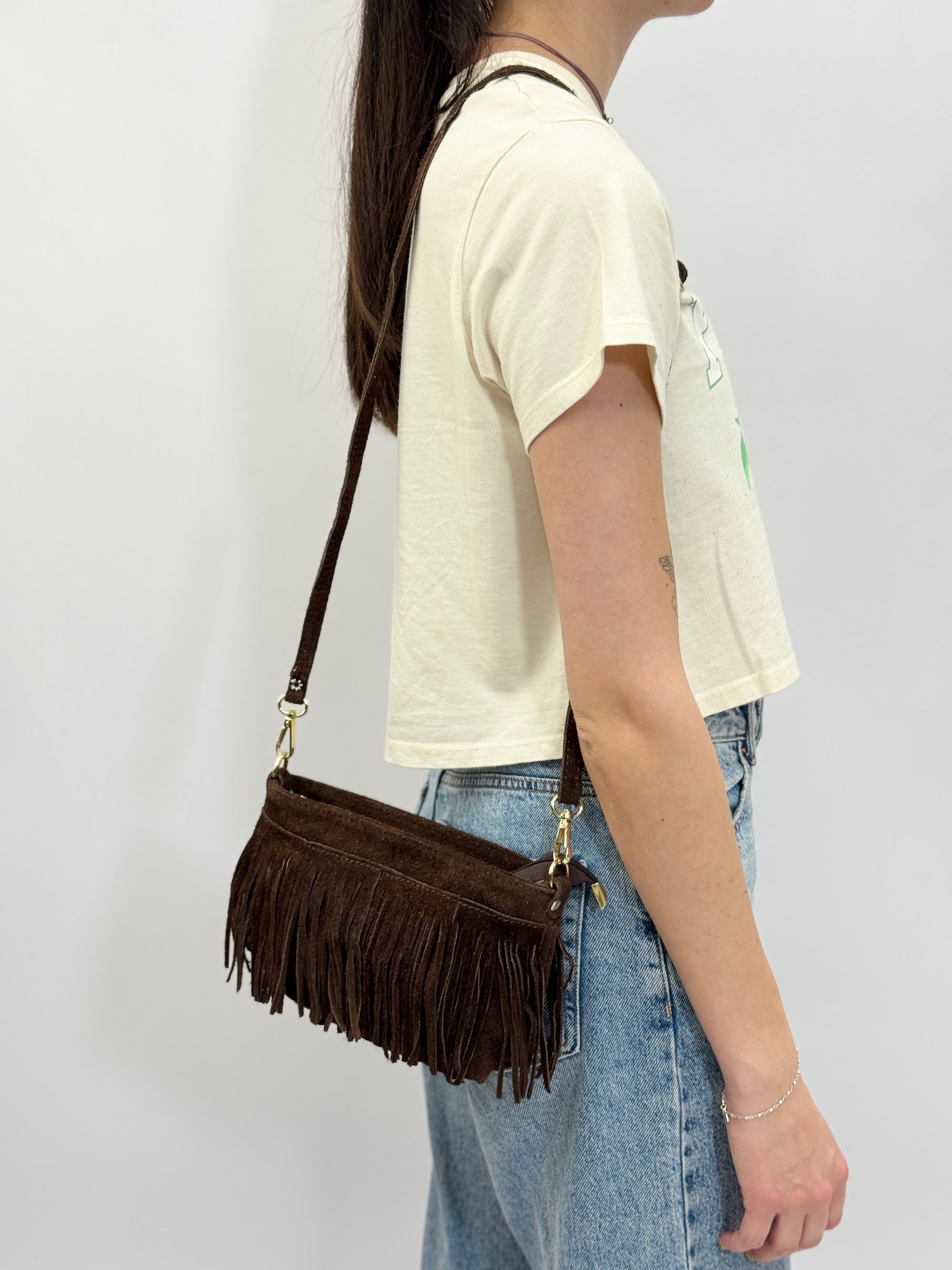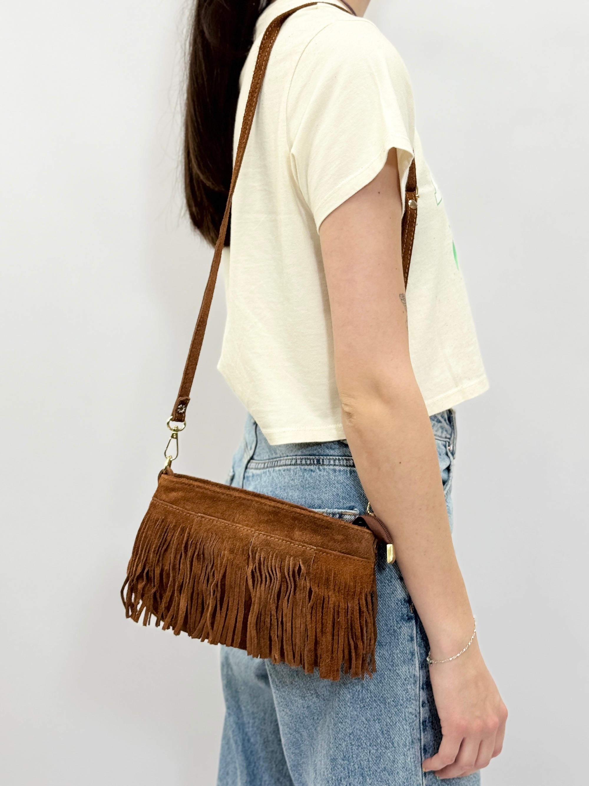Borsa a tracolla in pelle scamosciata con frange – modello Wild West
