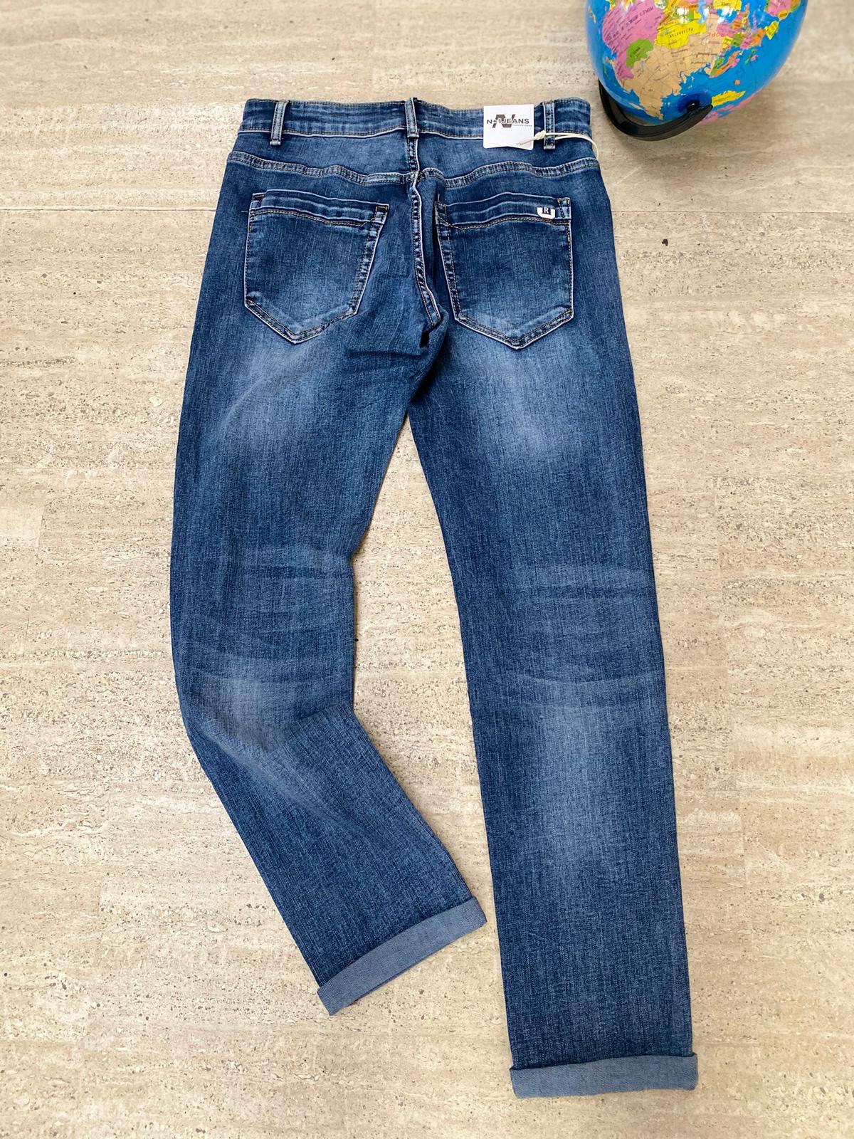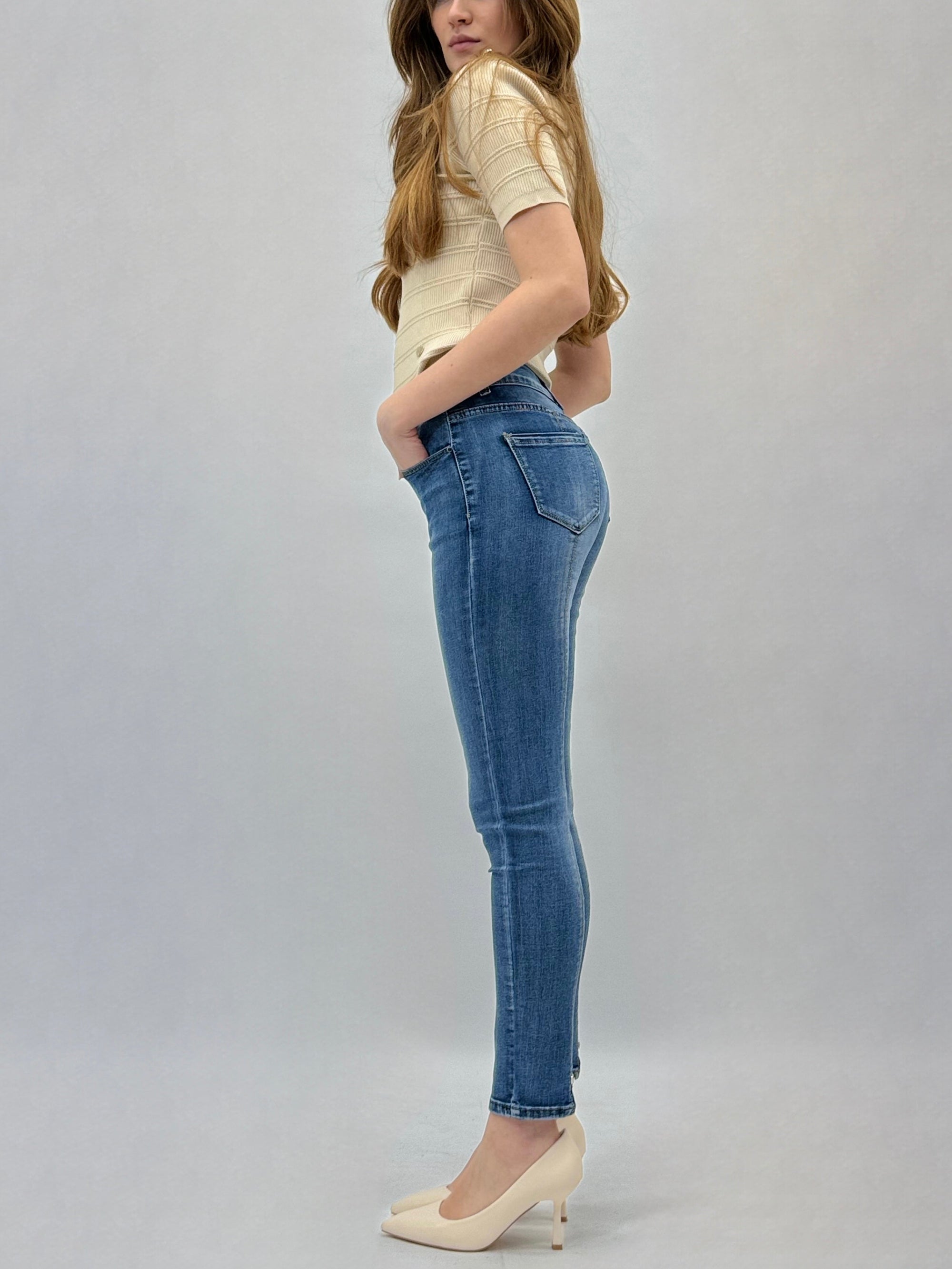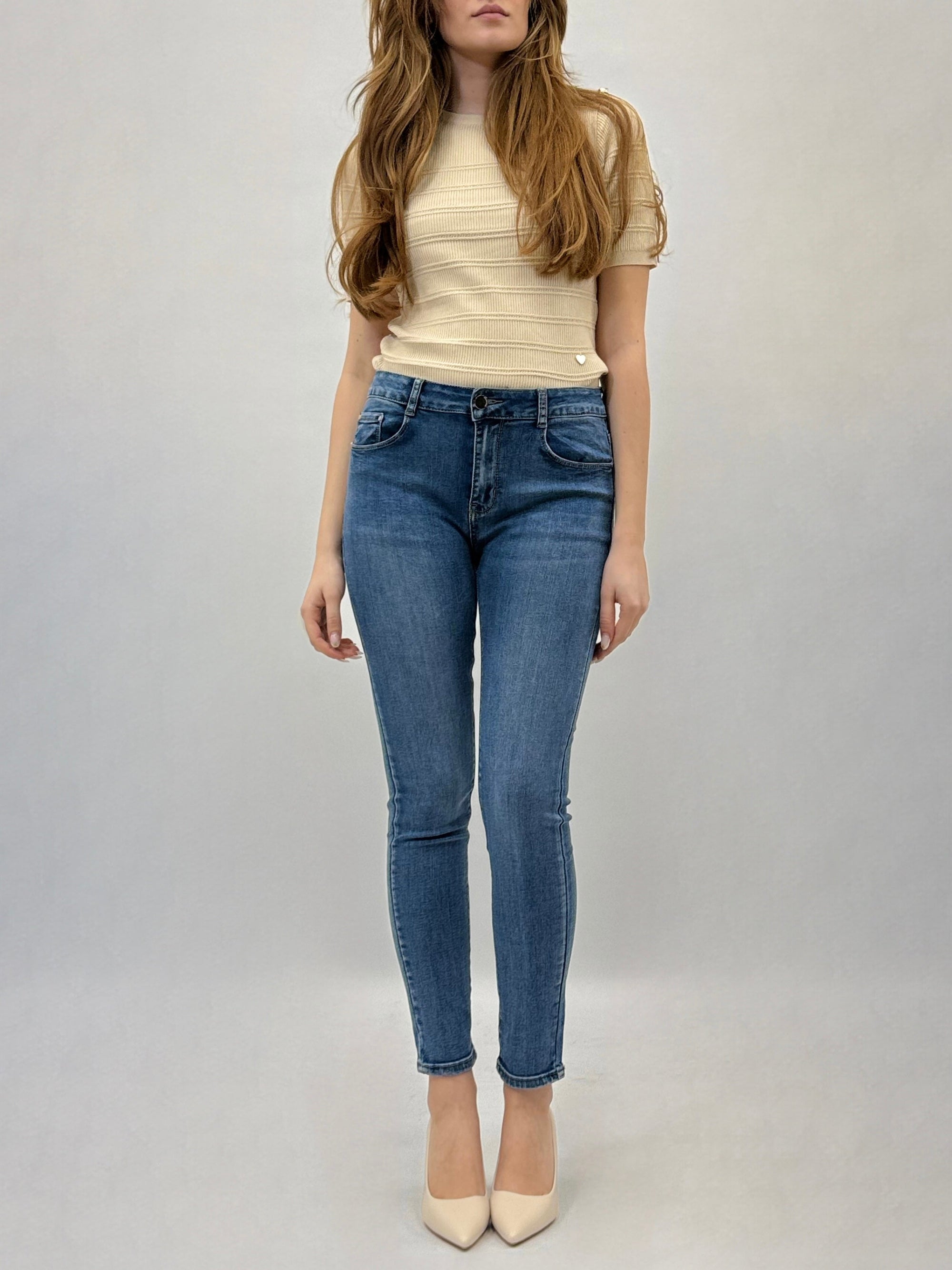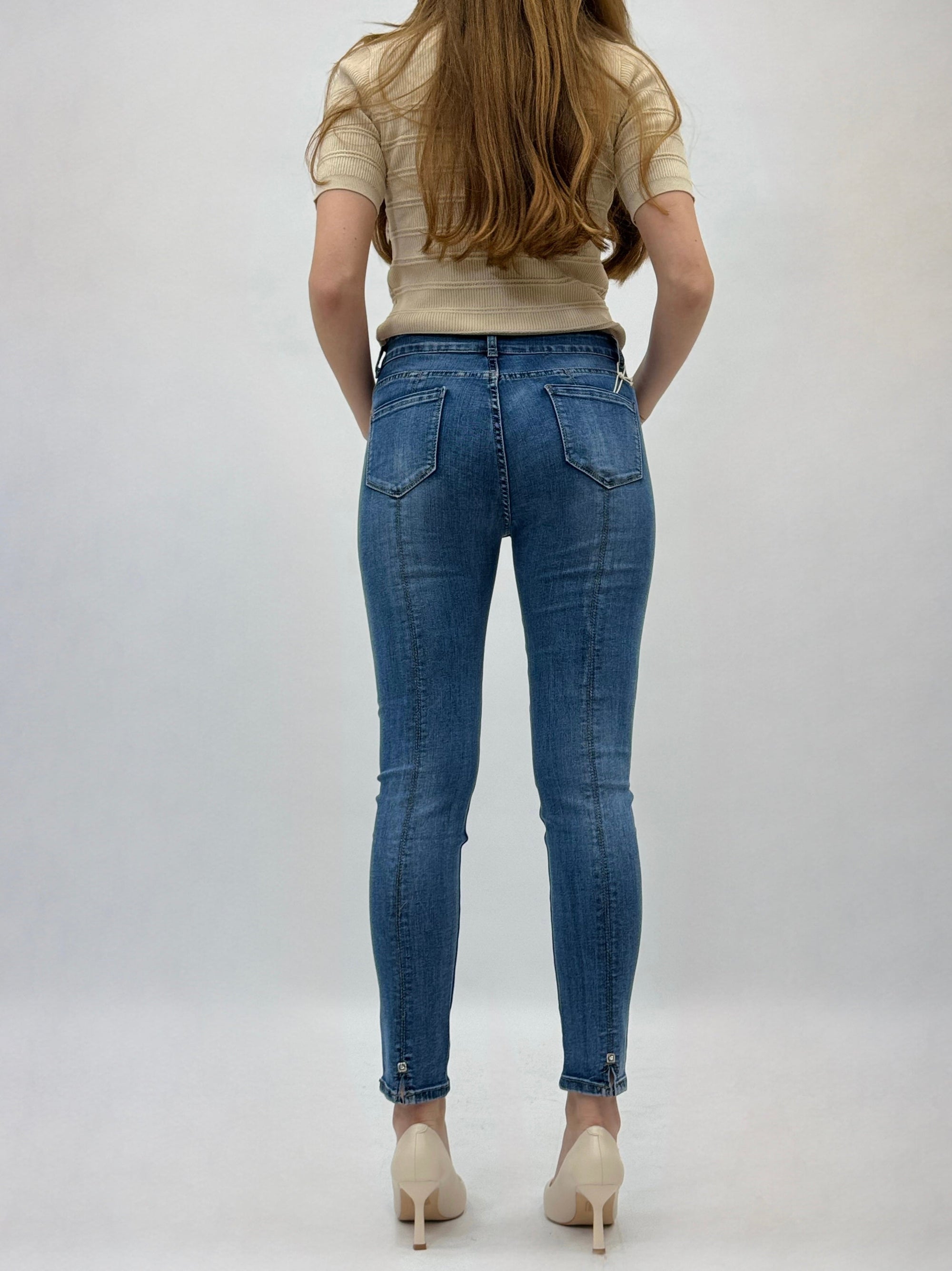 Jeans donna grigi a zampa – Vita media, effetto slavato