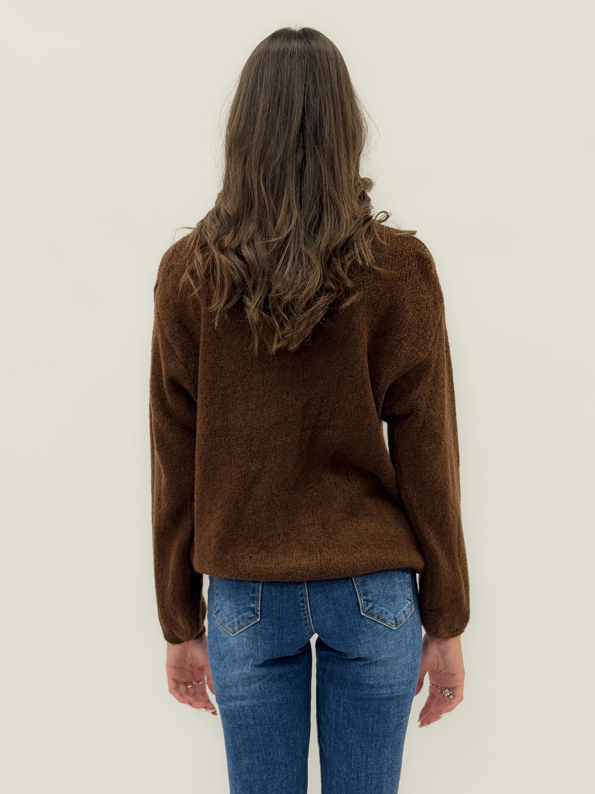 Giacca in ecopelliccia marrone con dettagli gioiello - Cortina
