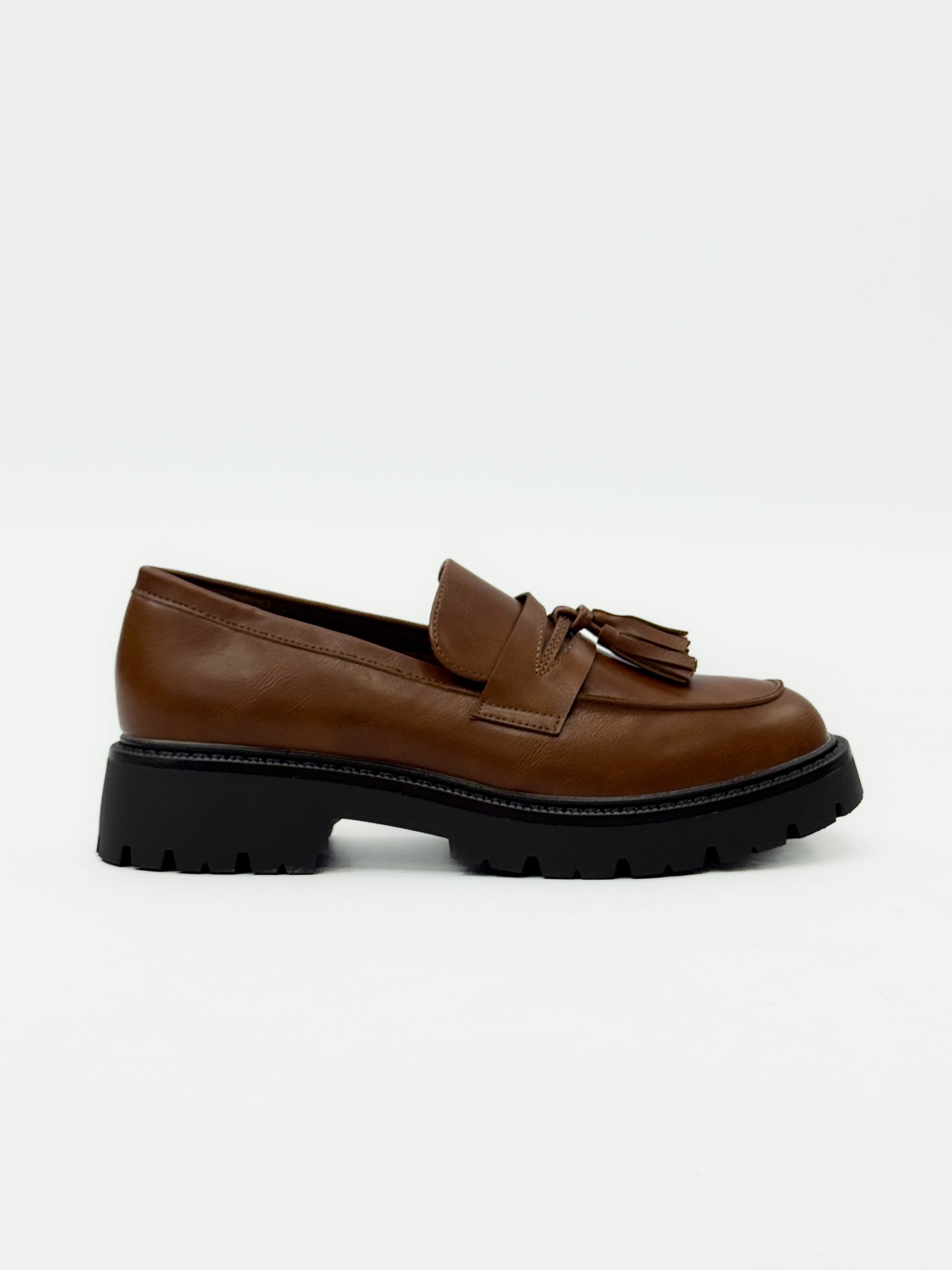 Mocassini marroni con nappine e suola chunky – Eleganza casual con un tocco moderno