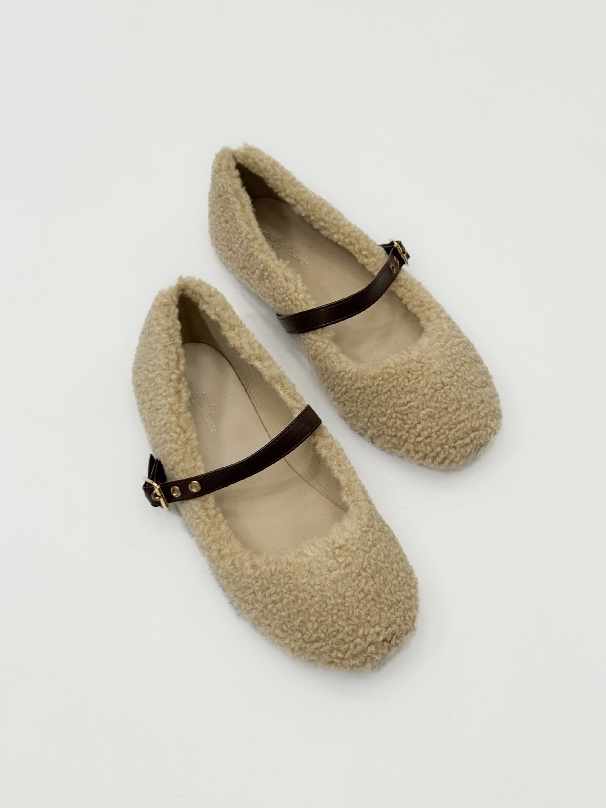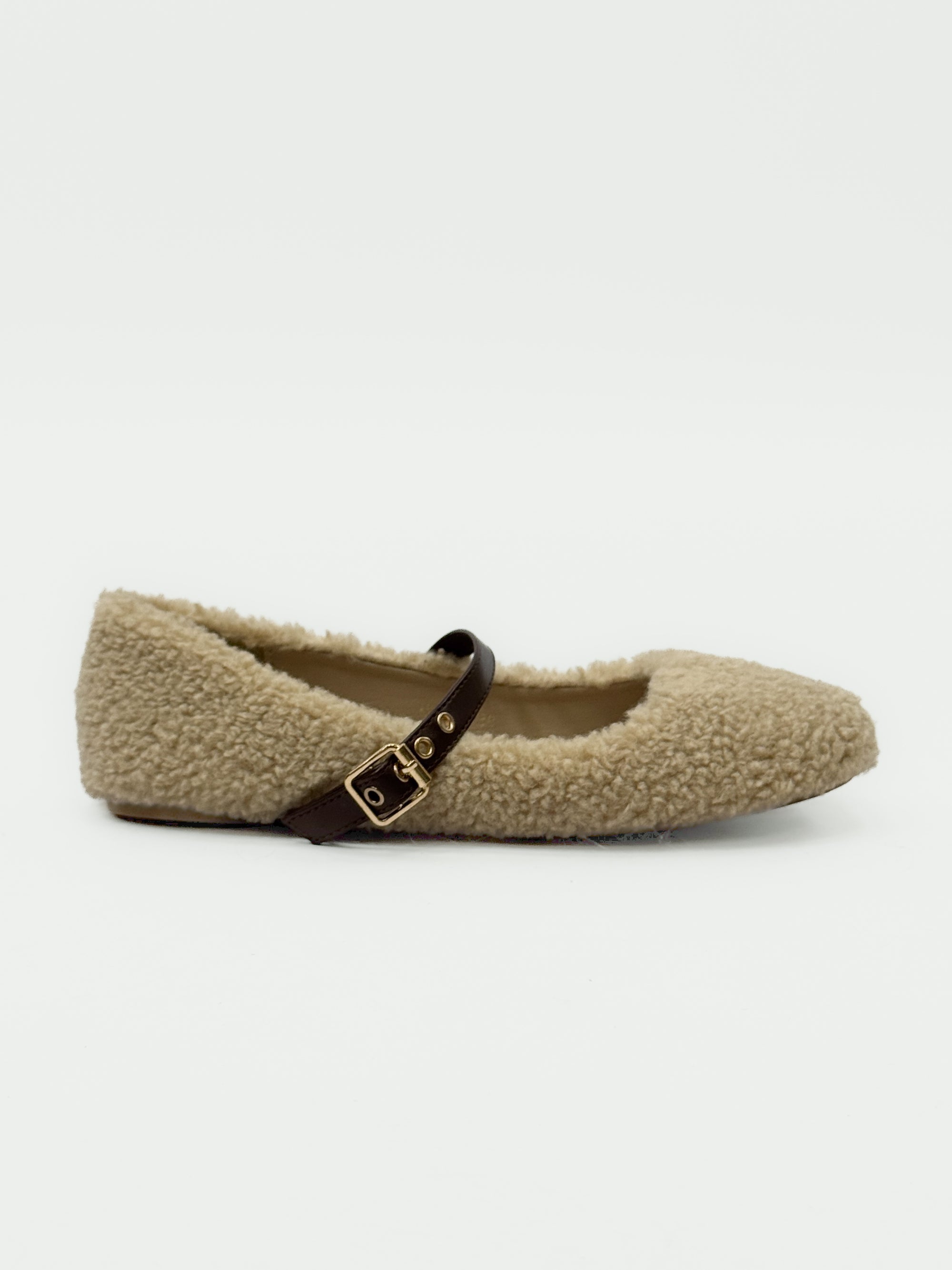 Ballerine peluche con cinturino in ecopelle