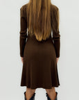 Realizzato in morbida maglia a costine, segue le linee del corpo senza segnare, con una gonna leggermente svasata che dona movimento e slancia la figura.
