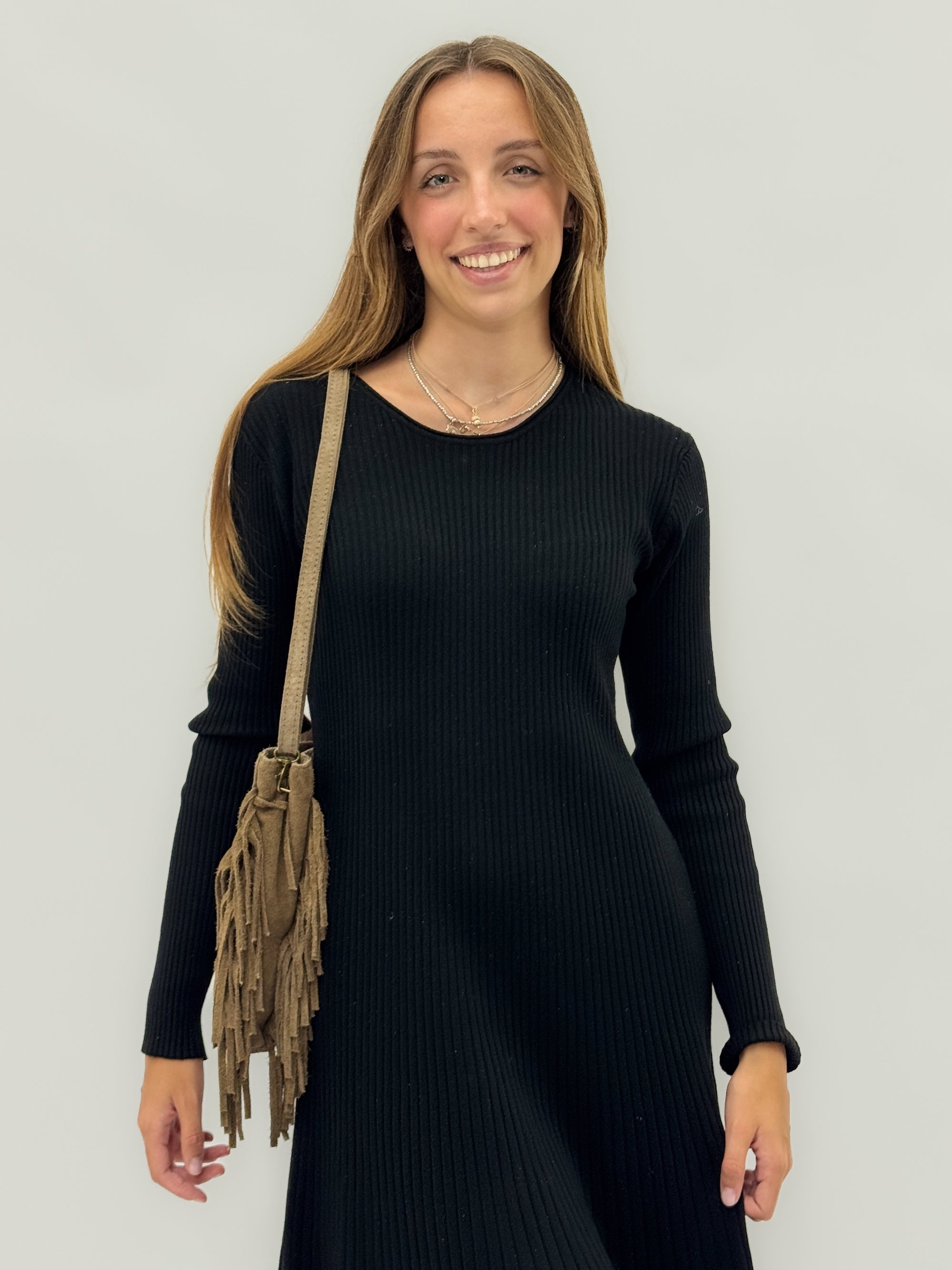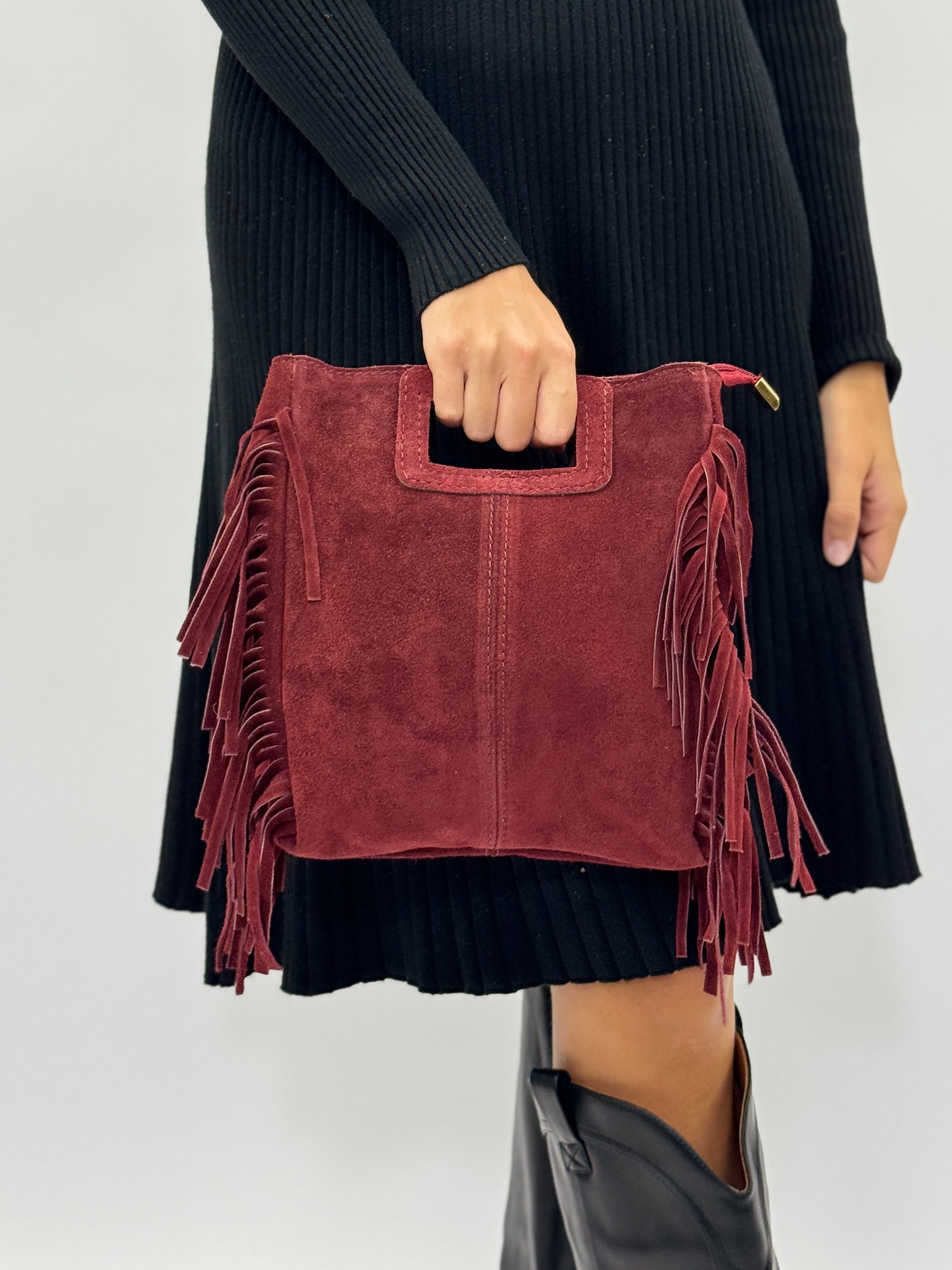 Borsa in vera pelle scamosciata con frange – Made in Italy