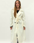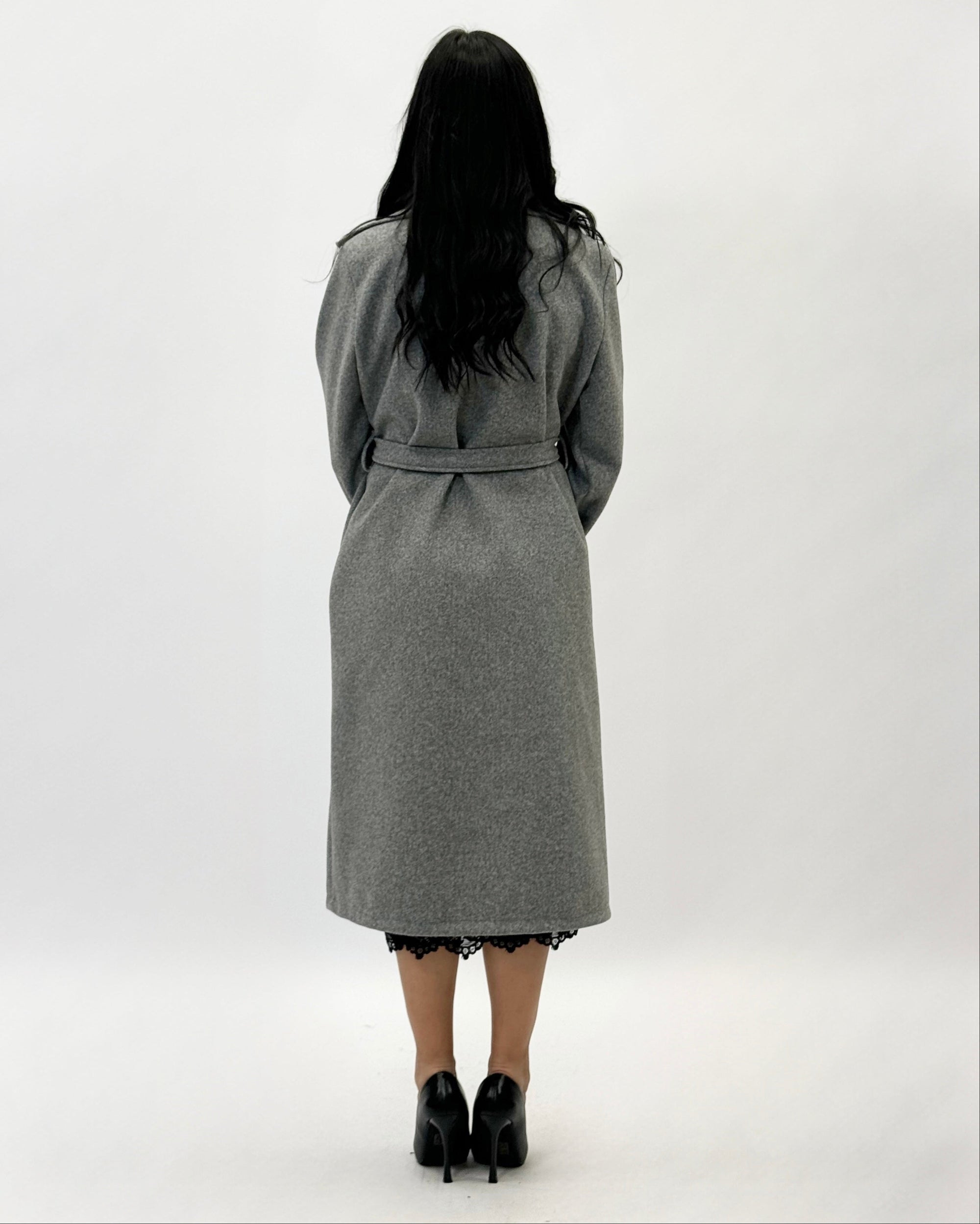 Cappotto lungo doppiopetto con cintura da annodare in vita
