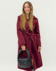 Il design doppiopetto con cintura in vita valorizza la silhouette, mentre il taglio lungo slancia la figura e dona un tocco sofisticato.