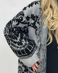 Cappotto jacquard con frange – Stile boho chic e calore avvolgente