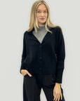 Cardigan in maglia calda e morbida con colletto a revers e bottoni frontali, perfetto come capospalla leggero o come maglia da interni.