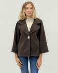 Semplice ma raffinata, questa giacca è il capo ideale per un look chic e versatile. Realizzata in tessuto morbido e strutturato, presenta un colletto ampio a revers, maniche a 3/4 e una chiusura singola con bottone gioiello, dettaglio che dona luminosità e un tocco sofisticato.