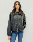 Un capo dal carattere deciso e moderno, perfetto per dare grinta a ogni look. Questa giacca in ecopelle nera presenta una linea morbida con zip frontale e colletto classico, pensata per essere versatile e comoda. Le maniche ampie e l’orlo leggermente arricciato la rendono ideale sia per outfit casual che per abbinamenti più ricercati.
