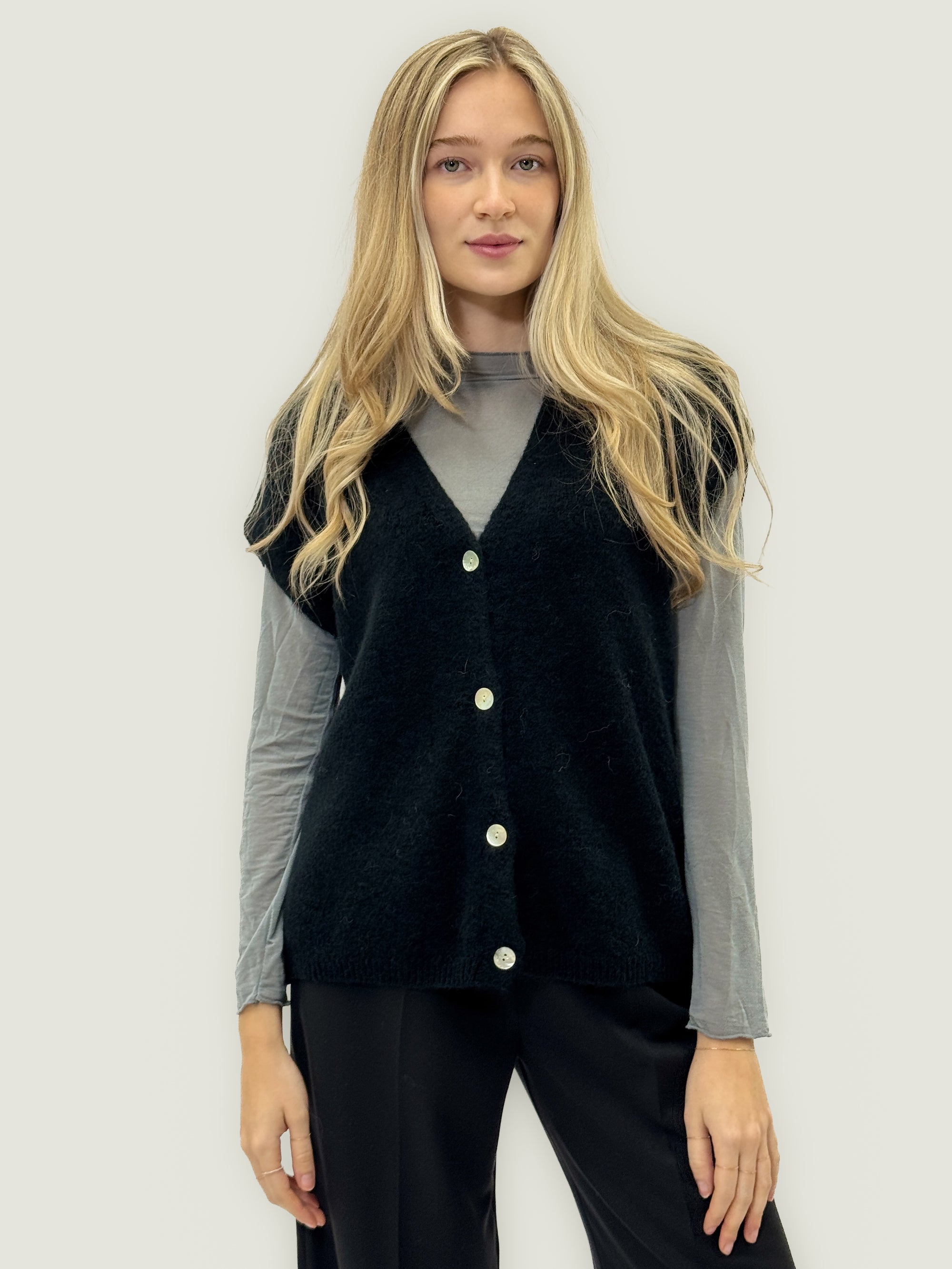 Gilet morbido misto alpaca con bottoni – Effetto peloso