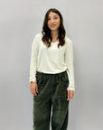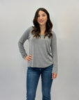 Questa maglia con scollo a V è realizzata in misto lana e cotone, un tessuto naturale e traspirante che garantisce morbidezza e calore senza appesantire.